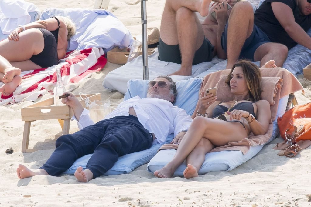 Mar Flores и Elias Sacal в Club 55 во время отпуска в Сен-Тропе, 21.07.2019. Мария дель Мар Флорес Кабальеро — 50-летняя испанская модель и актриса.