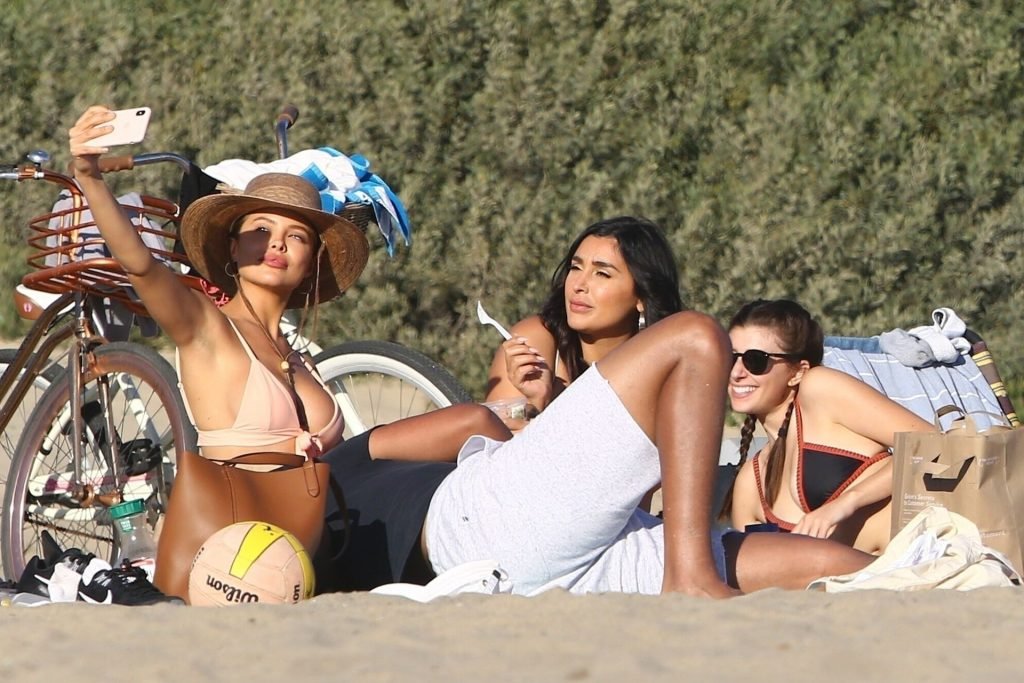 Булочки на солнце! Mara Teigen, Alessandra Ambrosio и друзья становятся игривыми, наслаждаясь теплой калифорнийской погодой на пляже в Лос-Анджелесе, 18.03.2019.