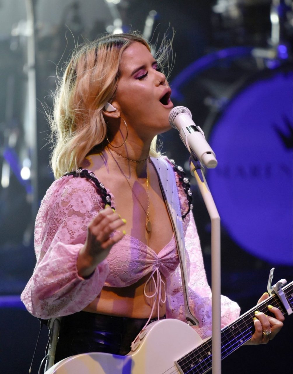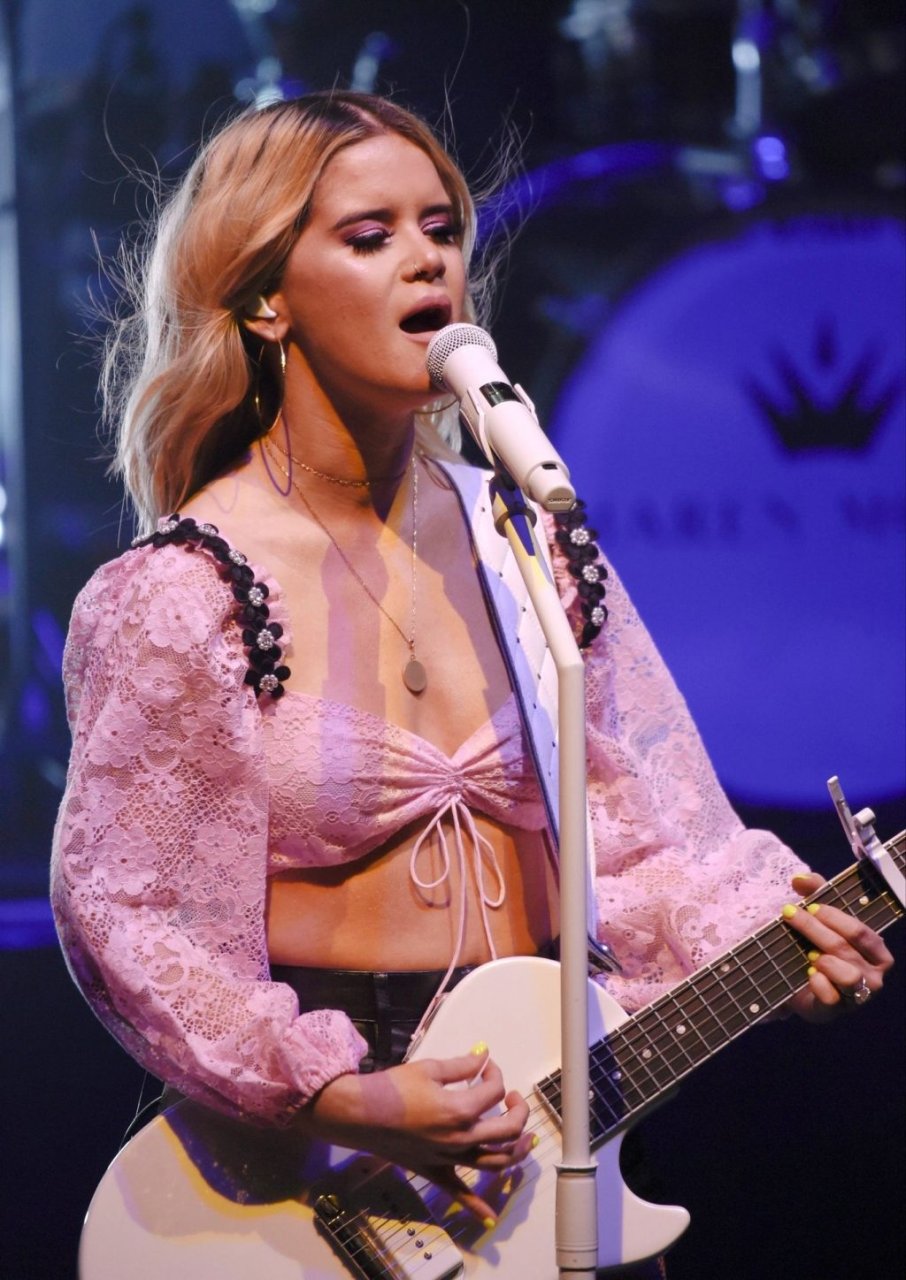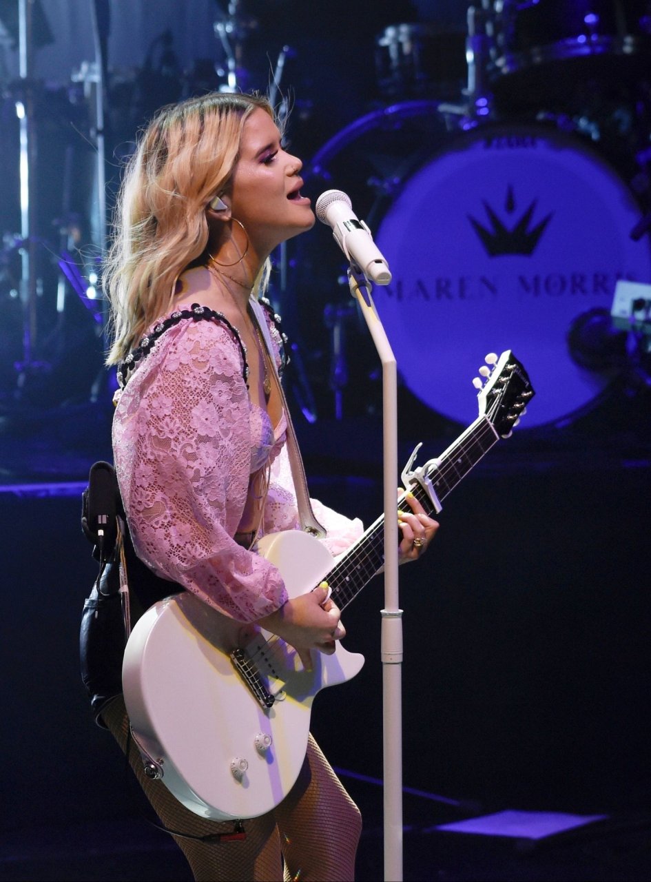 Maren Morris на сцене во время концерта вживую в The Albert Hall в Манчестере, 27.05.2019. Maren Larae Morris — 29-летняя американская певица/автор песен в жанре кантри и музыкальный продюсер. Она выпустила четыре студийных альбома: “Walk On”, “Maren”, “Live Wire”, “Maren Morris EP” и “Hero”.