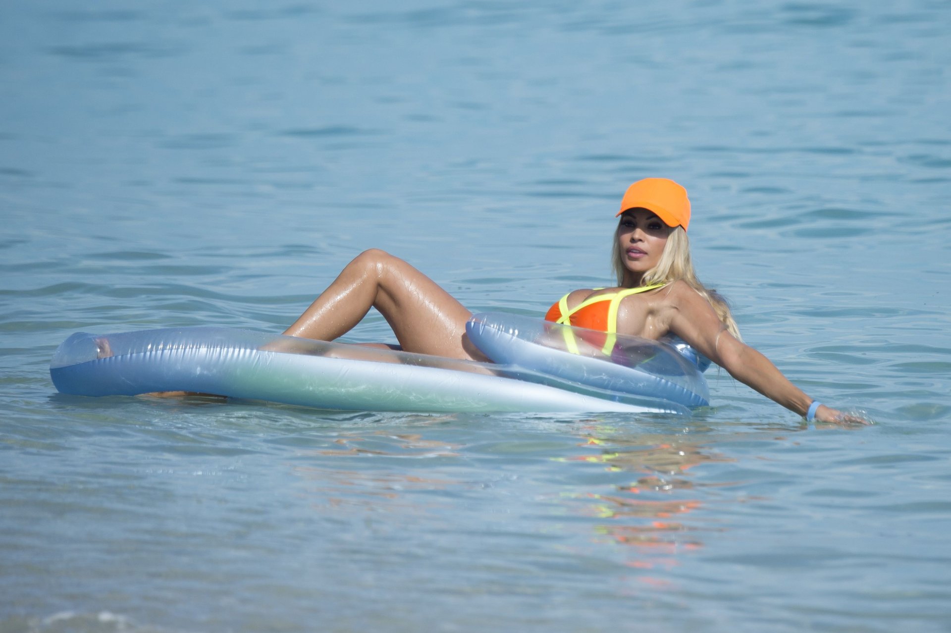 Maria Hering носит неоновое бикини на пляже Майами, 25.01.2017. Маленькая ареола виднеется! Мария Херинг (Йота) — немецкая модель. Возраст: 28.