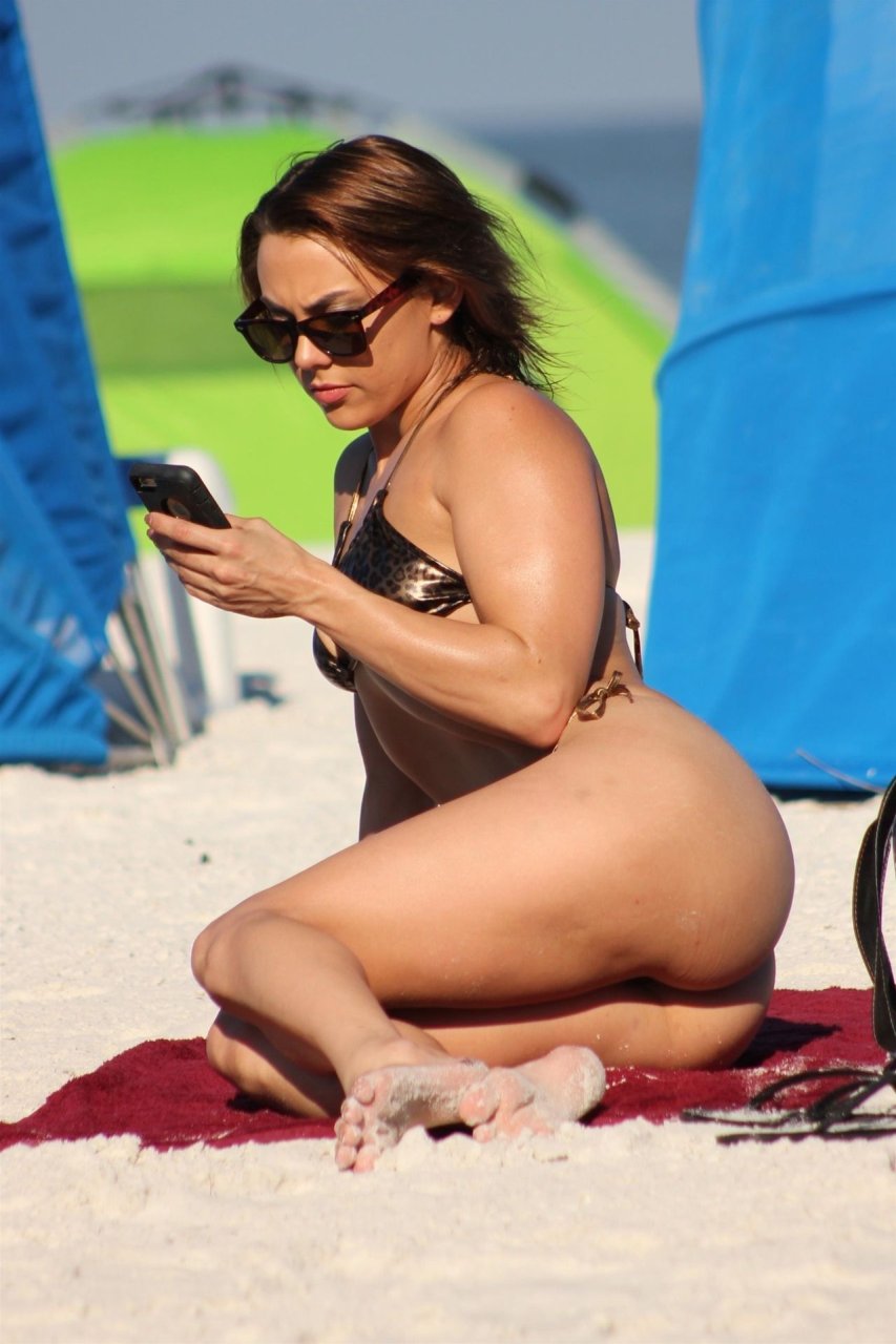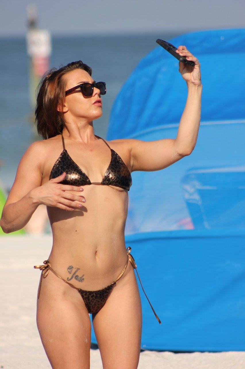 Актриса фильмов для взрослых и модель Мария Джейд (25) замечена на пляже в Майами, отдыхает и делает селфи для своих поклонников в едва заметном бикини, 20.11.2018.
