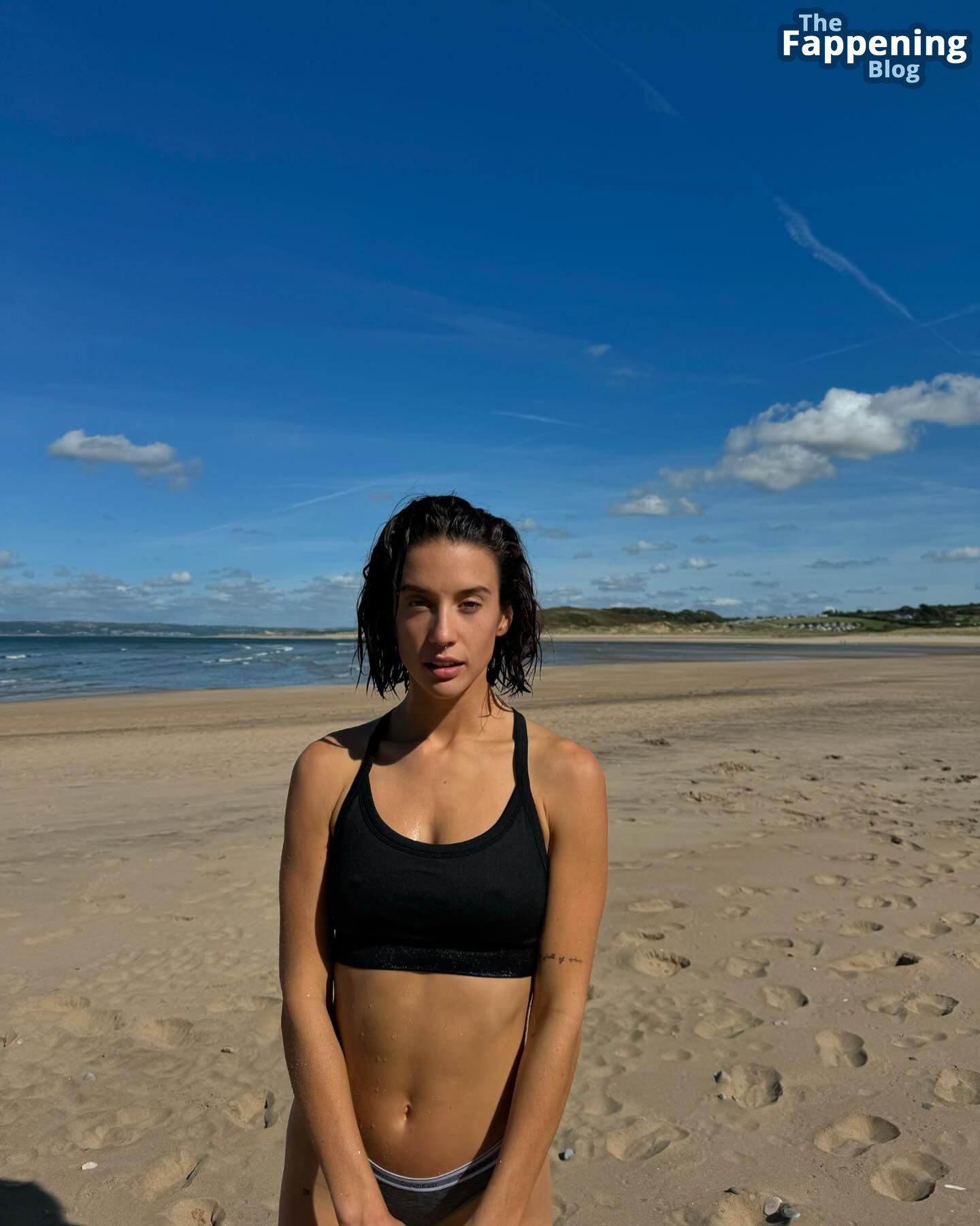 Актриса Мария Педраса демонстрирует свою стройную фигуру и торчащие соски на пляже в Уэльсе.