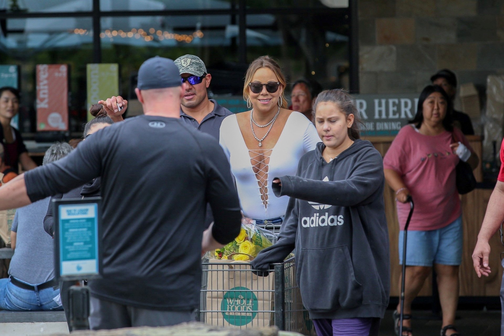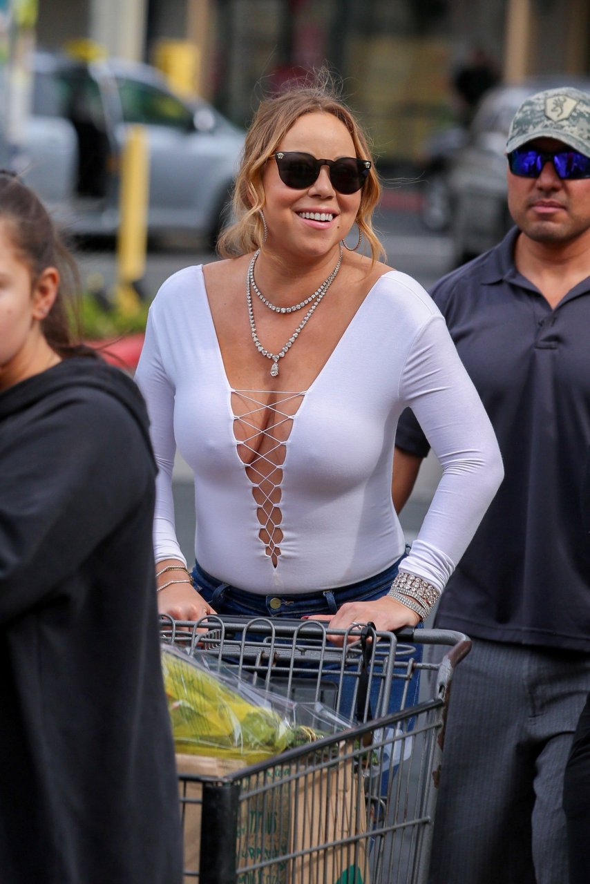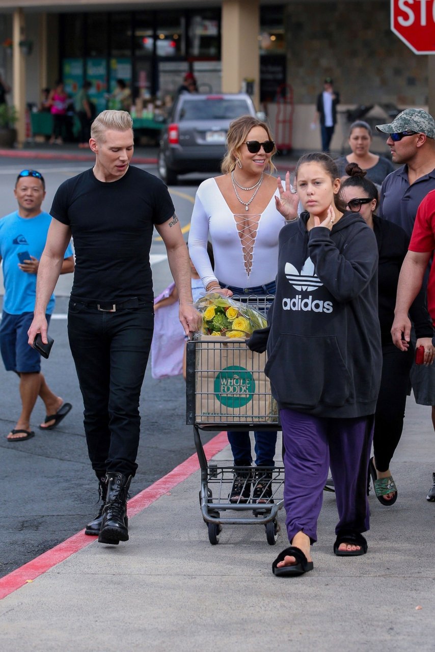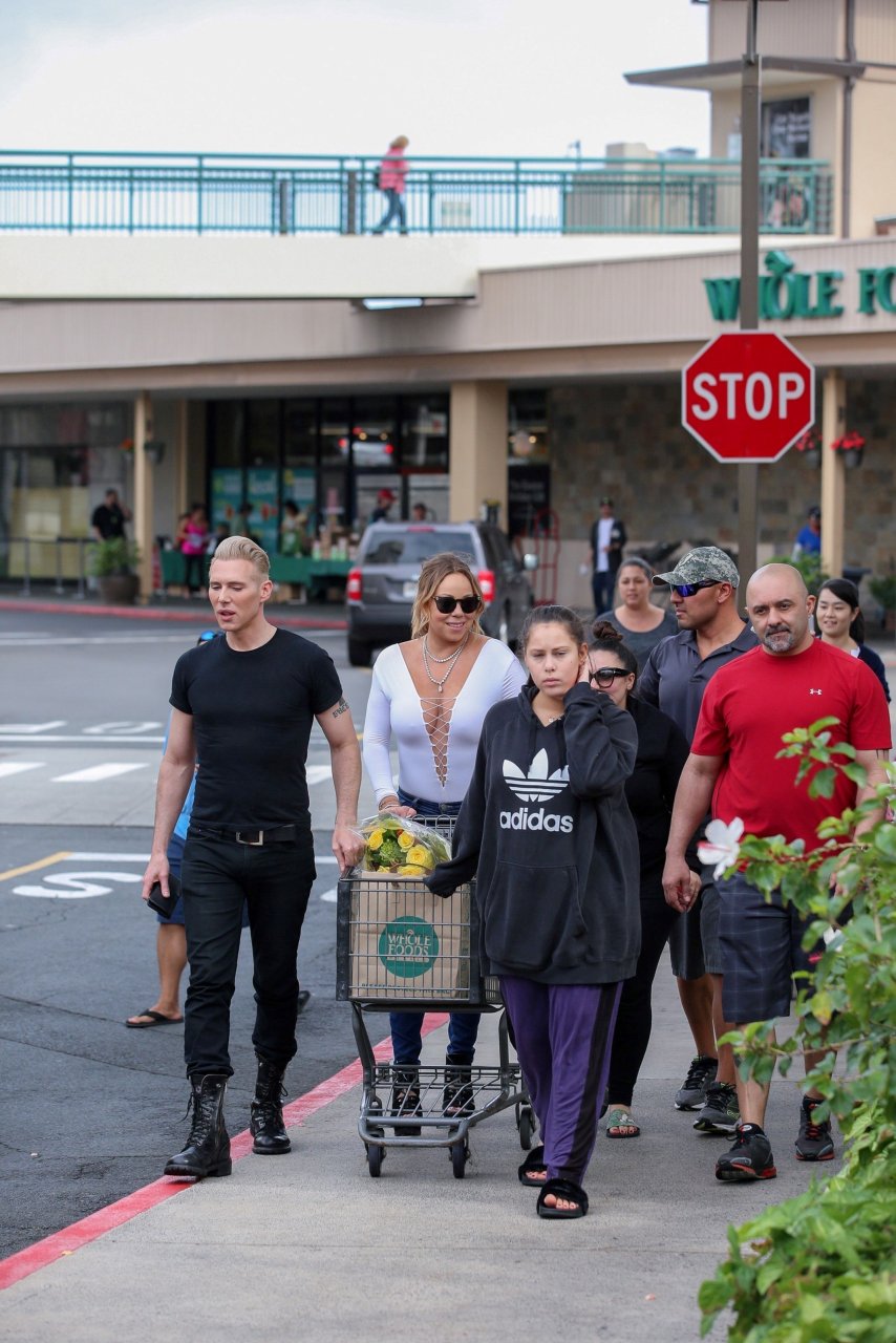 Без бюстгальтера Mariah Carey идет за покупками в День благодарения на Гавайях, 24.11.2016. Mariah Carey — певица, автор песен, музыкальный продюсер и иногда актриса из США. Возраст: 47 (27 марта 1969).