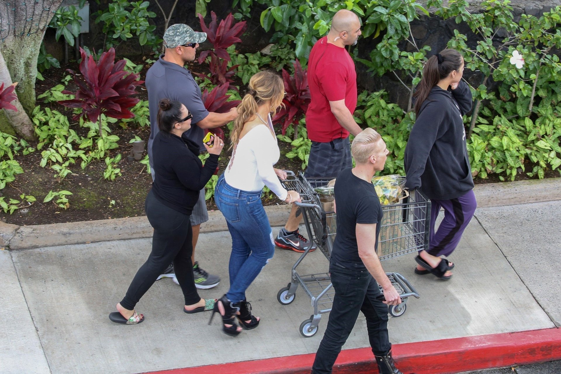 Тело всё ещё неплохое, лицо выглядит как будто слишком много ботокса. Но люди, с которыми она идёт, это её семья? Охрана? Что за парень, похожий на неонациста-арийца?