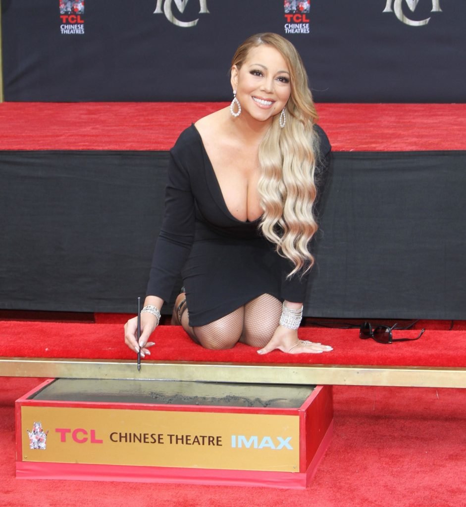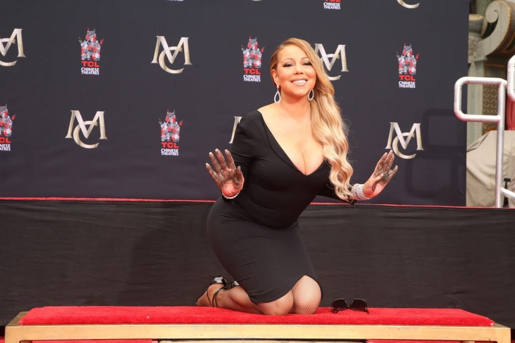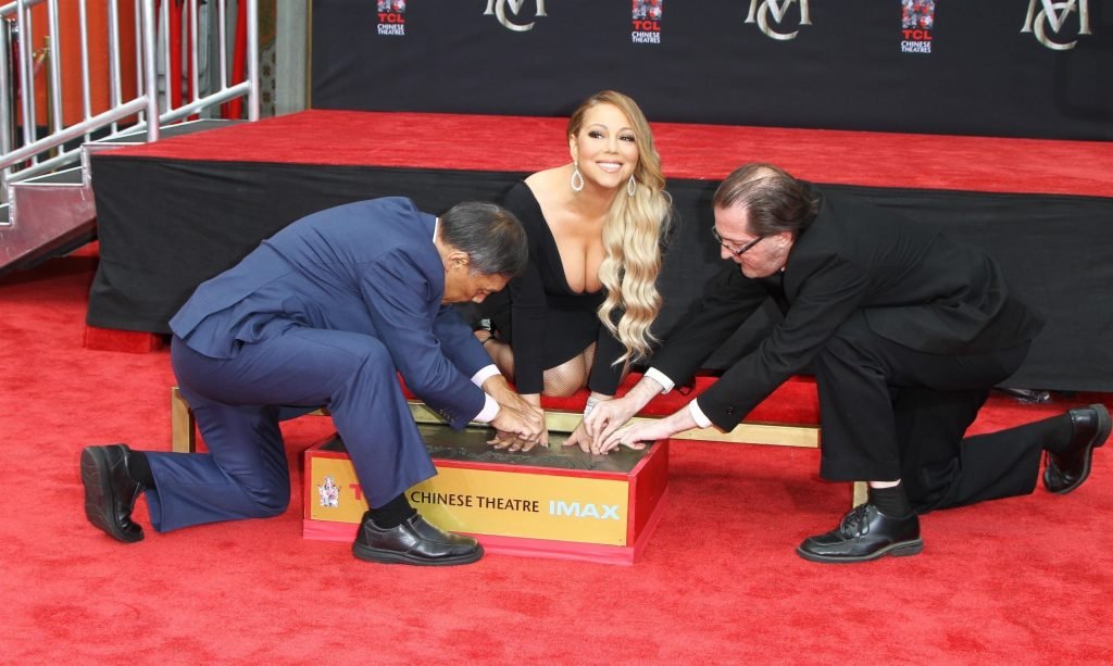 Mariah Carey на церемонии оставления отпечатков рук и ног, которая проходила в TCL Chinese Theatre в Лос-Анджелесе, 01.11.2017. Mariah Carey — американская актриса (сериал Empire), певица и автор песен. Возраст — 47 лет.