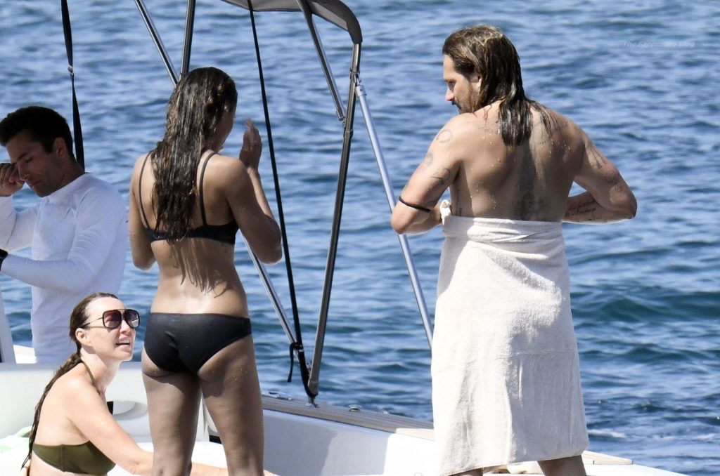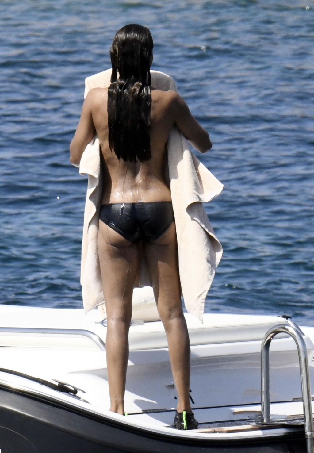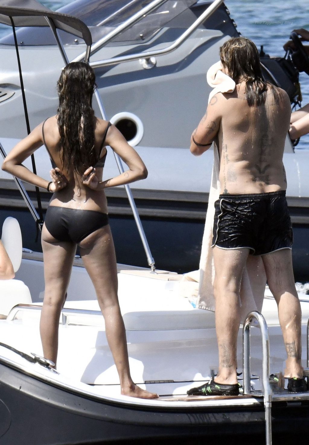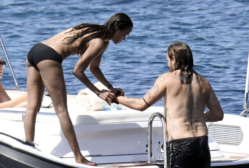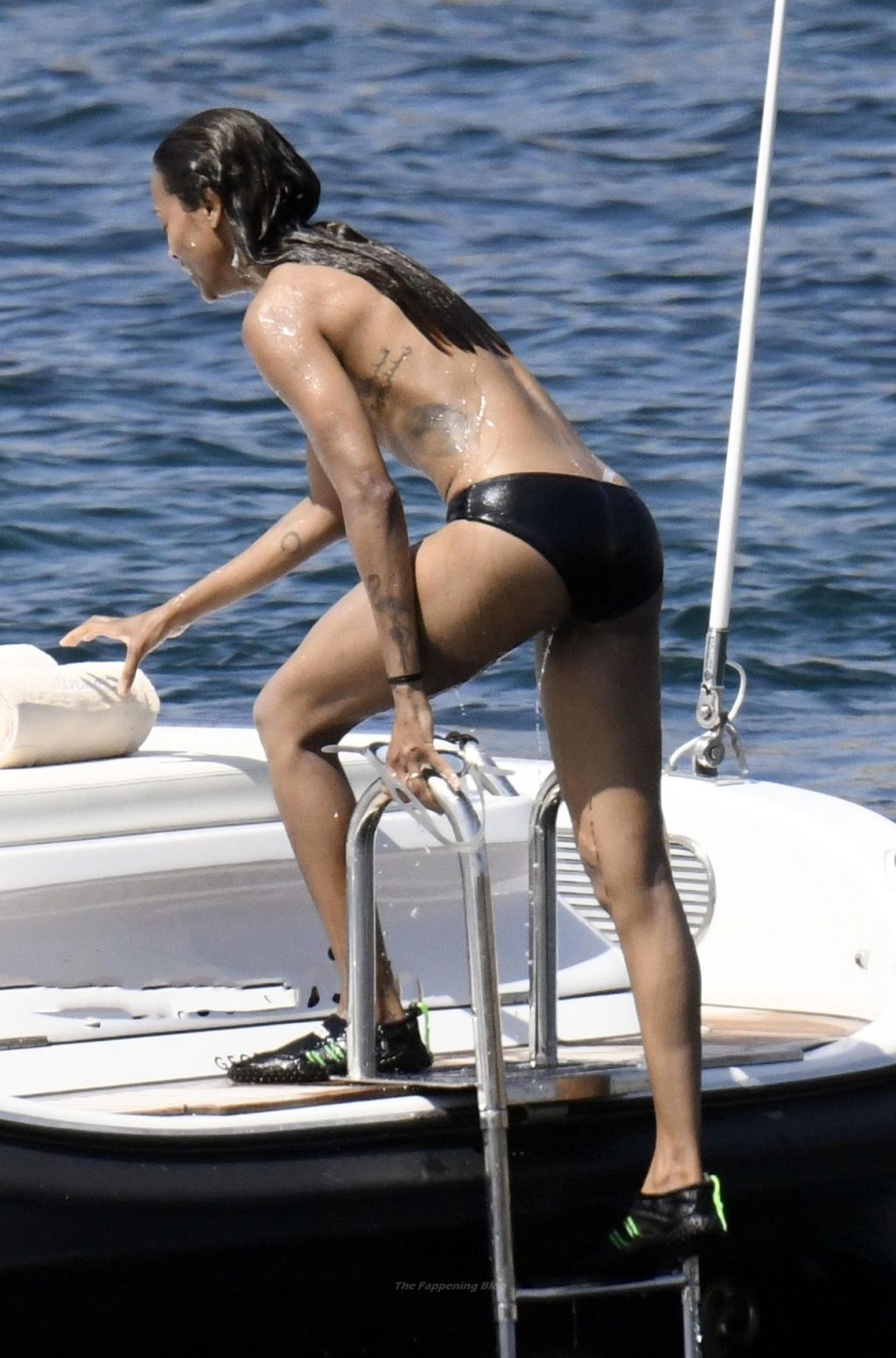 Сексуальная американская актриса Зои Салдана загорает топлесс под жарким итальянским солнцем во время своего солнечного отпуска на Сардинии, 15.08.2021.