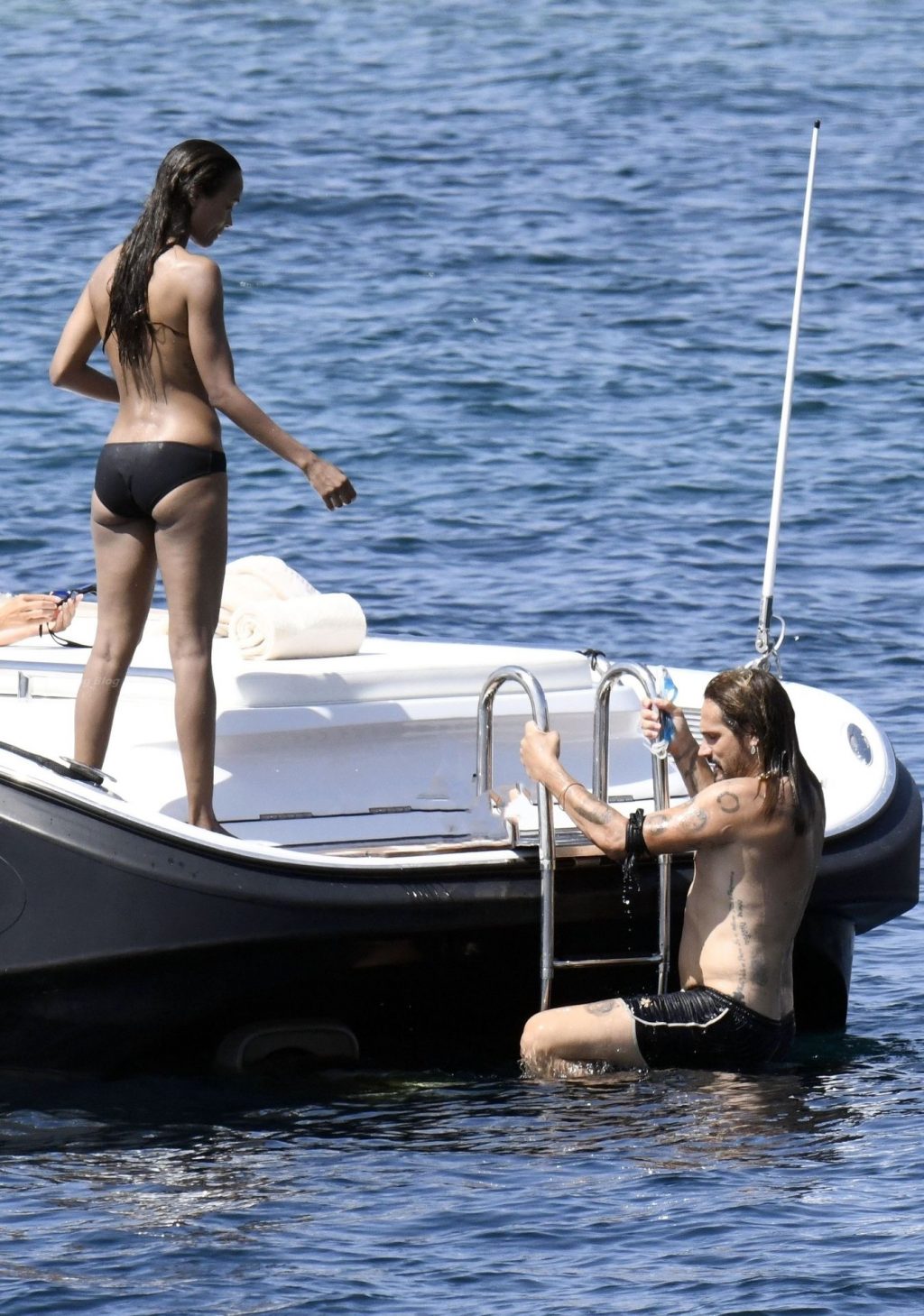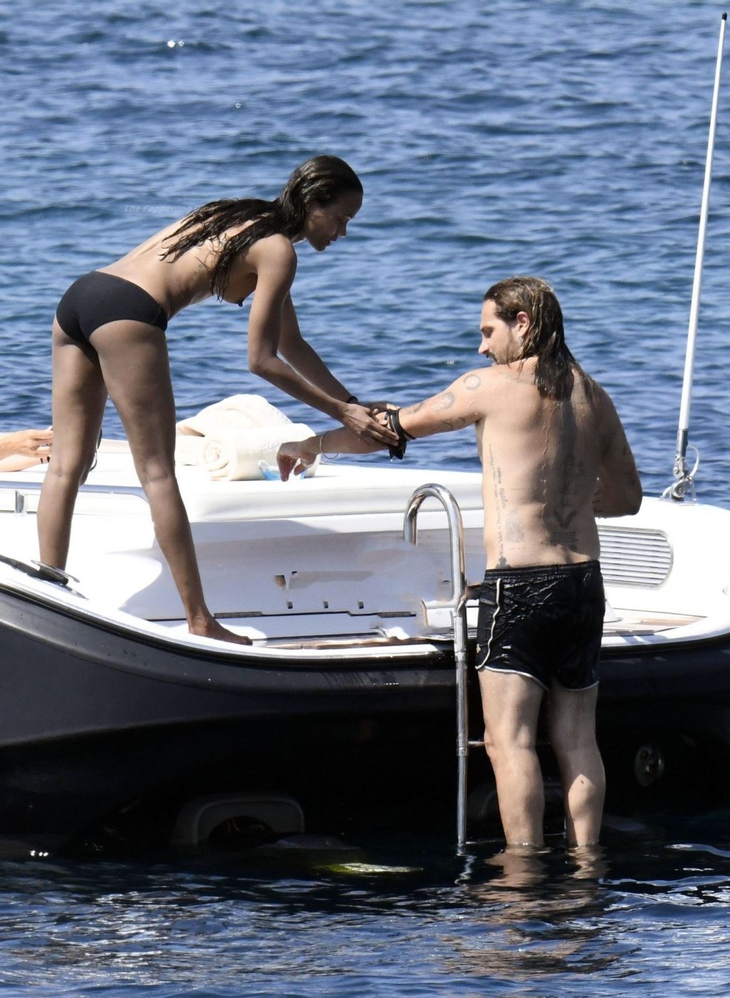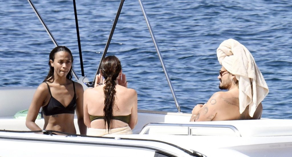 Зои вместе с мужем Марко Перего Салдана ещё больше подняли температуру, загорая на своей лодке.