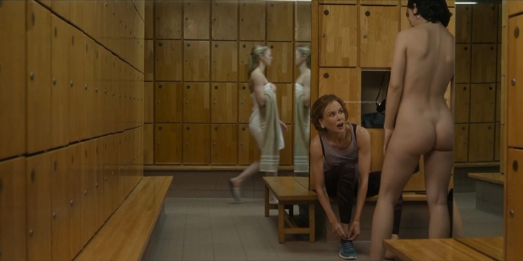 Матильда полностью голая входит в кадр в раздевалке и стоит перед Николь Кидман, которая сидит на скамейке.Matilda shows breasts and bush, as well as visible labia, before turning and giving a great view of her butt as well before finally sitting down beside Nicole and talking to her.