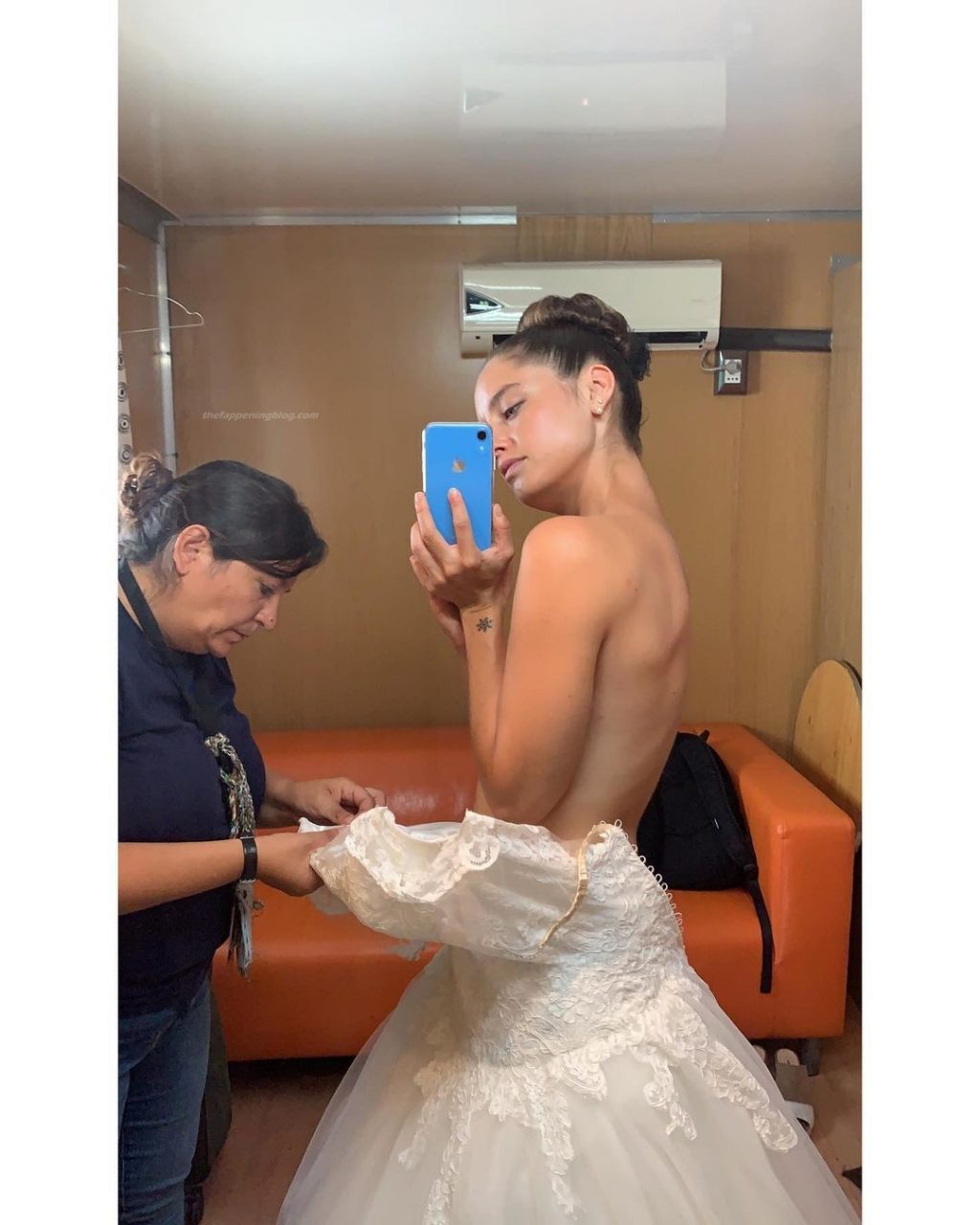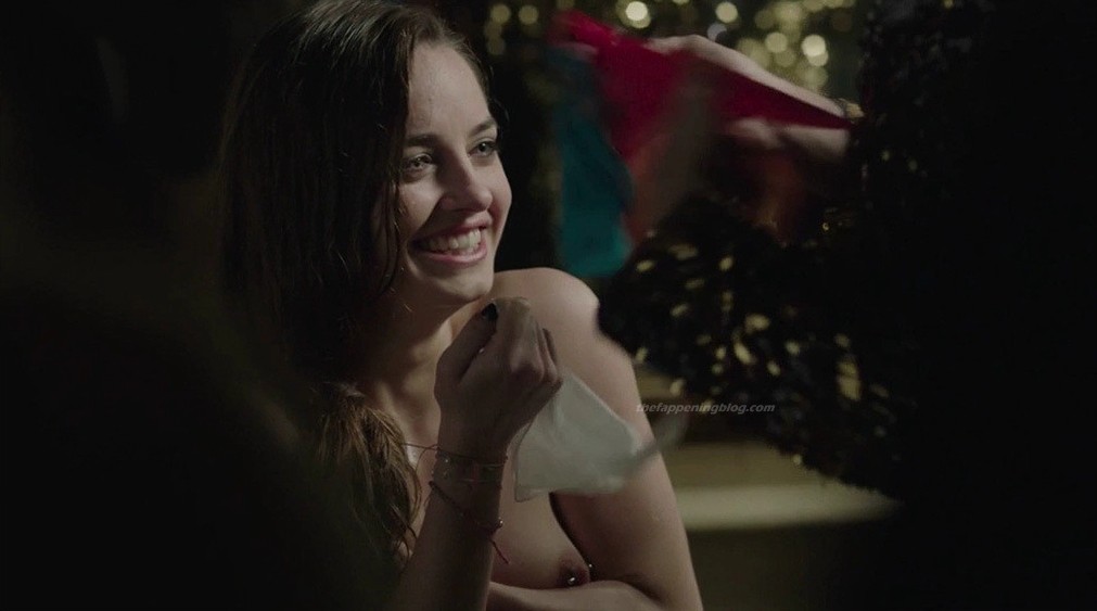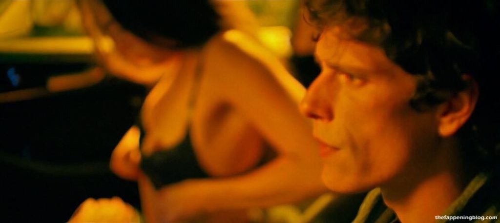 Matilde is sitting in the passenger seat of a car at night as she unzips her hoodie to expose her breasts and then sits there topless as she takes a black bra and then puts it on giving us an out of focus look at her left nipple as she adjusts the bra in the background all while a guy in the foreground waits for her to finish changing.