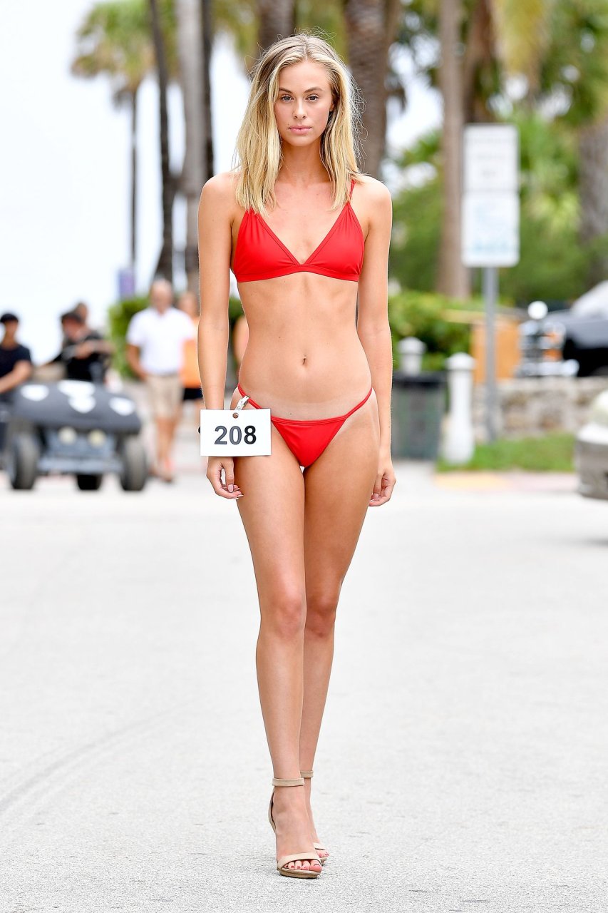 2019 Sports Illustrated претендентка Мэтта Паркер замечена в отеле W в Майами-Бич, Флорида, 12.07.2019. Молодая модель продемонстрировала своё потрясающее стройное тело, позируя в красном бикини.