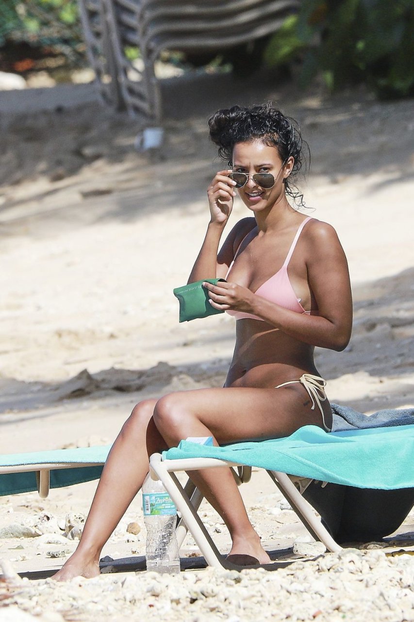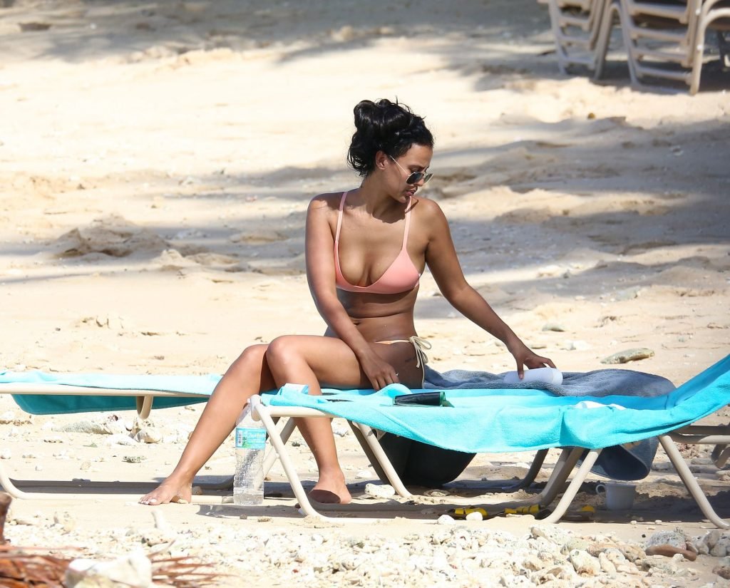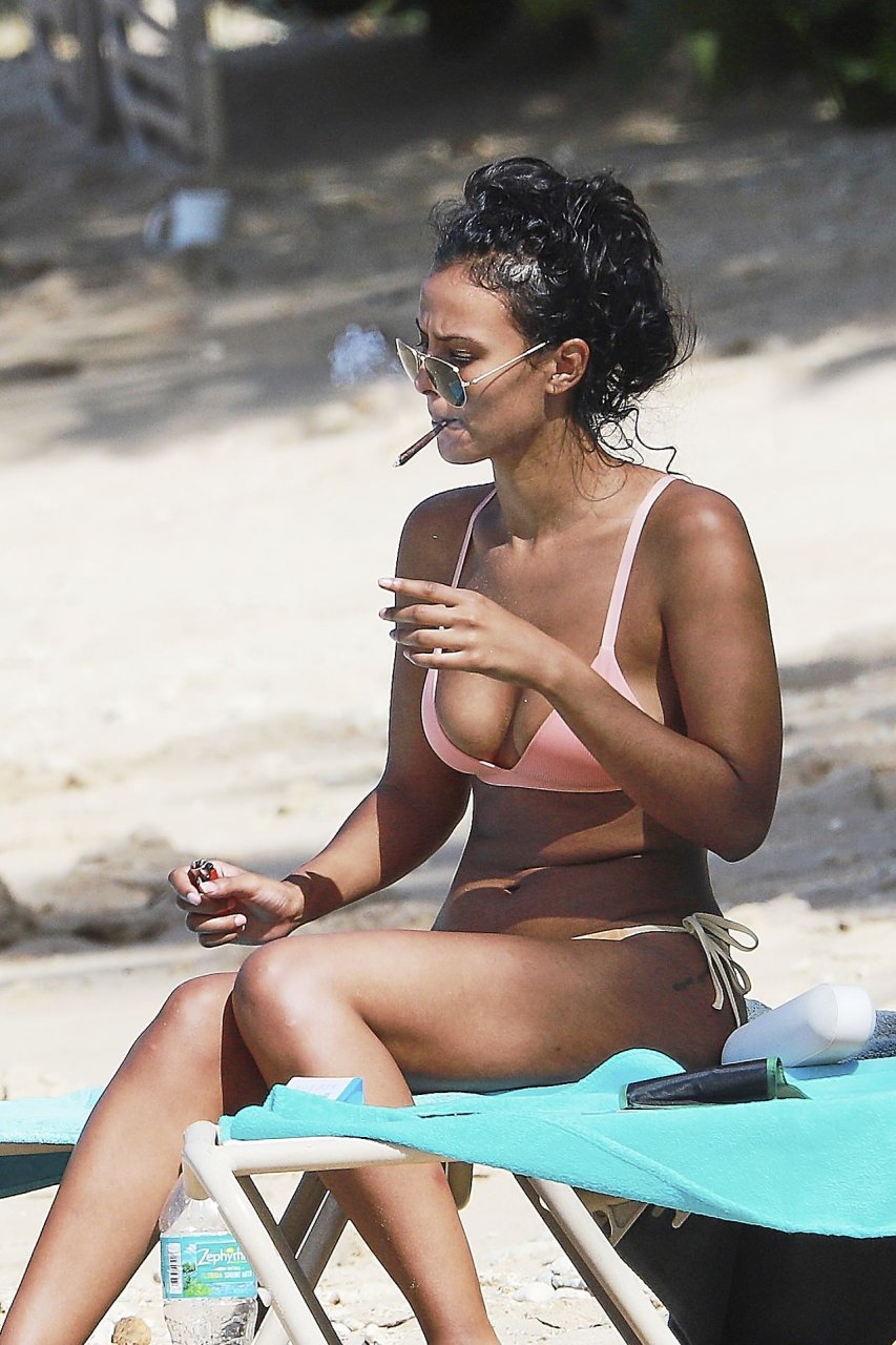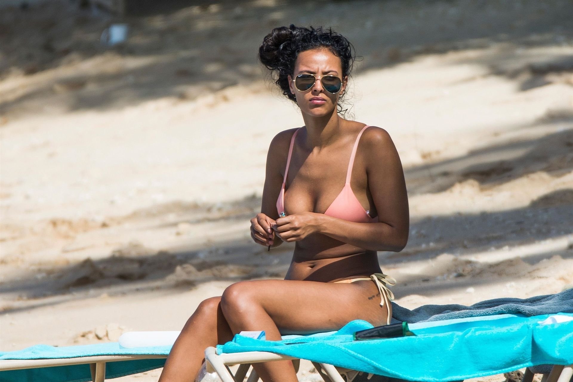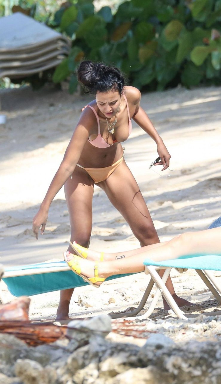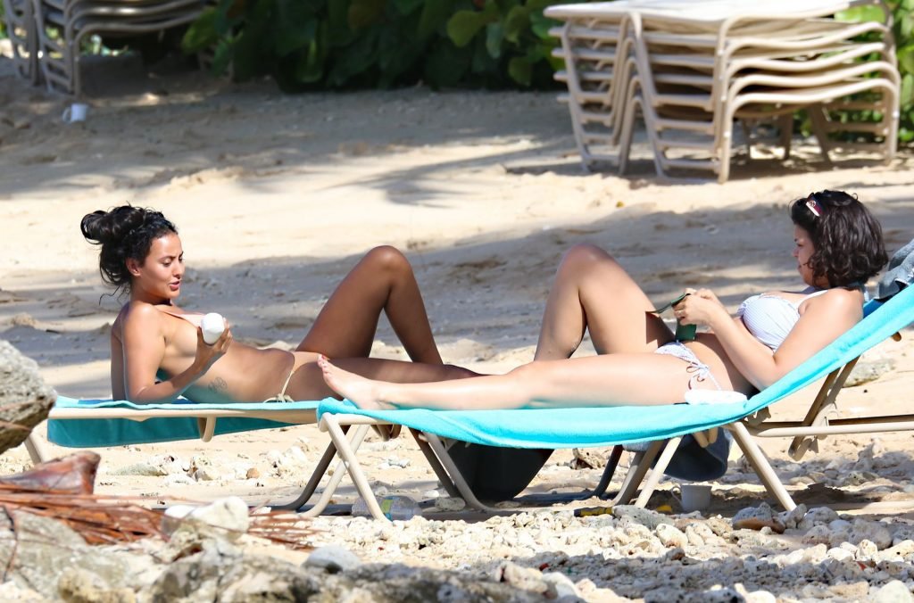 Красивая брюнетка Maya Jama наслаждается днем в двухсекционном бикини на пляже в Барбадосе, 12/04/2018. Maya Indea Jama — 24-летняя британская телеведущая и радиоведущая (MTV, Channel 4).