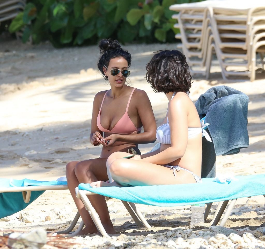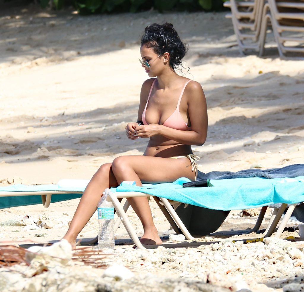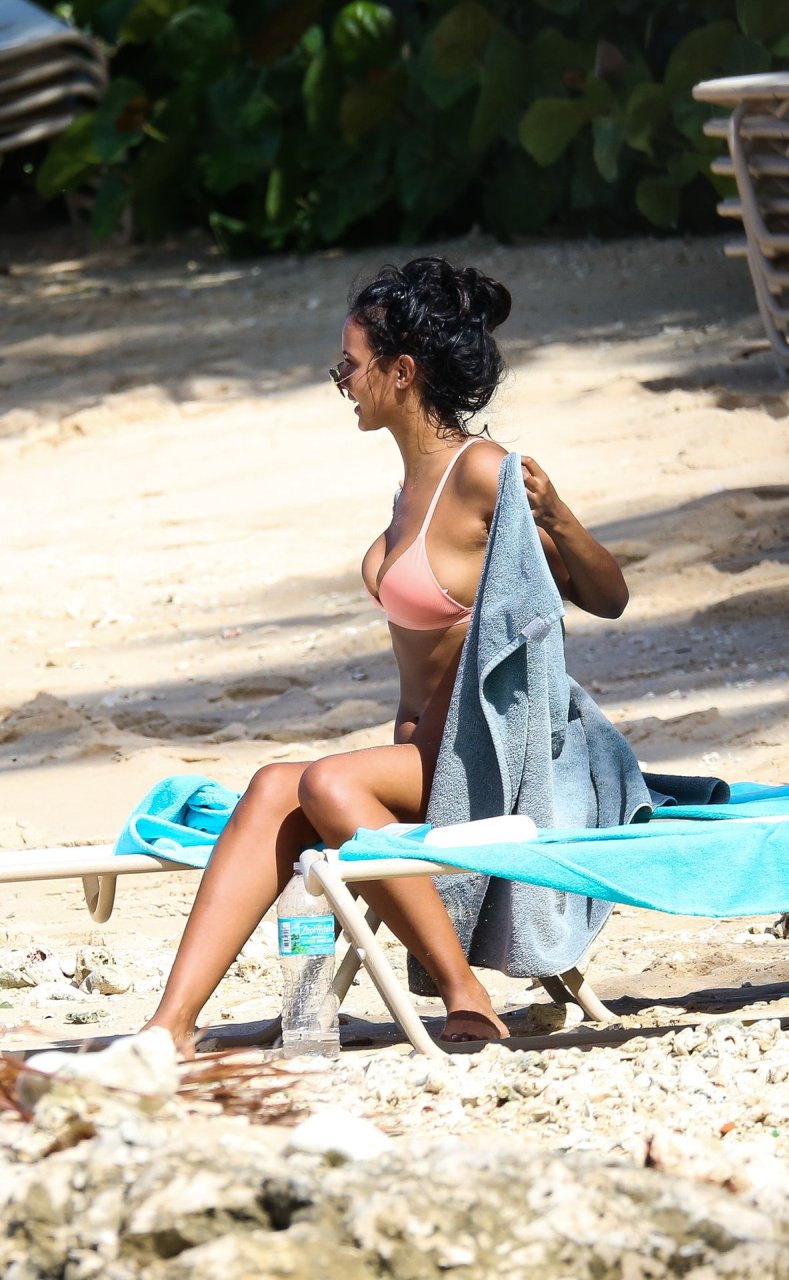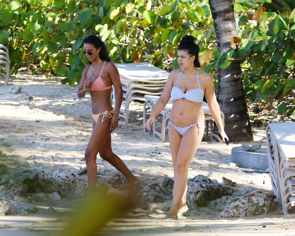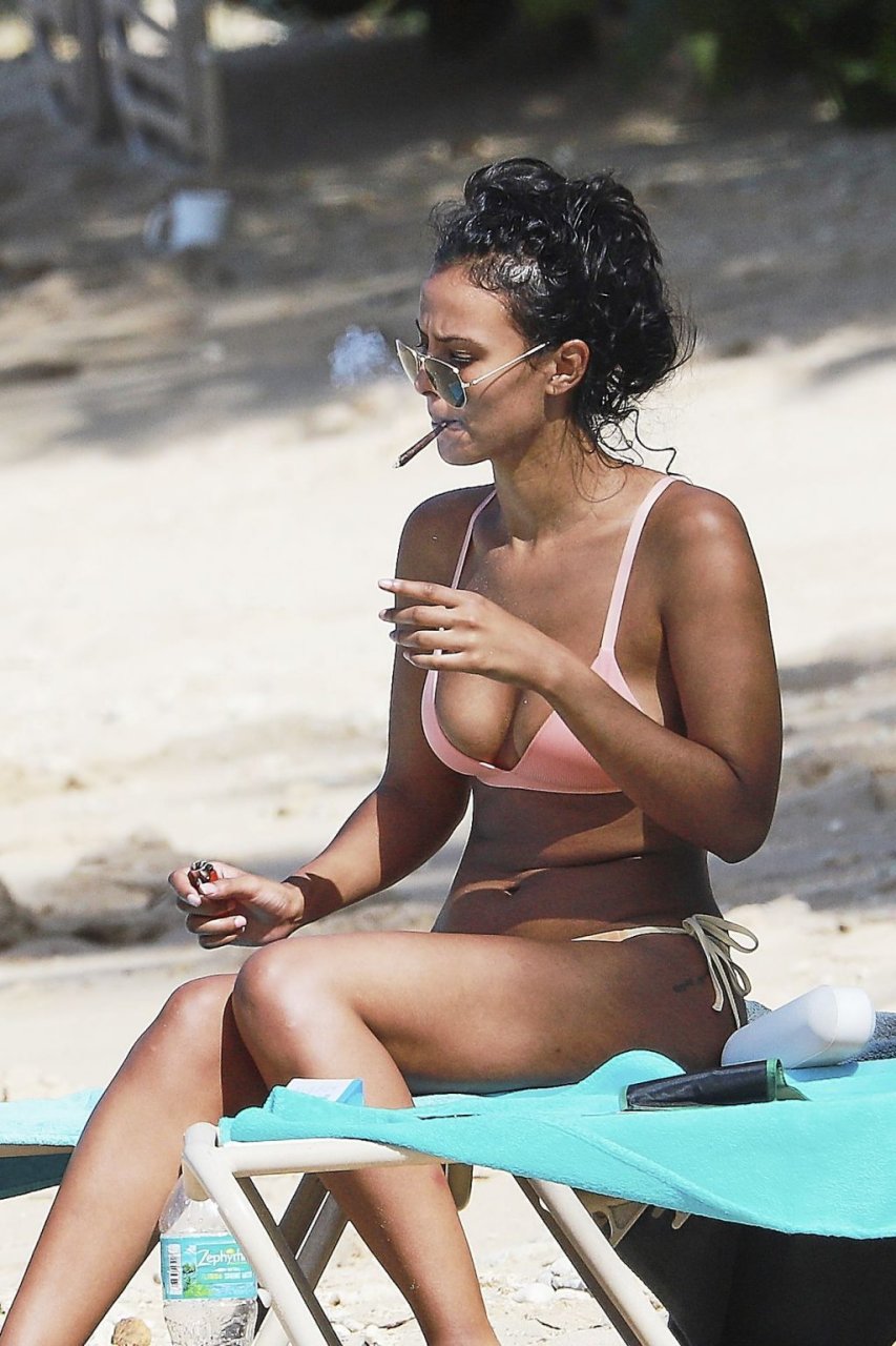Красивая брюнетка Maya Jama наслаждается днем в двухсекционном бикини на пляже в Барбадосе, 12/04/2018. Maya Indea Jama — 24-летняя британская телеведущая и радиоведущая (MTV, Channel 4).