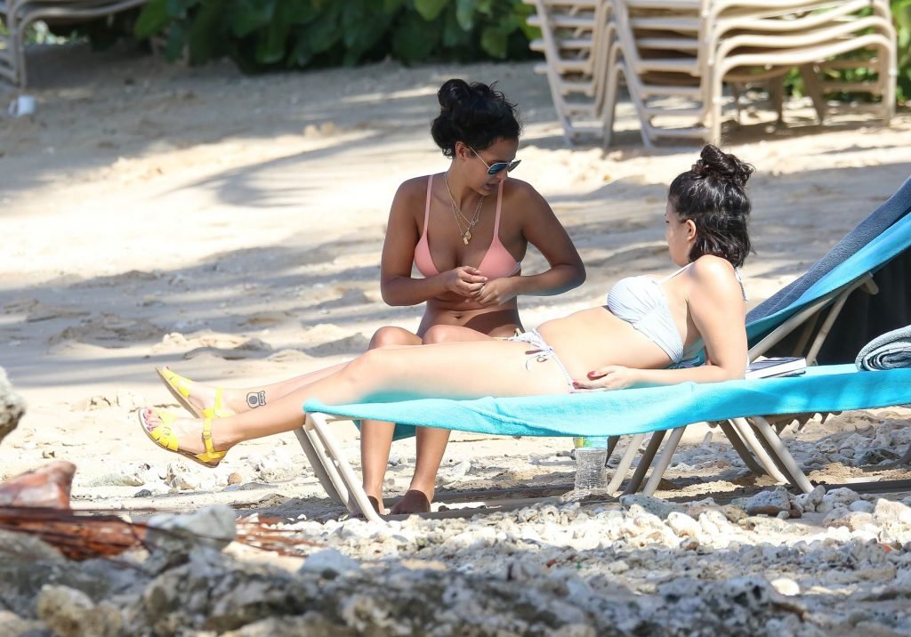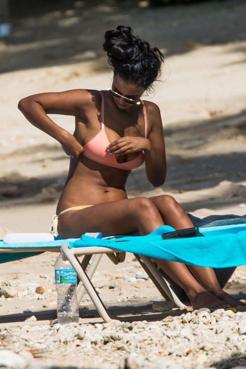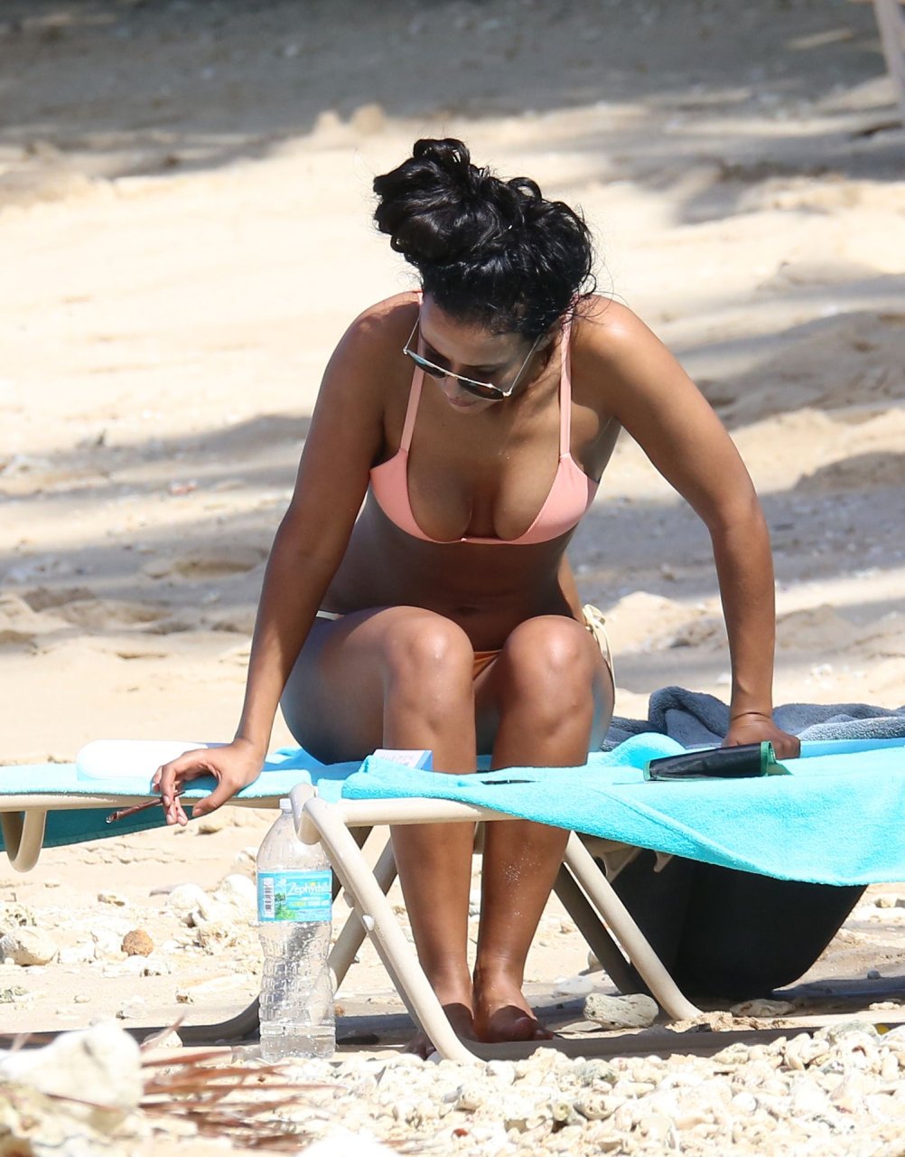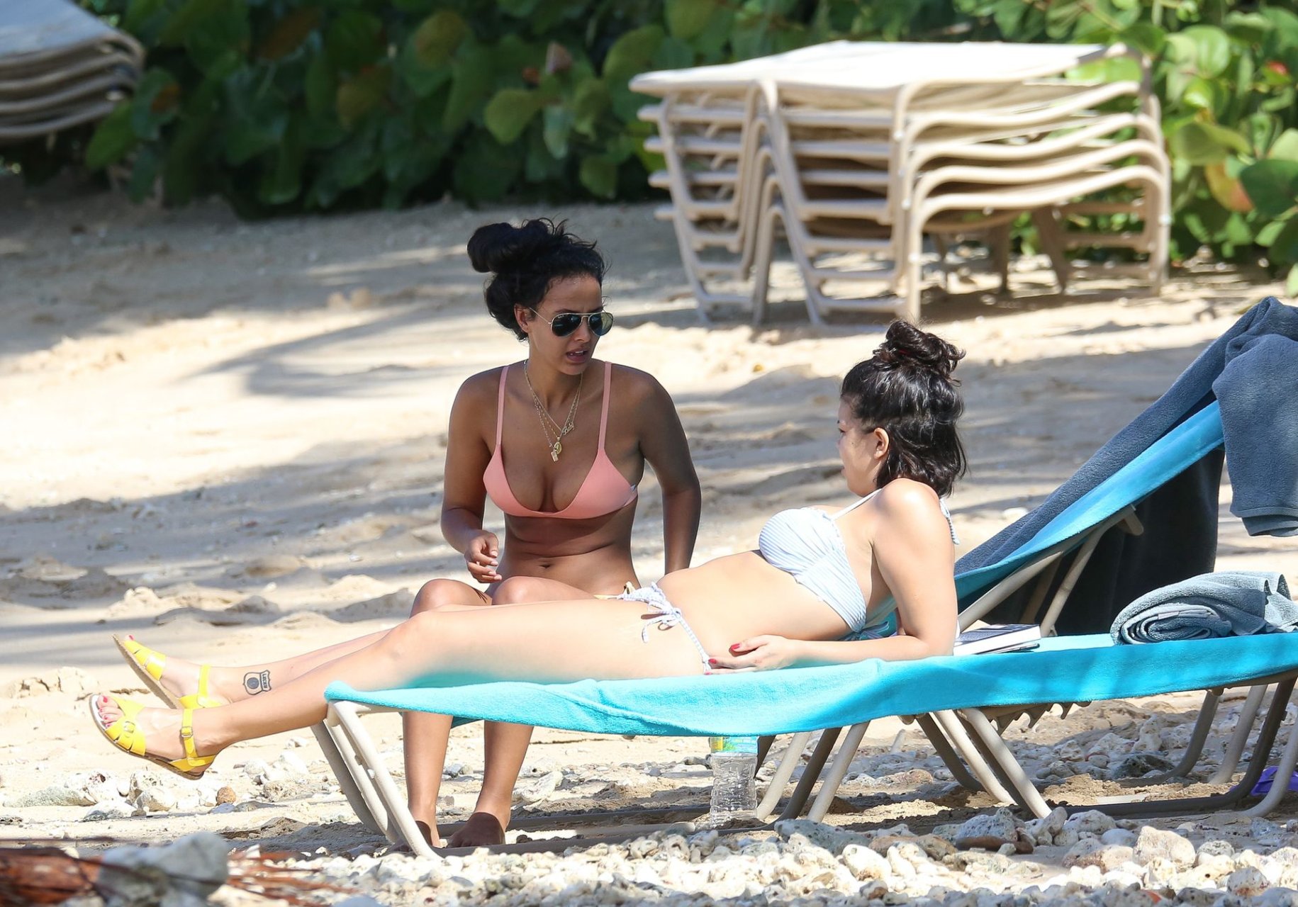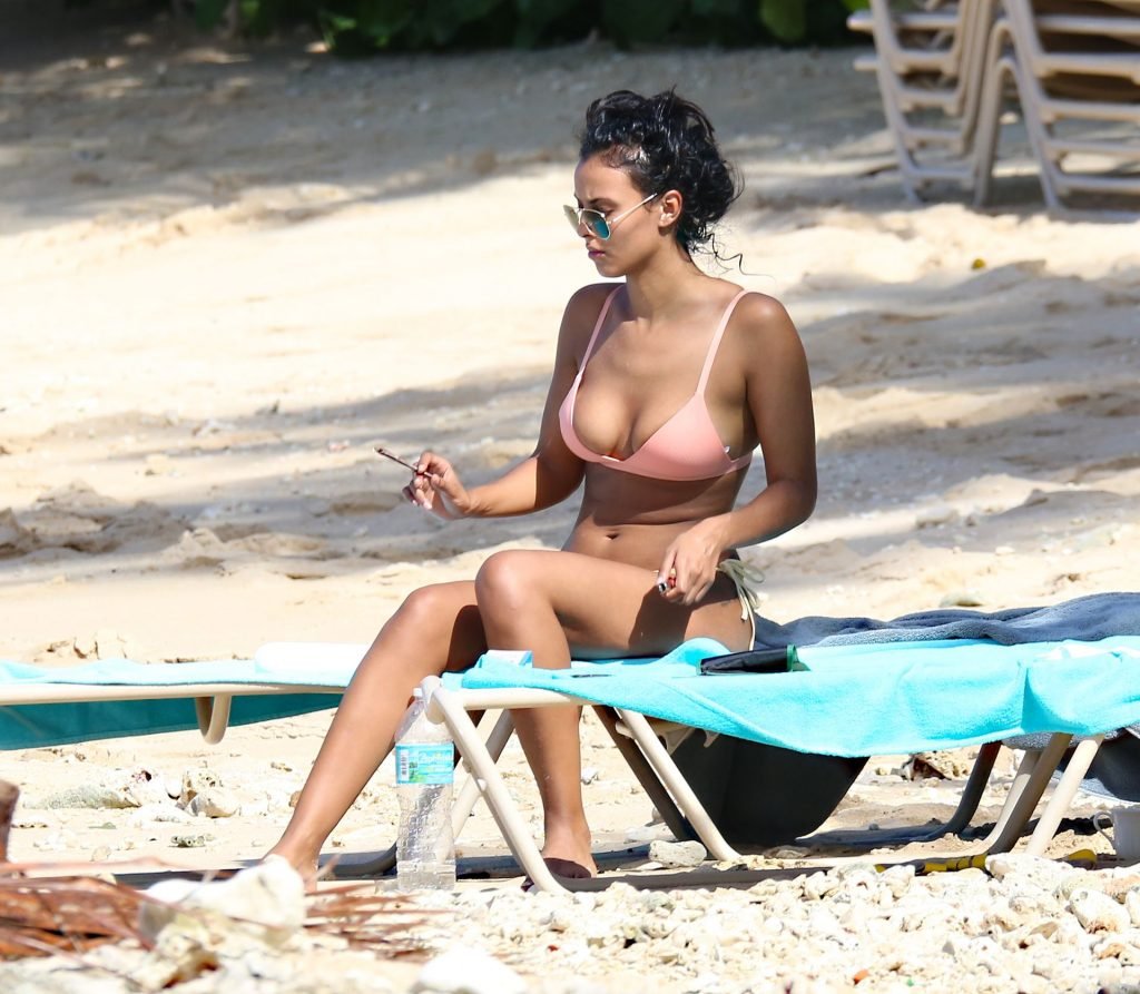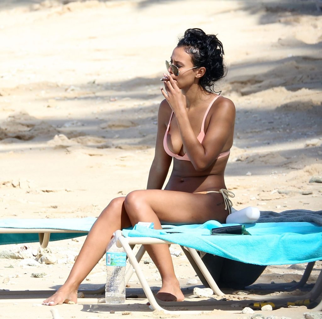 Красивая брюнетка Maya Jama наслаждается днем в двухсекционном бикини на пляже в Барбадосе, 12/04/2018. Maya Indea Jama — 24-летняя британская телеведущая и радиоведущая (MTV, Channel 4).