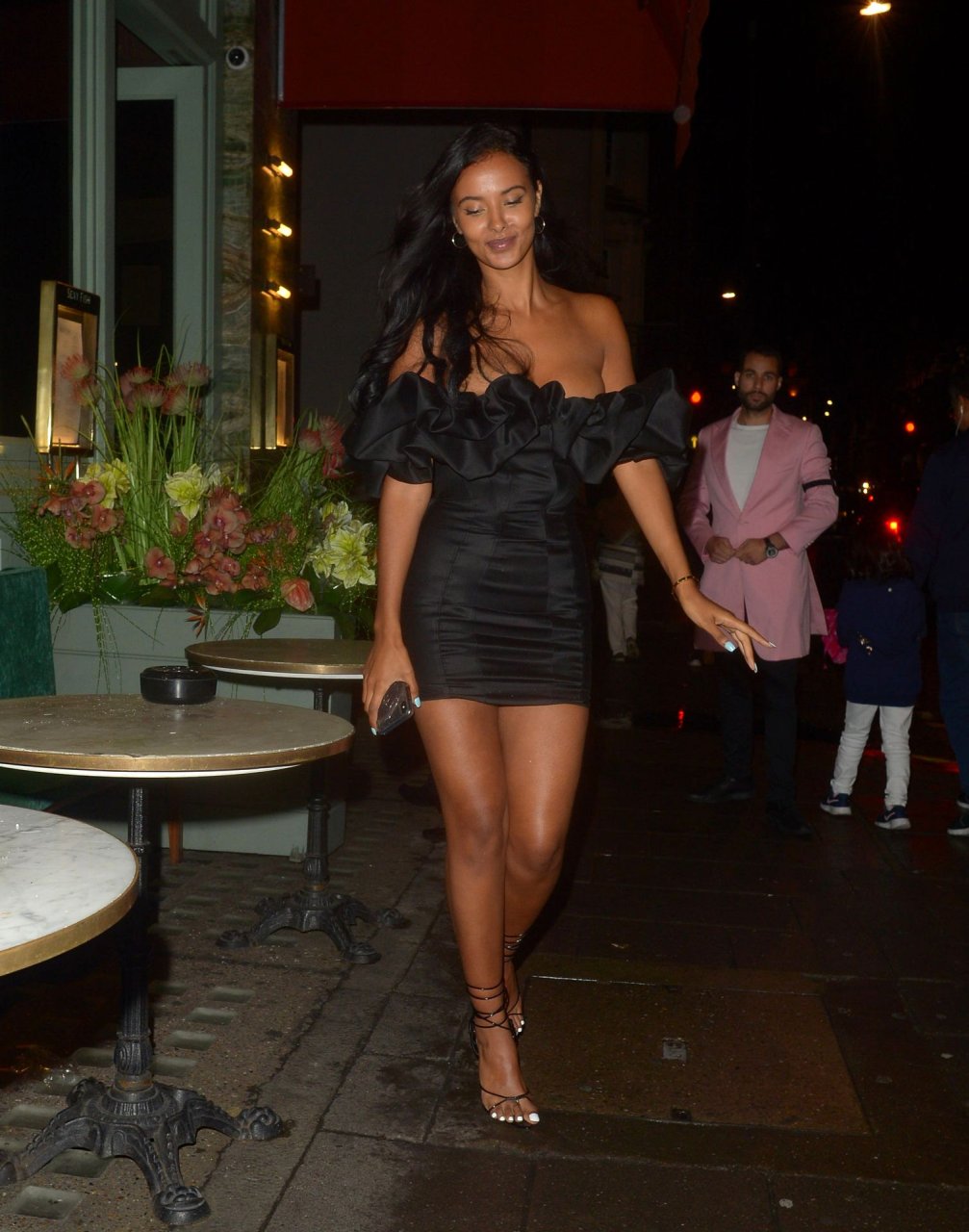 Длинноногая Maya Jama празднует здесь свой 25-й день рождения, покидая ресторан Sexy Fish в Мэйфэр, Лондон, 15.08.2019.