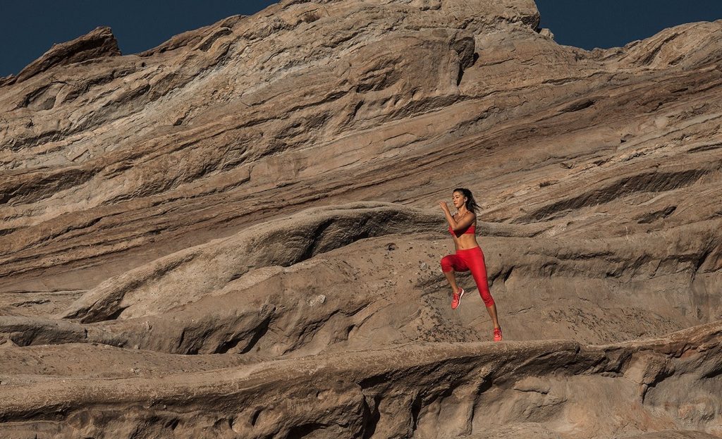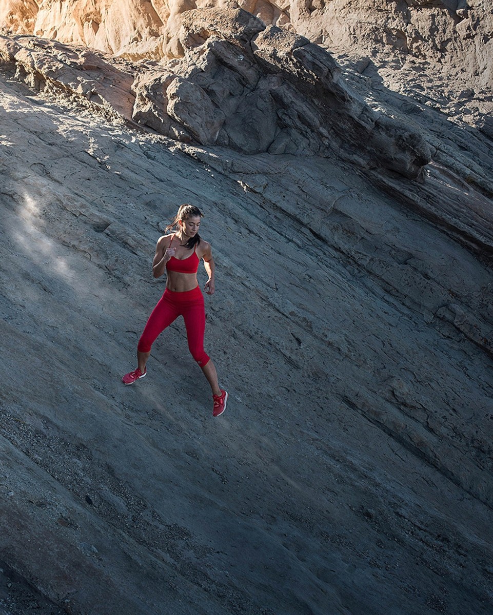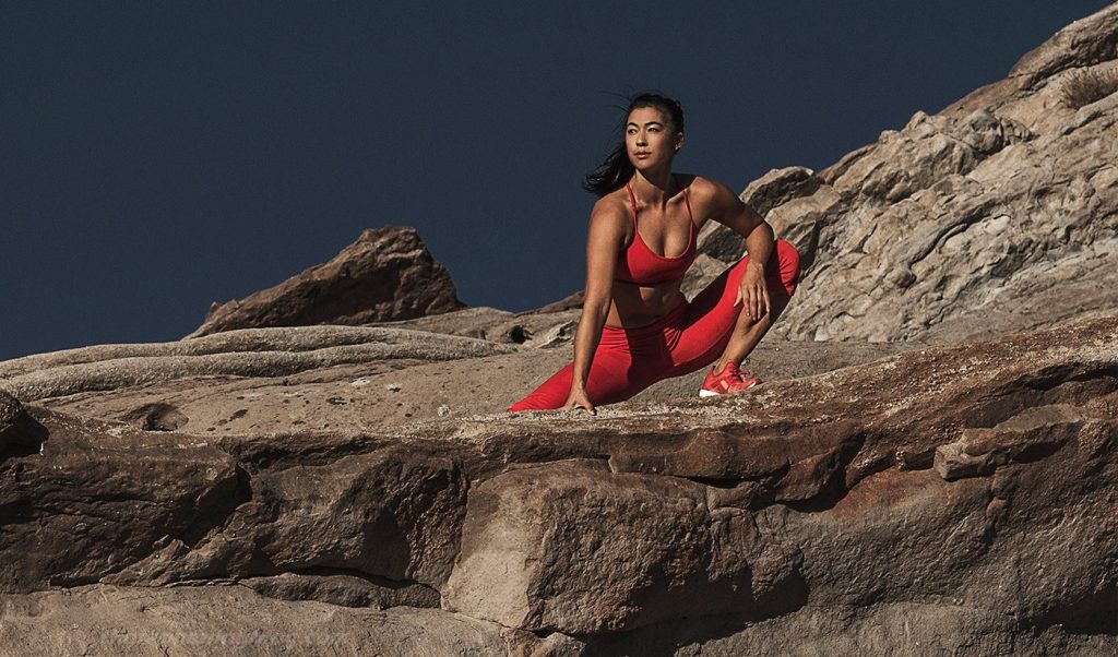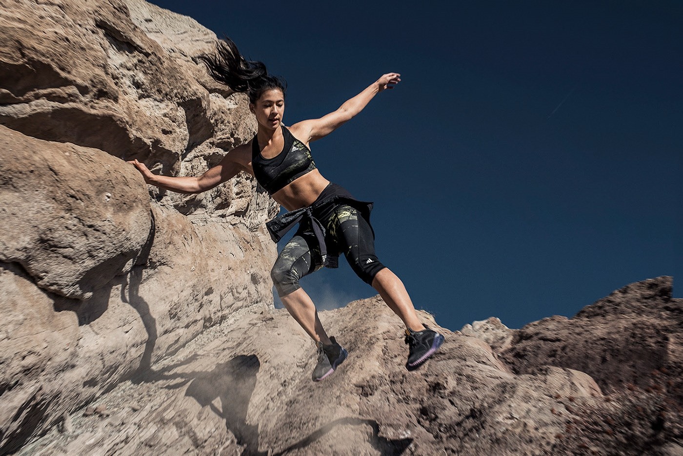 Американская танцовщица, актриса, модель и посол Adidas Миган Конг позирует во время тренировки на каменистой поверхности в фотосессии Франца Штайнера.
