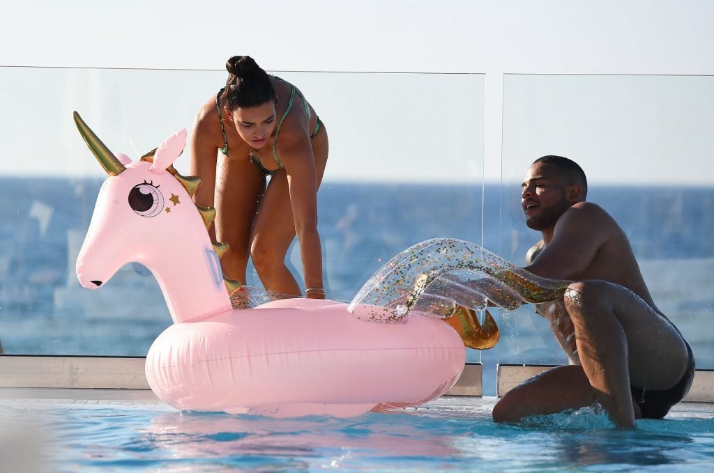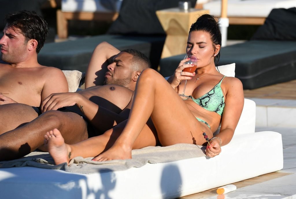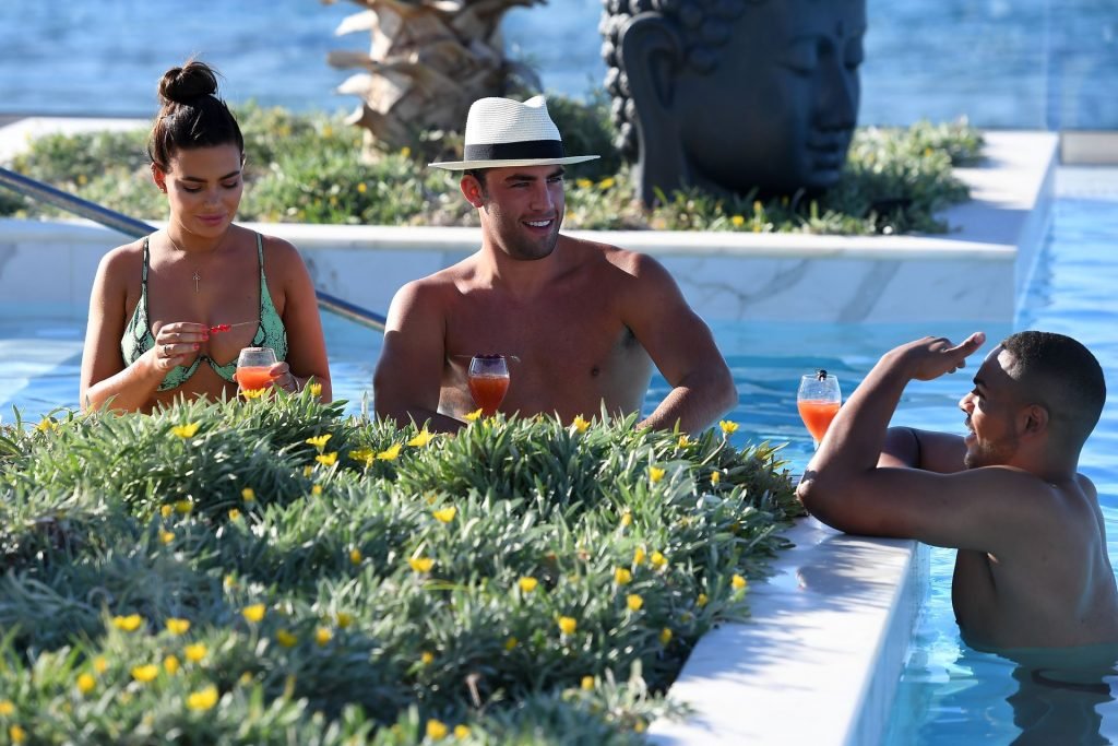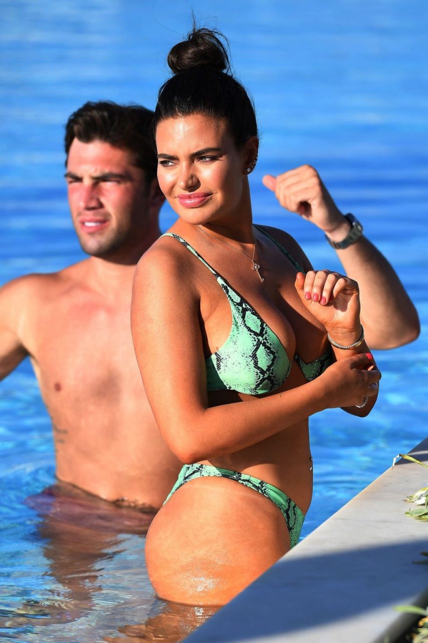 ‘Звезды шоу «Celebs Go Dating», Меган Бартон Хэнсон, Джек Финчам, Натан Генри, были замечены на съемках в Крите, Греция, 28.07.2019. Меган продемонстрировала свои достоинства у бассейна.