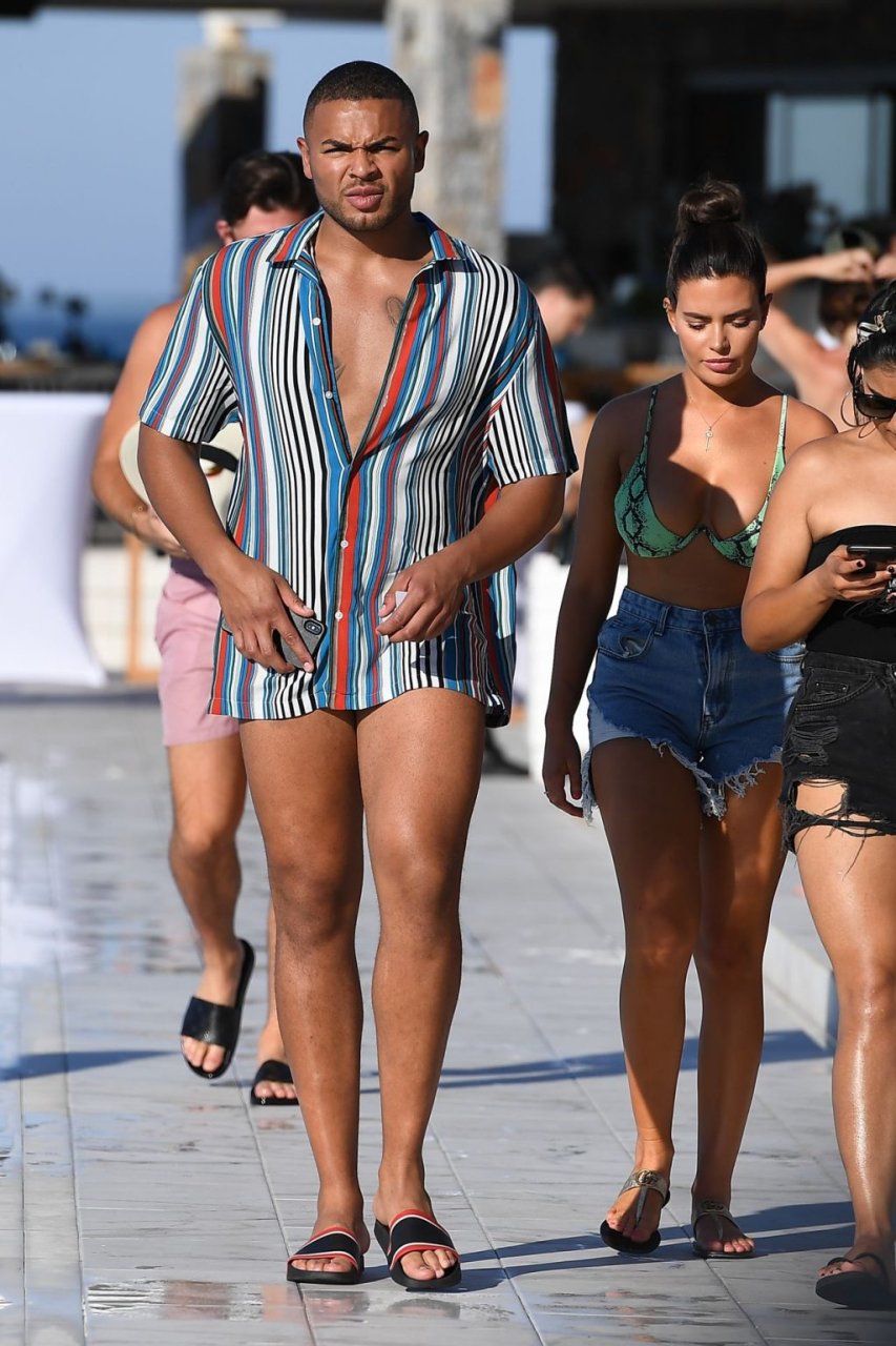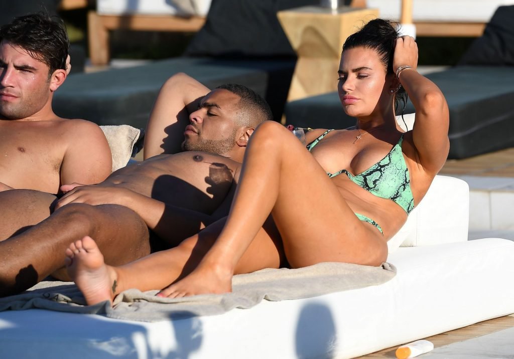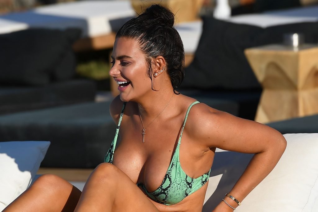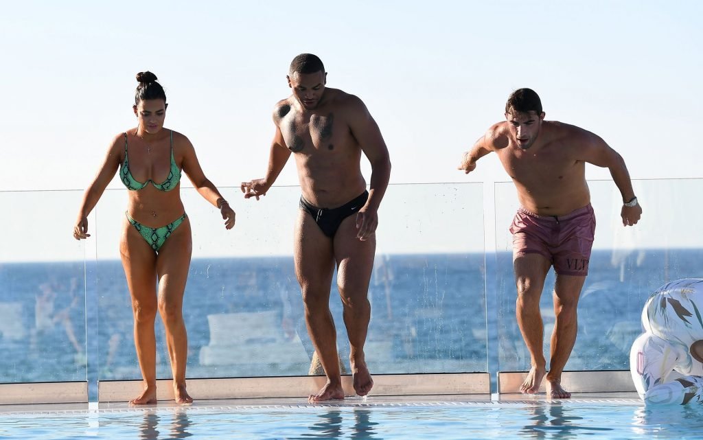 ‘Звезды шоу «Celebs Go Dating», Меган Бартон Хэнсон, Джек Финчам, Натан Генри, были замечены на съемках в Крите, Греция, 28.07.2019. Меган продемонстрировала свои достоинства у бассейна.