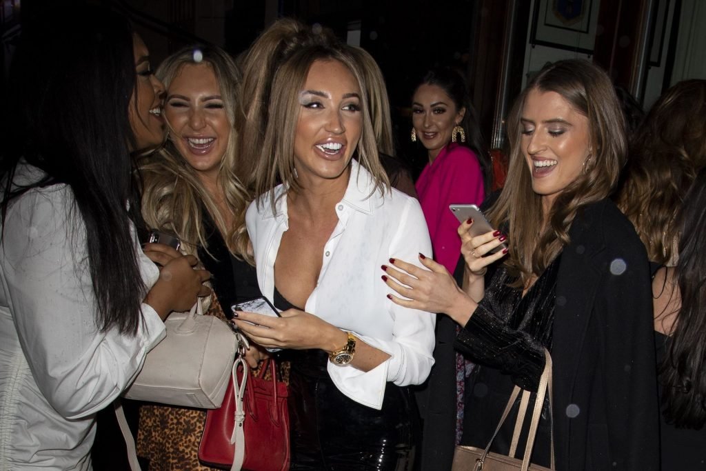 Megan McKenna промокла под проливным дождём, прогуливаясь по Сохо, 03/09/2019. После выхода из бара Little Italy она поделилась пикантной шуткой о том, как сильно промокла, и разразилась смехом вместе с друзьями, когда фотограф пошутил: “Мы тебя ещё больше промочим?” В конце концов, они нашли такси и смогли укрыться от непогоды. Megan была одета в обтягивающие латексные брюки и расстёгнутую белую рубашку, обнажающую декольте.