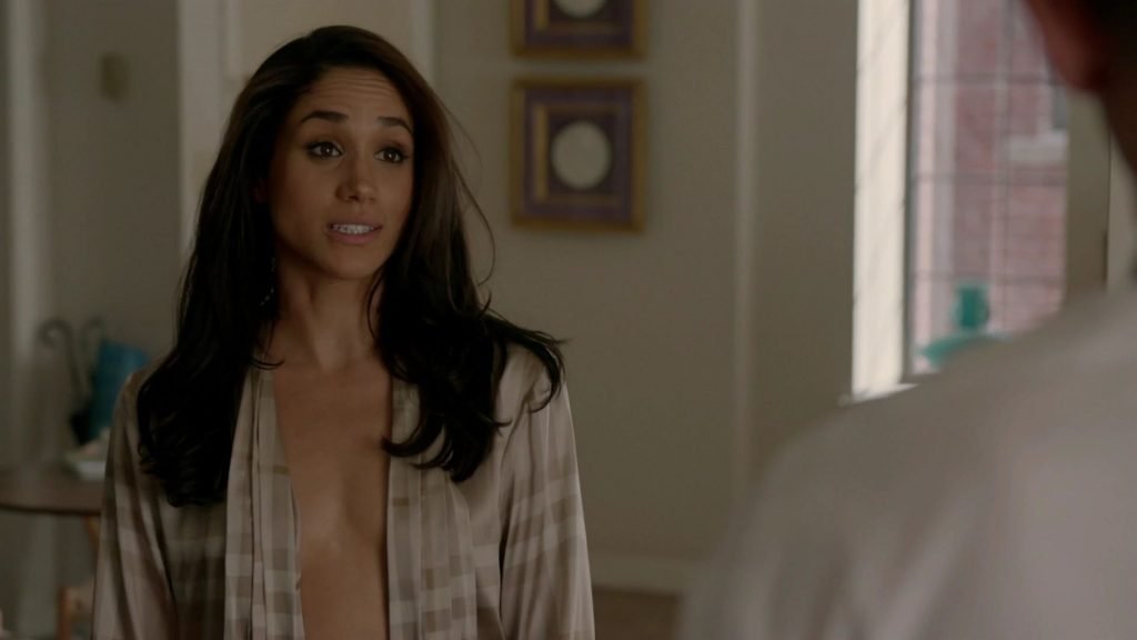 Смотрите сексуальное видео с Меган Маркл из сериала Форс-мажоры (2013) s03e09. Герцогиня (в роли Рэйчел Зейн) выглядит идеально, но она прикрывает свои маленькие груди для нас.