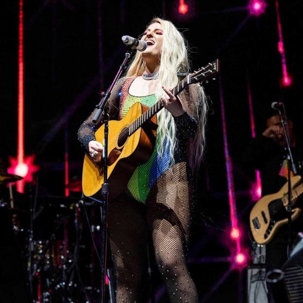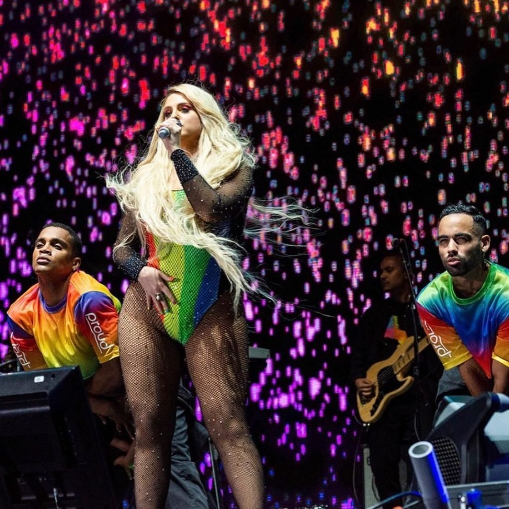 Певица Меган Трейнор продемонстрировала свои формы на сцене во время сексуального выступления на LA Pride (июнь 2019).