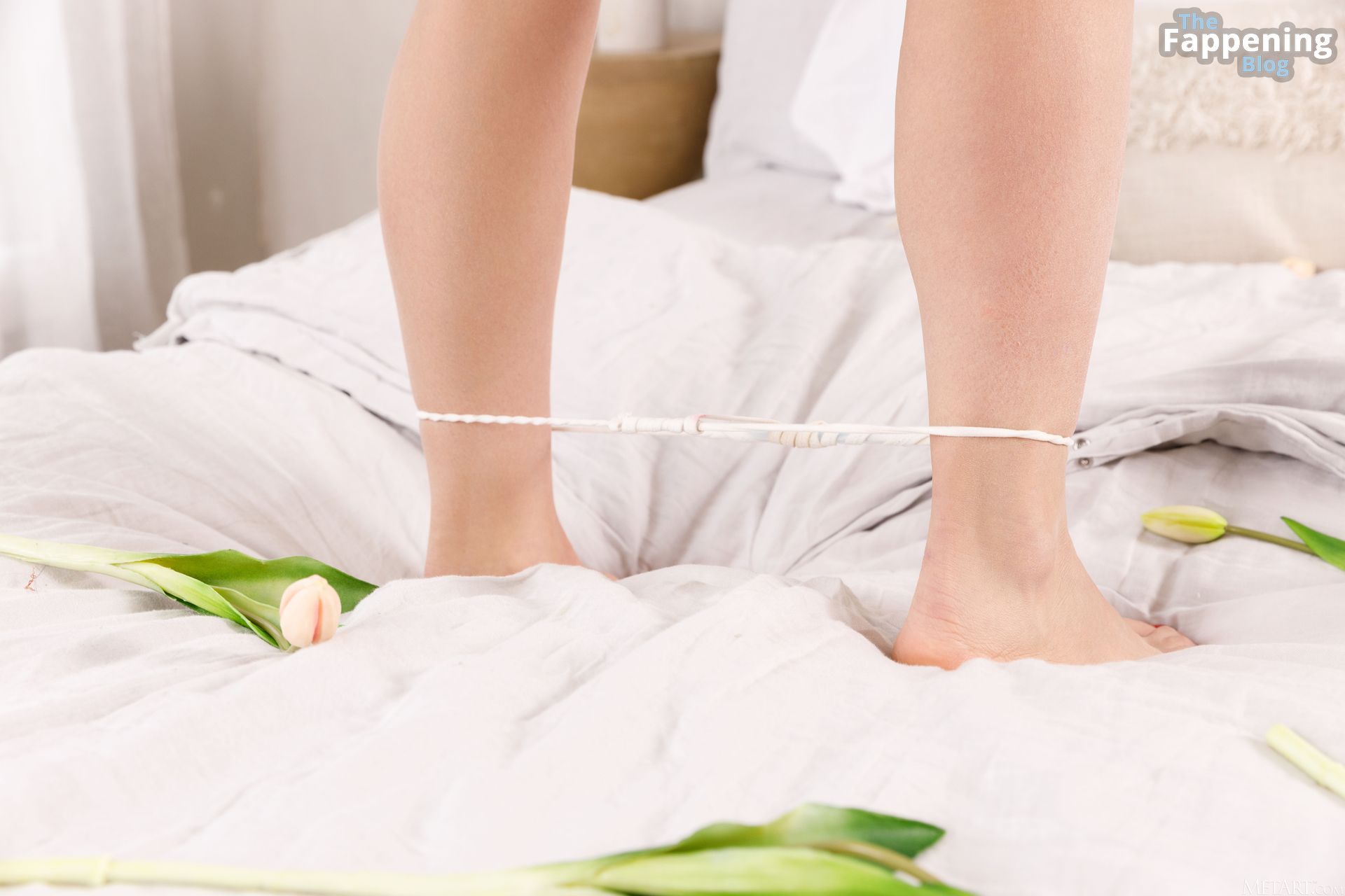 Посмотрите на 19-летнюю модель Меланию, которая полностью обнажена и позирует на кровати, украшенной тюльпанами. Эта милая молодая девушка с пышными формами и милым лицом позирует без белья перед камерой, показывая нам всё, что у неё есть.
