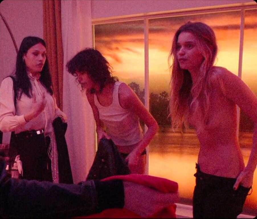Эбби Ли и Мика Арганарас обе раздеваются до топа, переодеваясь за кулисами на съёмочной площадке фильма, девушки остаются в трусиках (Эбби справа, Мика слева в майке с торчащими сосками сначала).