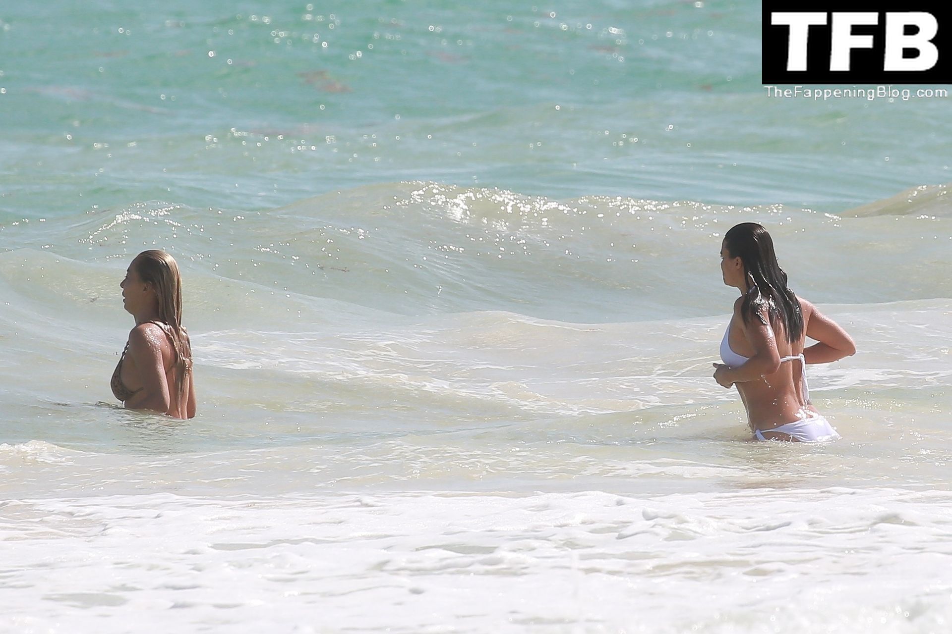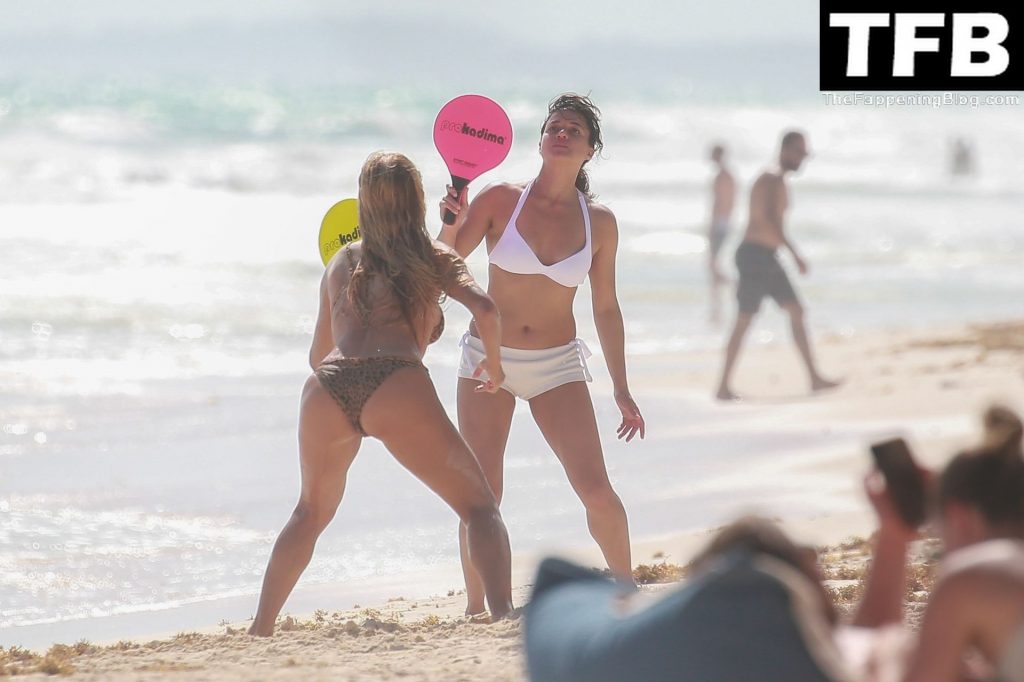 Мишель Родригес показывает чуть больше, чем следует, в белом бикини во время отпуска с загадочной блондинкой в Тулуме, Мексика, 28.12.2021.