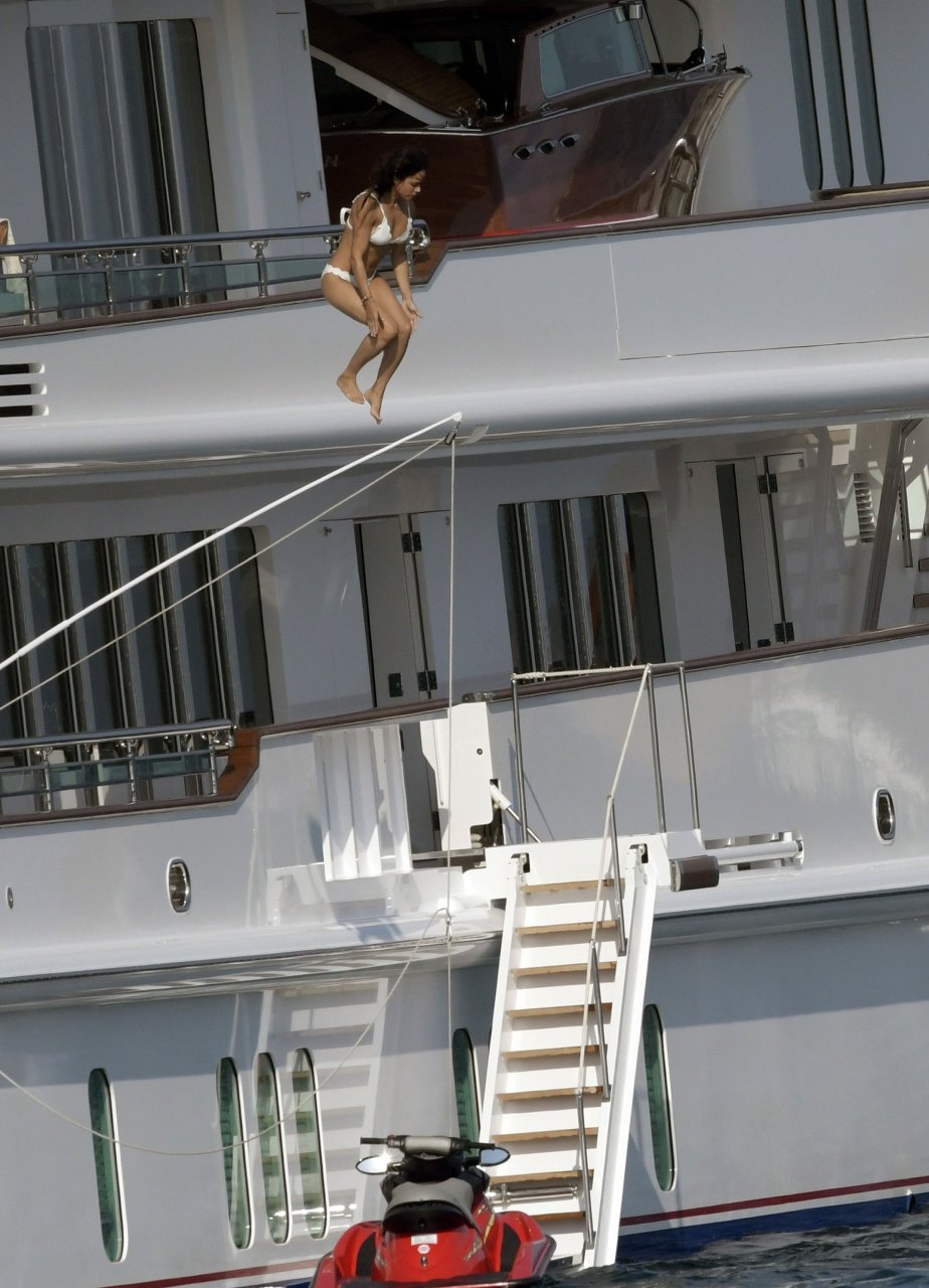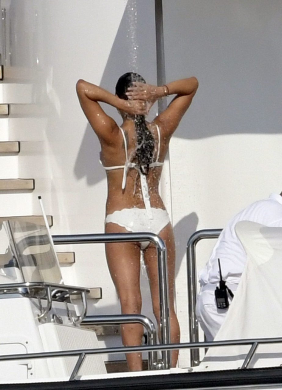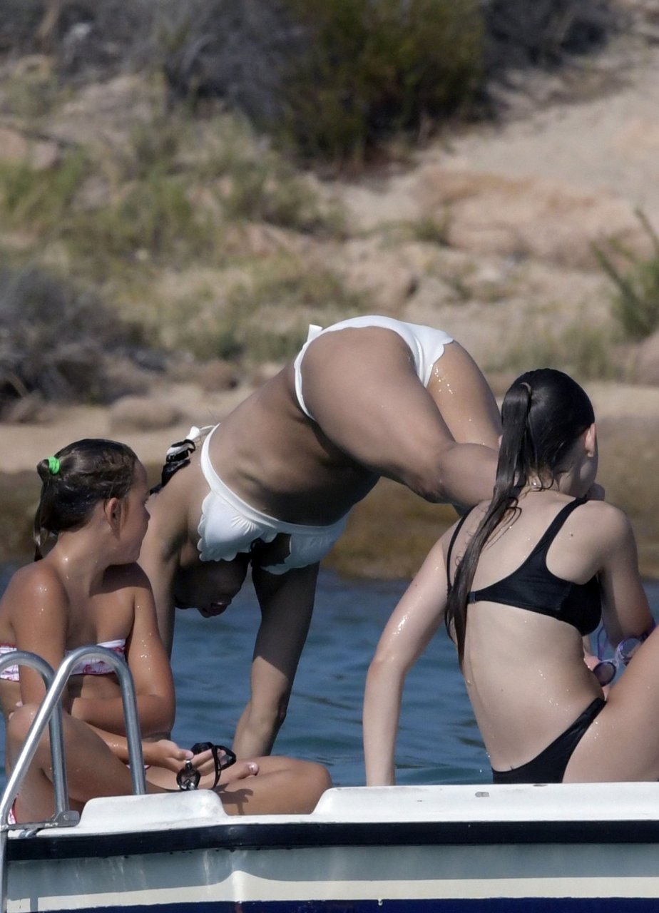 Бисексуальная актриса Мишель Родригес (40) была замечена в белом бикини на яхте в Порто Черво, Италия, 08/10/2018.