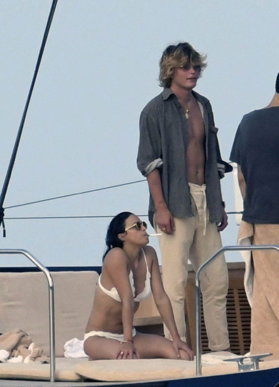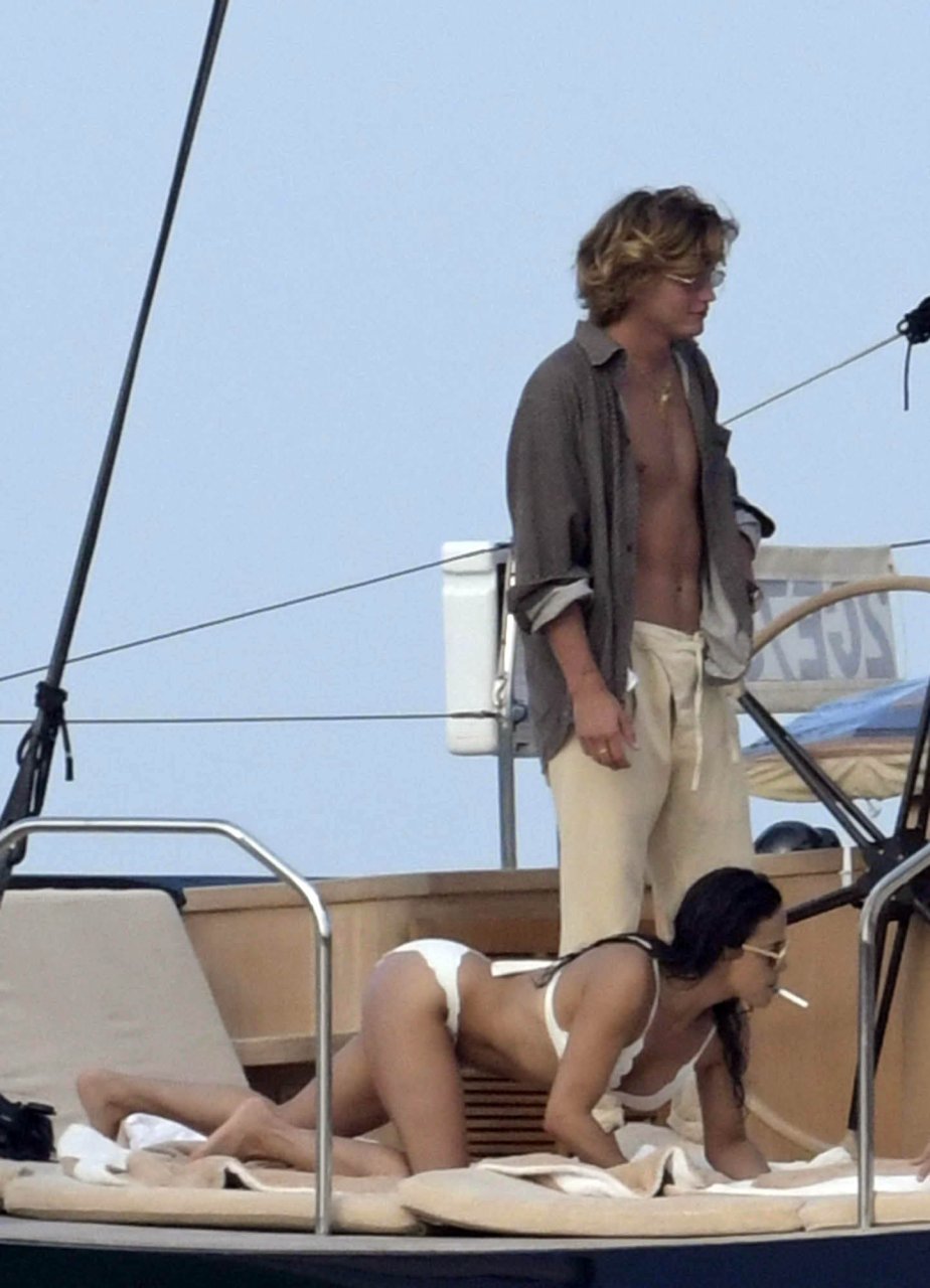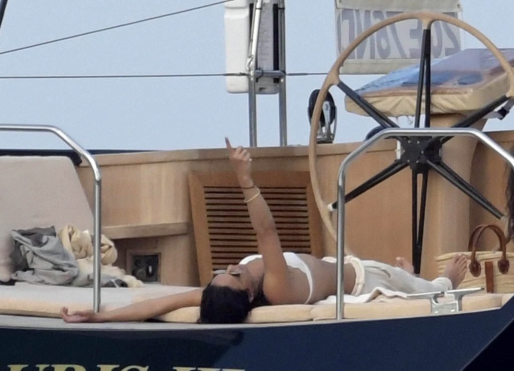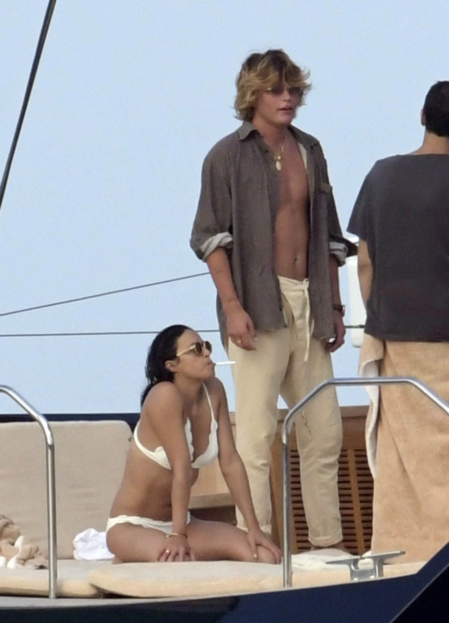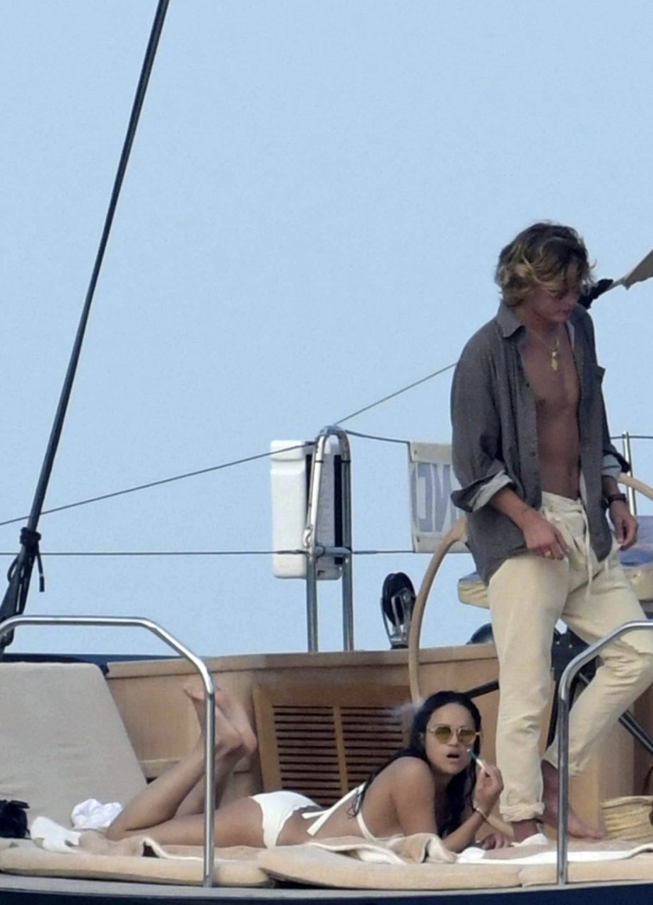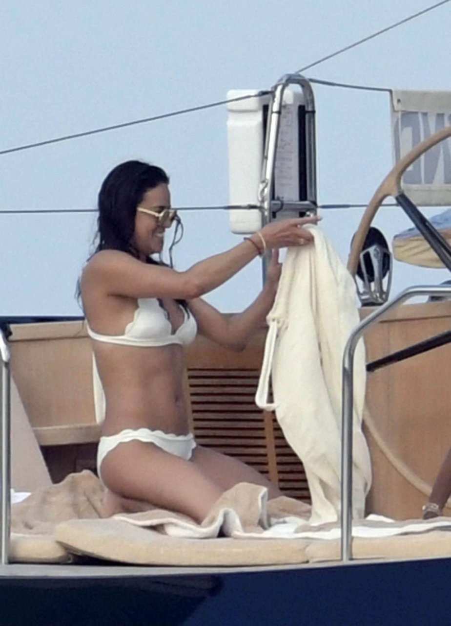 Жгучая Мишель Родригес демонстрирует свое тело в бикини вместе с австралийской моделью Джорданом Барреттом на яхте в Сардинии, 08/08/2018. Пару видели наслаждающимися белым вином на их лодке.