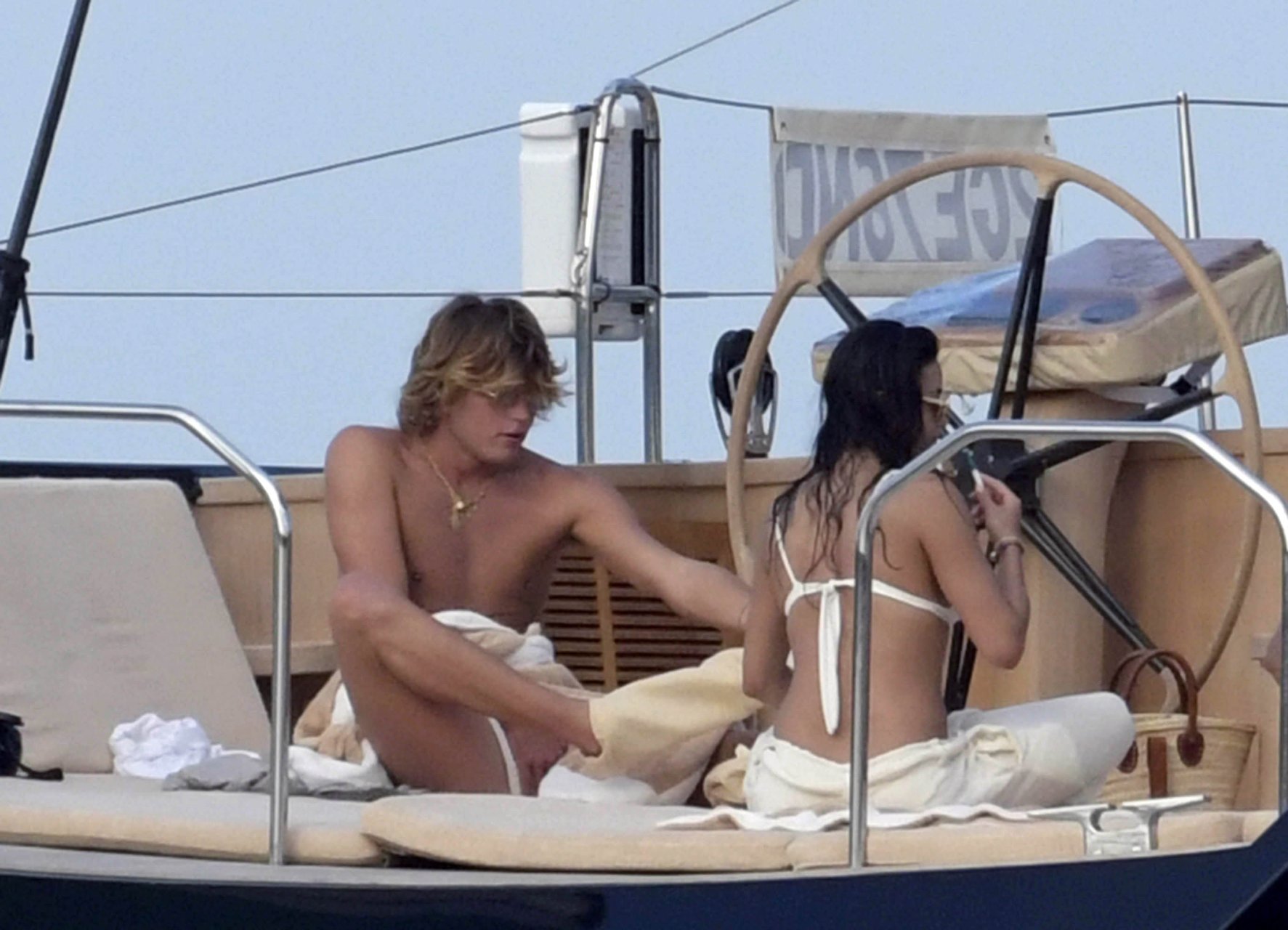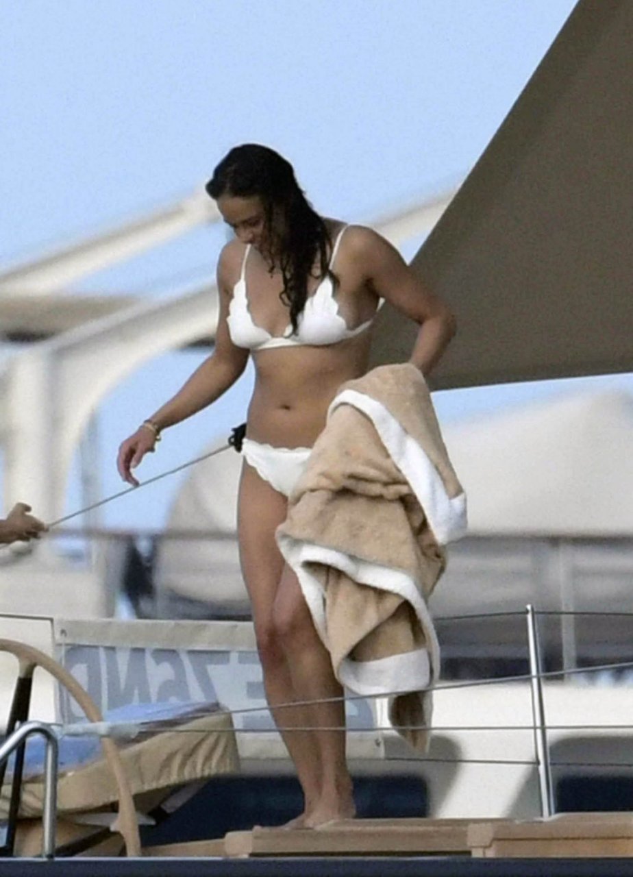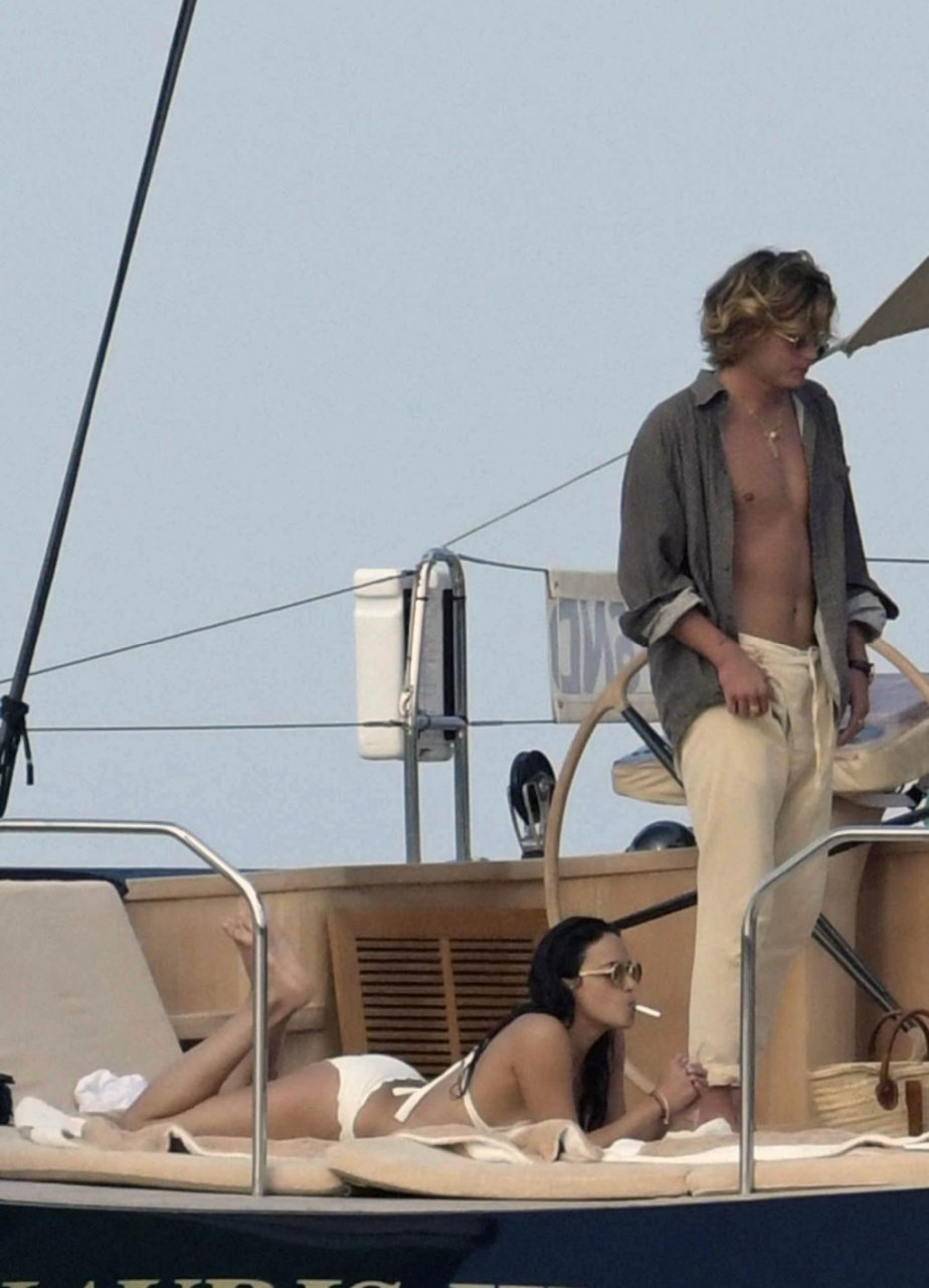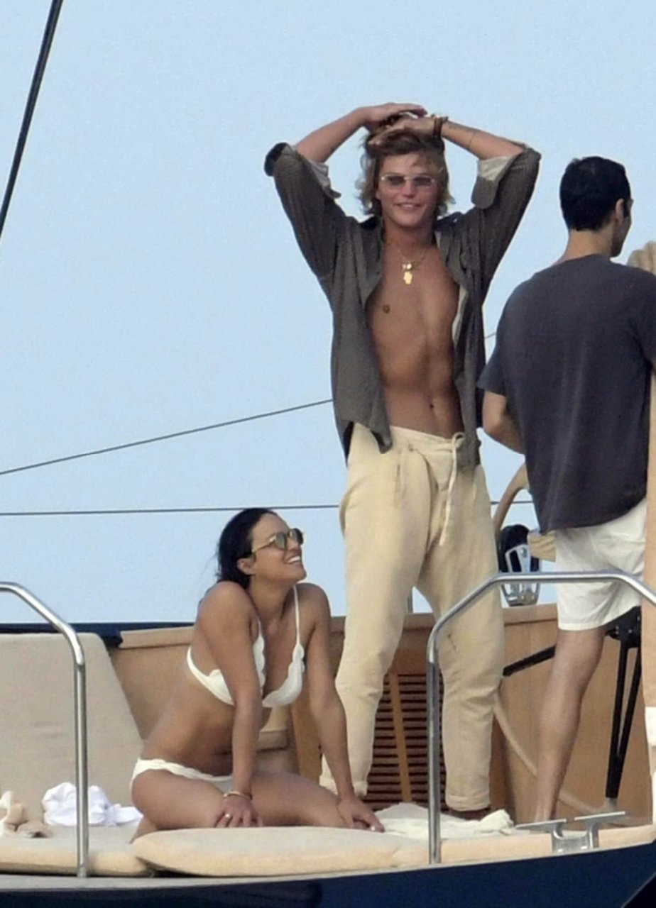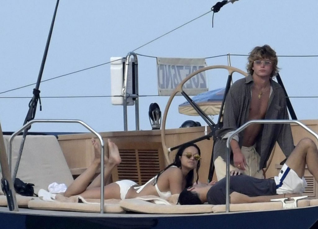 Жгучая Мишель Родригес демонстрирует свое тело в бикини вместе с австралийской моделью Джорданом Барреттом на яхте в Сардинии, 08/08/2018. Пару видели наслаждающимися белым вином на их лодке.