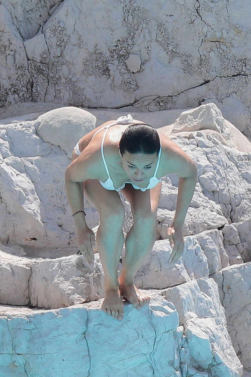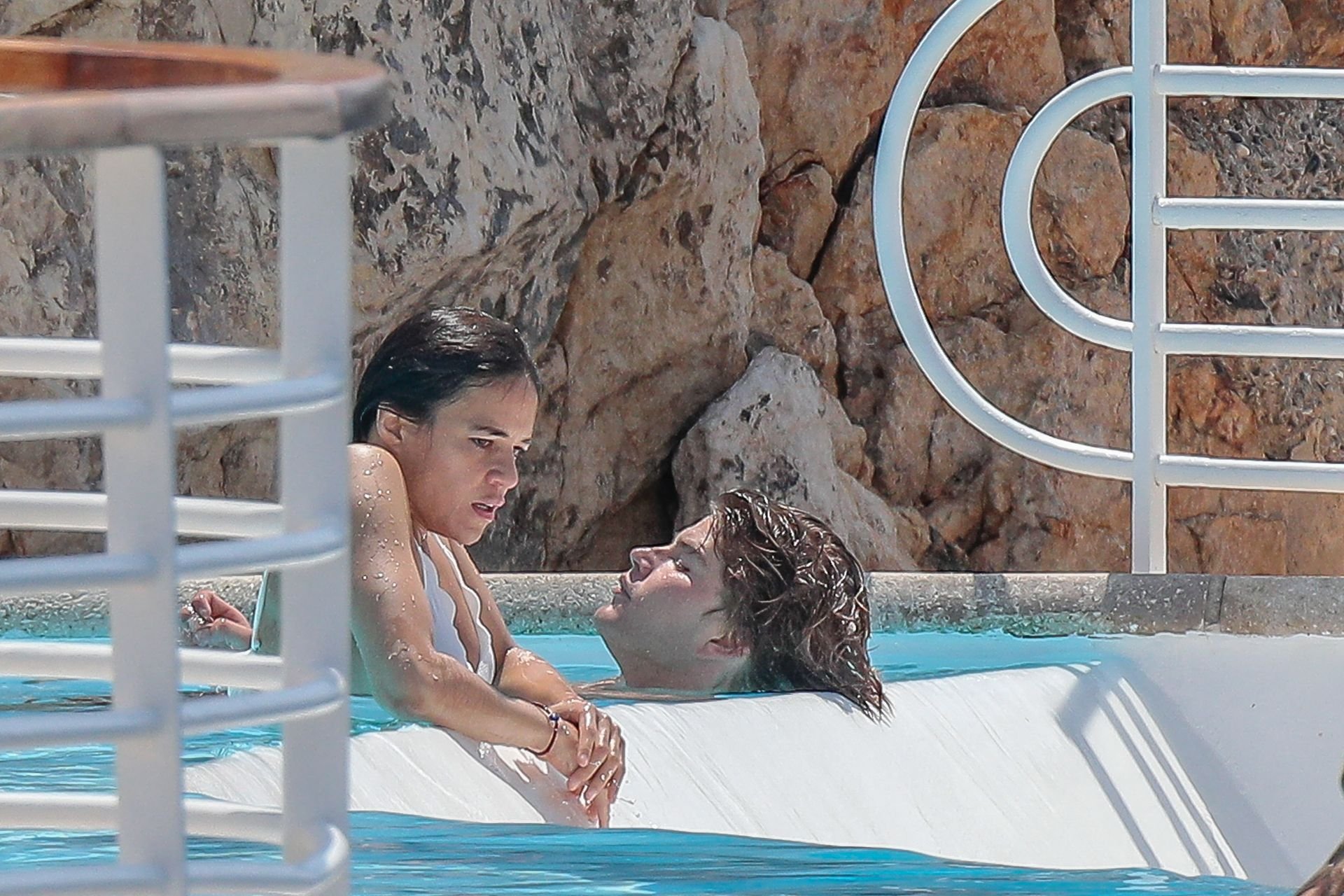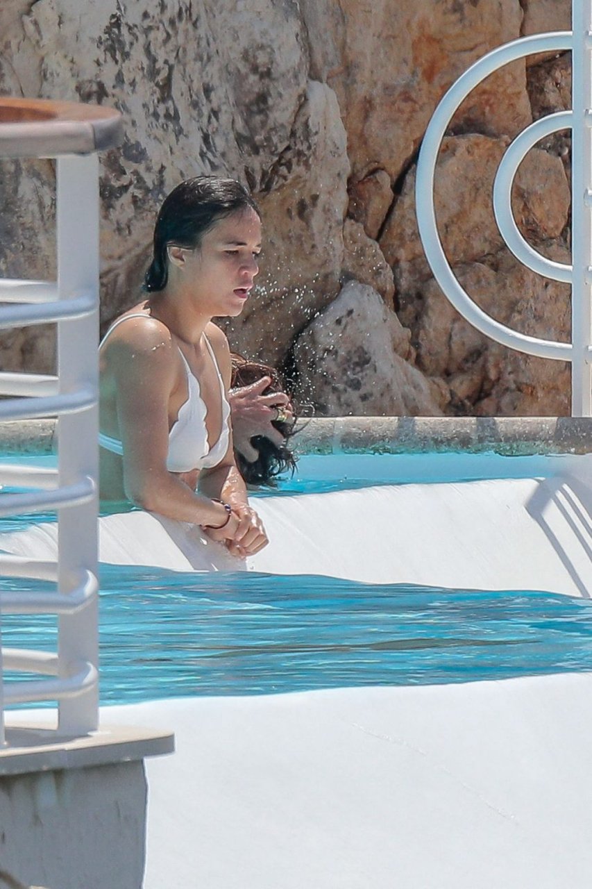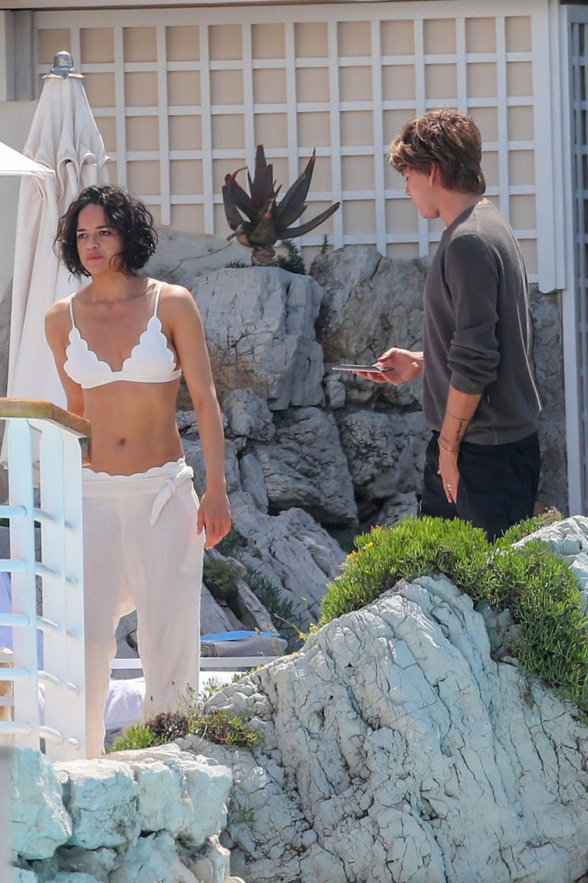 Актриса Мишель Родригес была сфотографирована, демонстрируя свою подтянутую фигуру в бикини, наслаждаясь плаванием с австралийской моделью Джорданом Барреттом в отеле Hotel du Cap-Eden-Roc в Каннах, 22.05.2019.