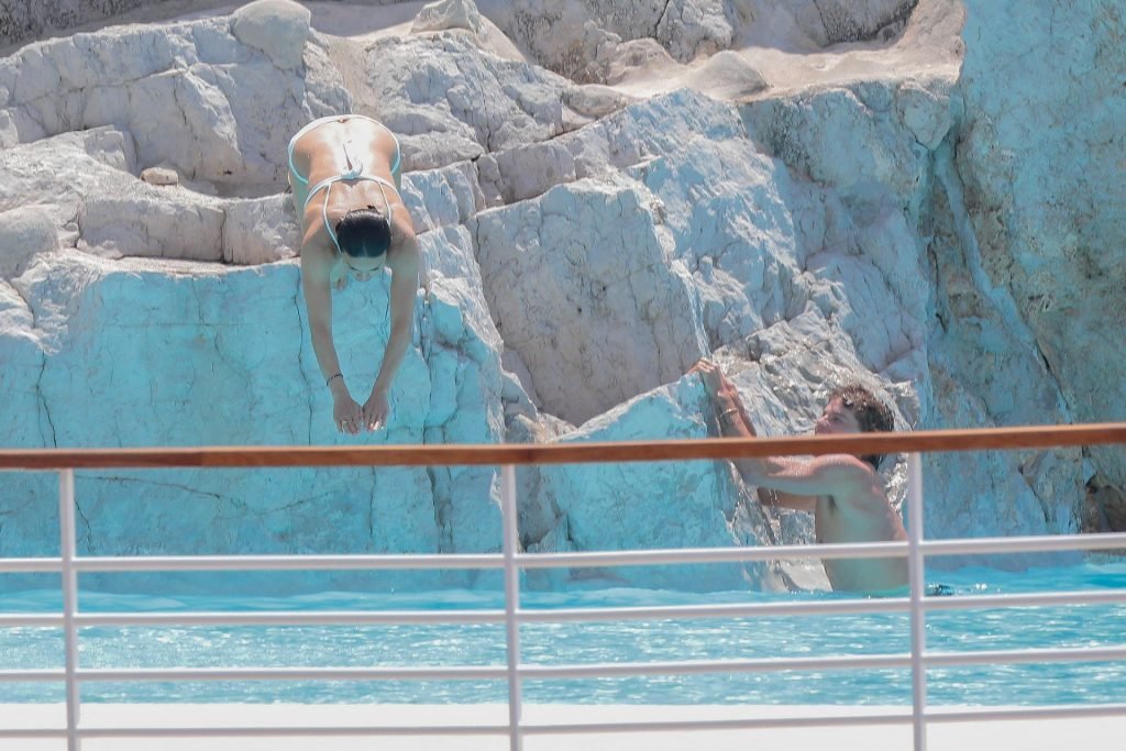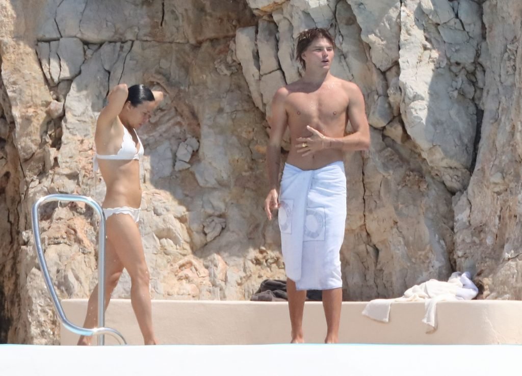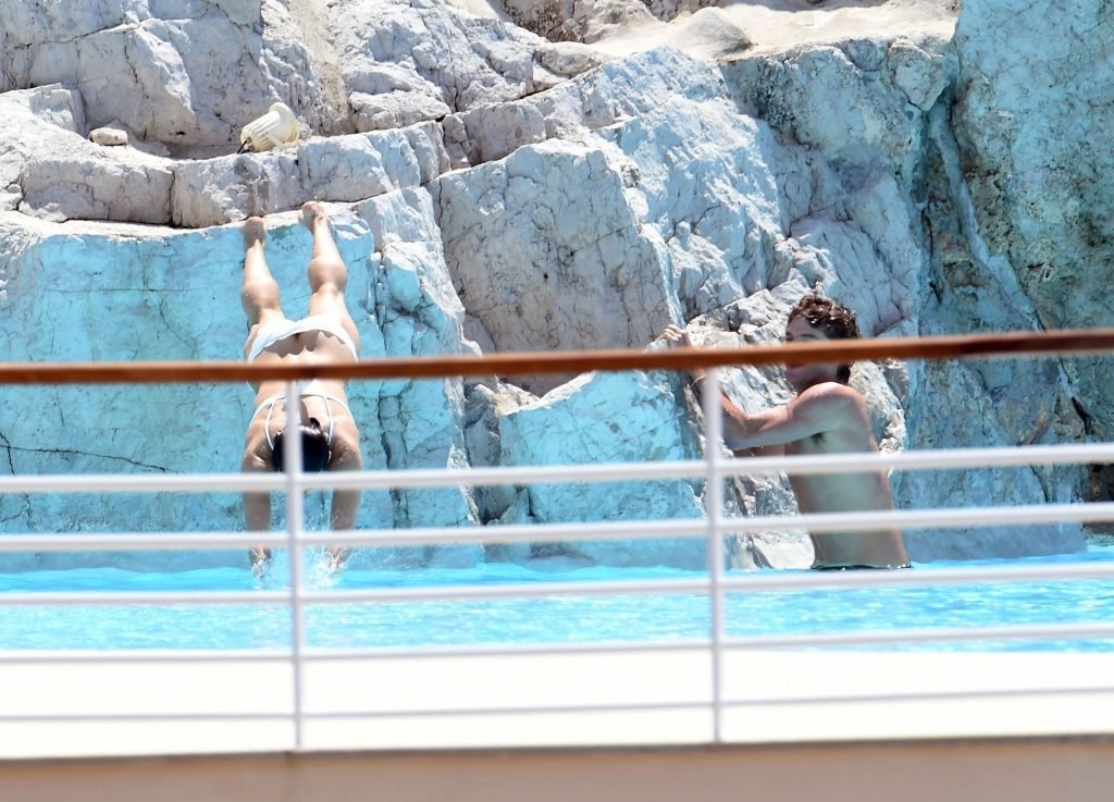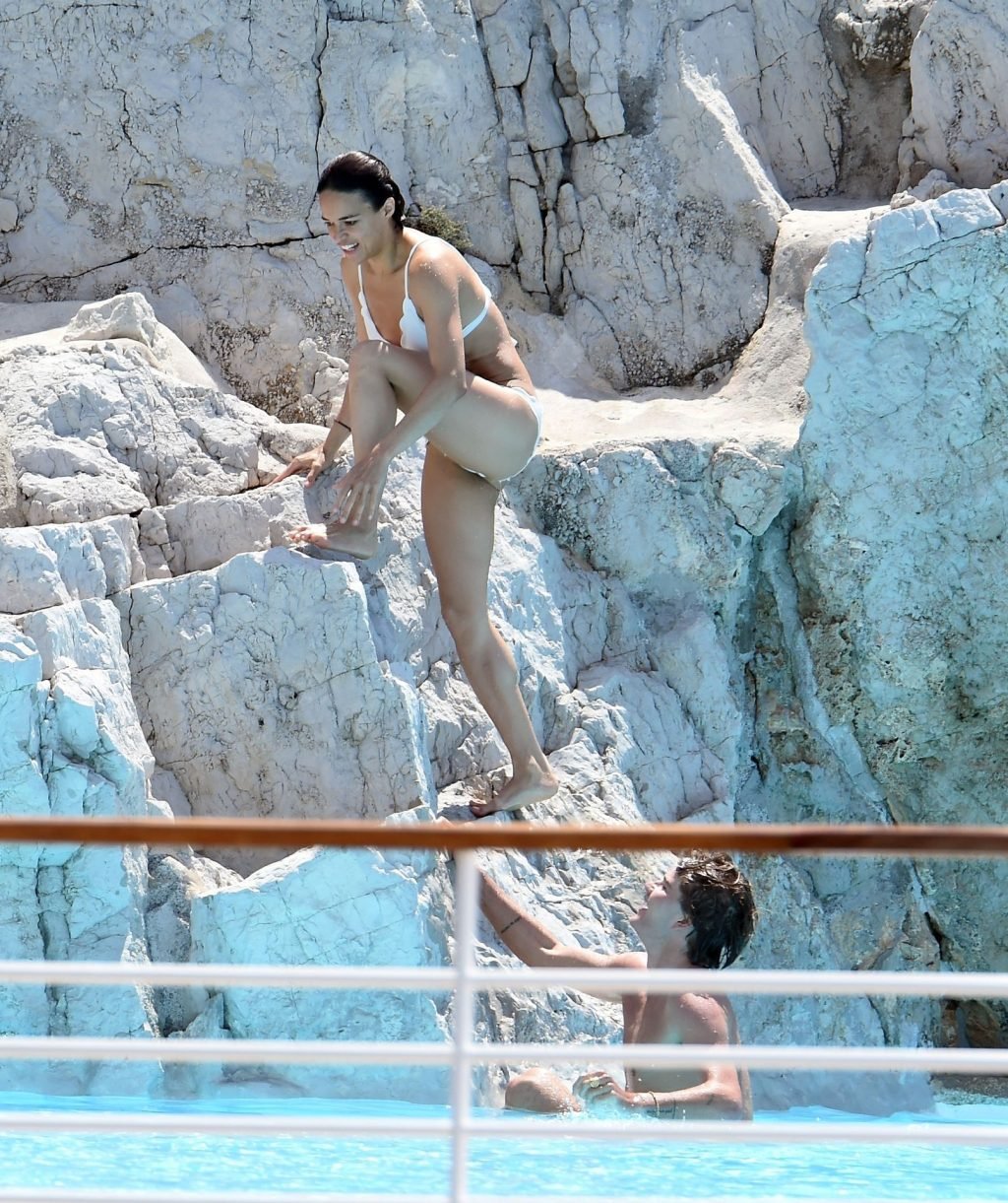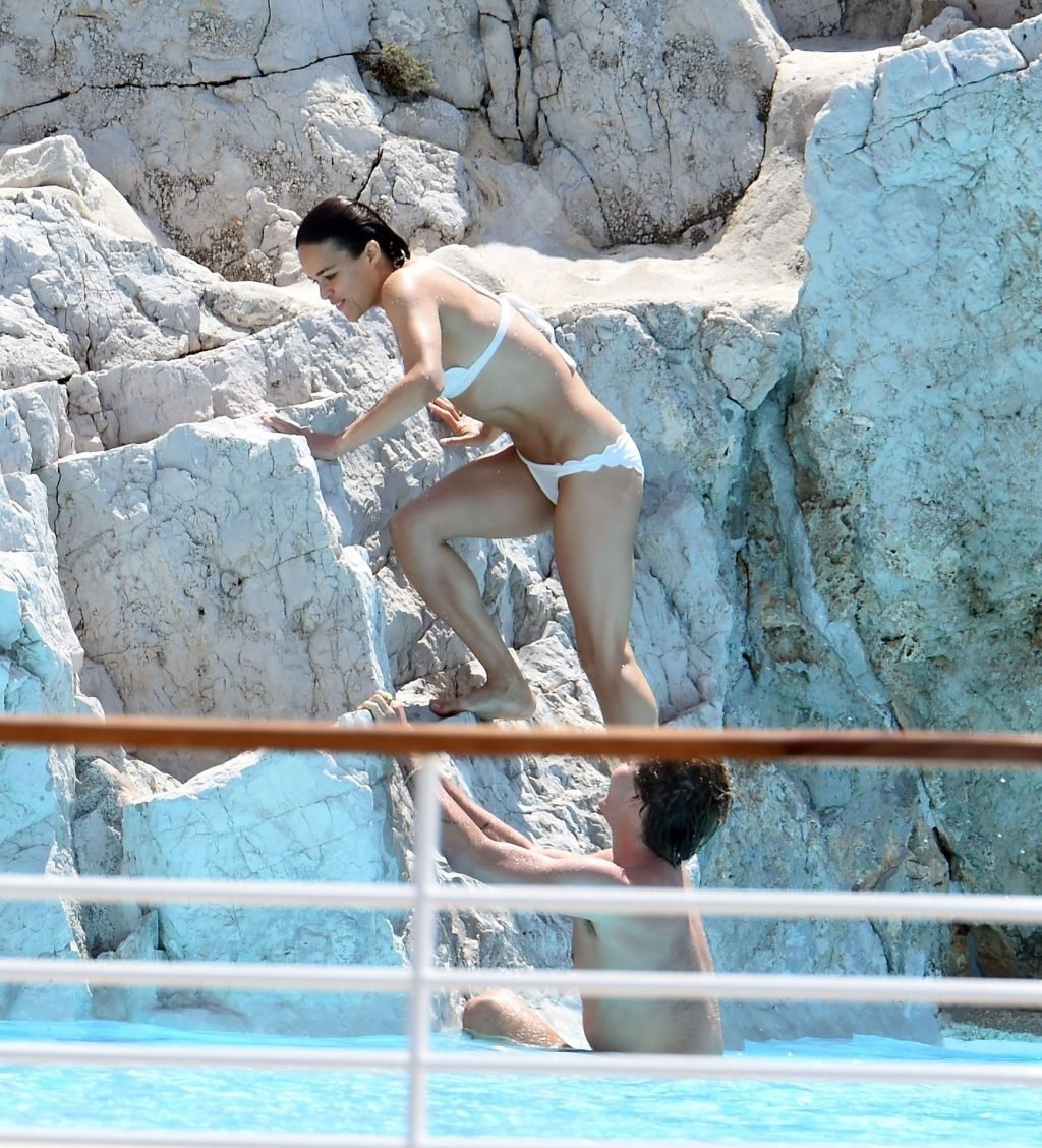 Актриса Мишель Родригес была сфотографирована, демонстрируя свою подтянутую фигуру в бикини, наслаждаясь плаванием с австралийской моделью Джорданом Барреттом в отеле Hotel du Cap-Eden-Roc в Каннах, 22.05.2019.