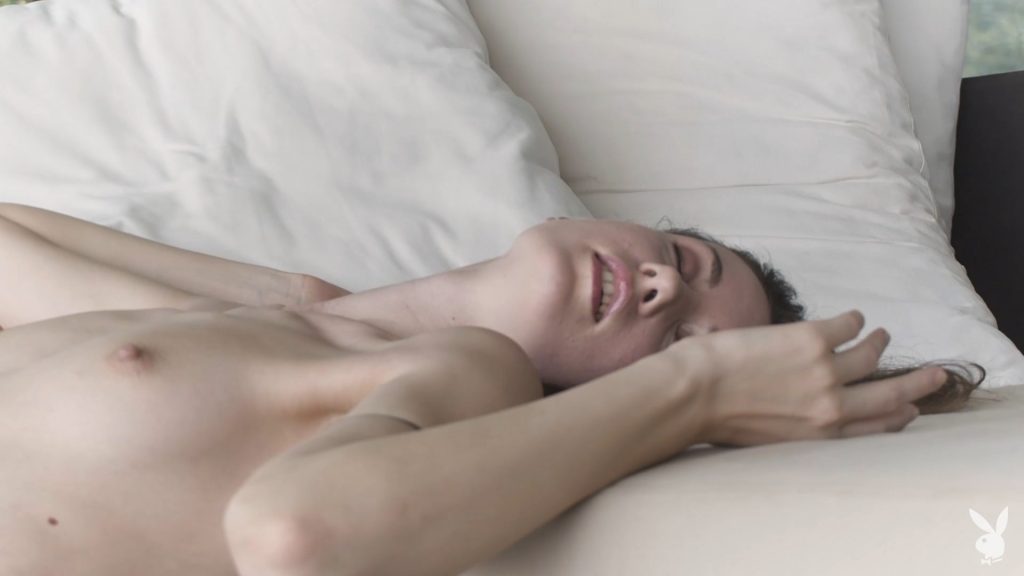 Модель Mikaela McKenna позирует голой в фотосессии для Playboy Plus (2019). Прелестная девушка просыпается на веранде дома и раздевается, показывает стриптиз перед утренним душем! Вы можете увидеть её маленькую грудь и сексуальные ноги. У неё всего одна маленькая татуировка на руке.
