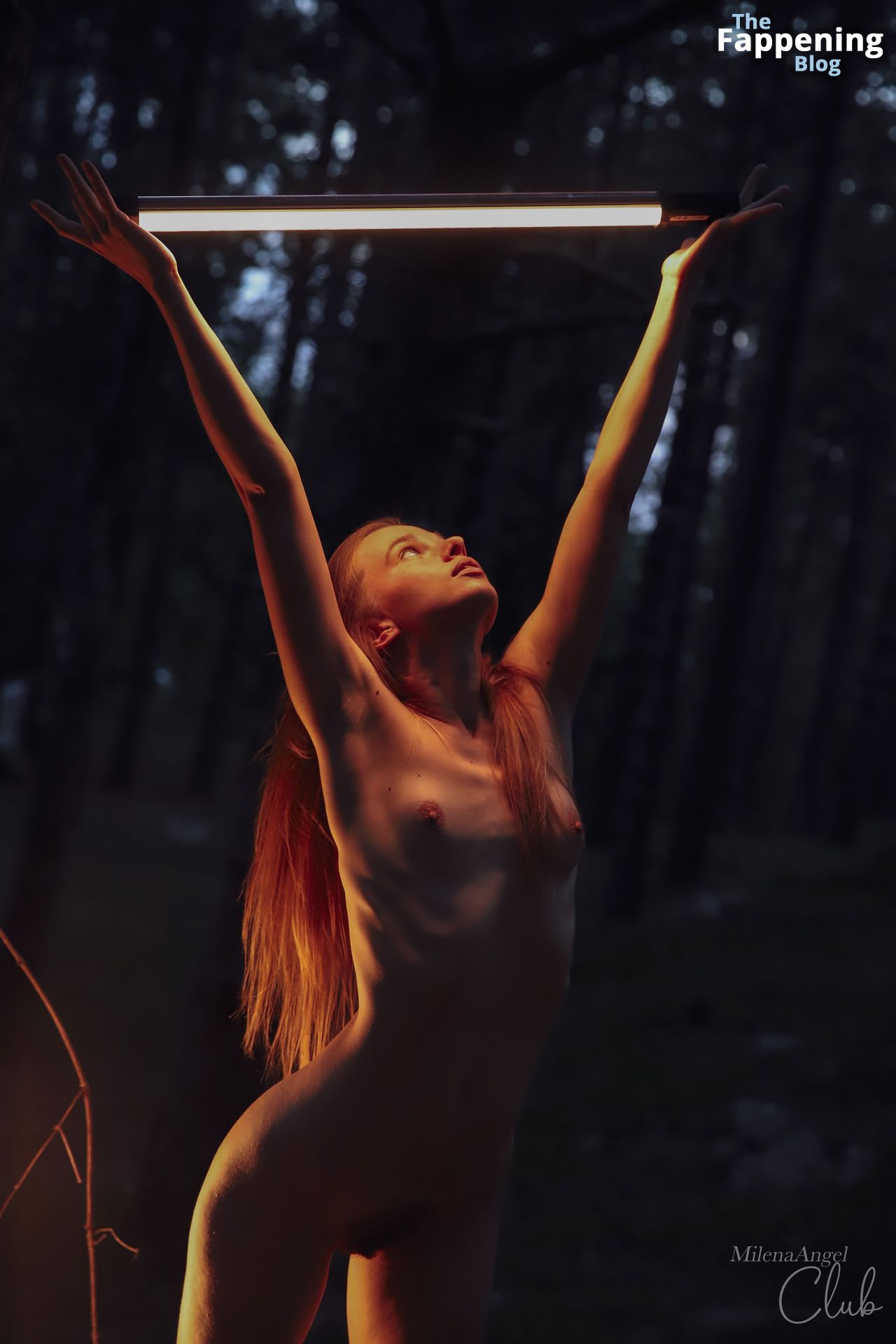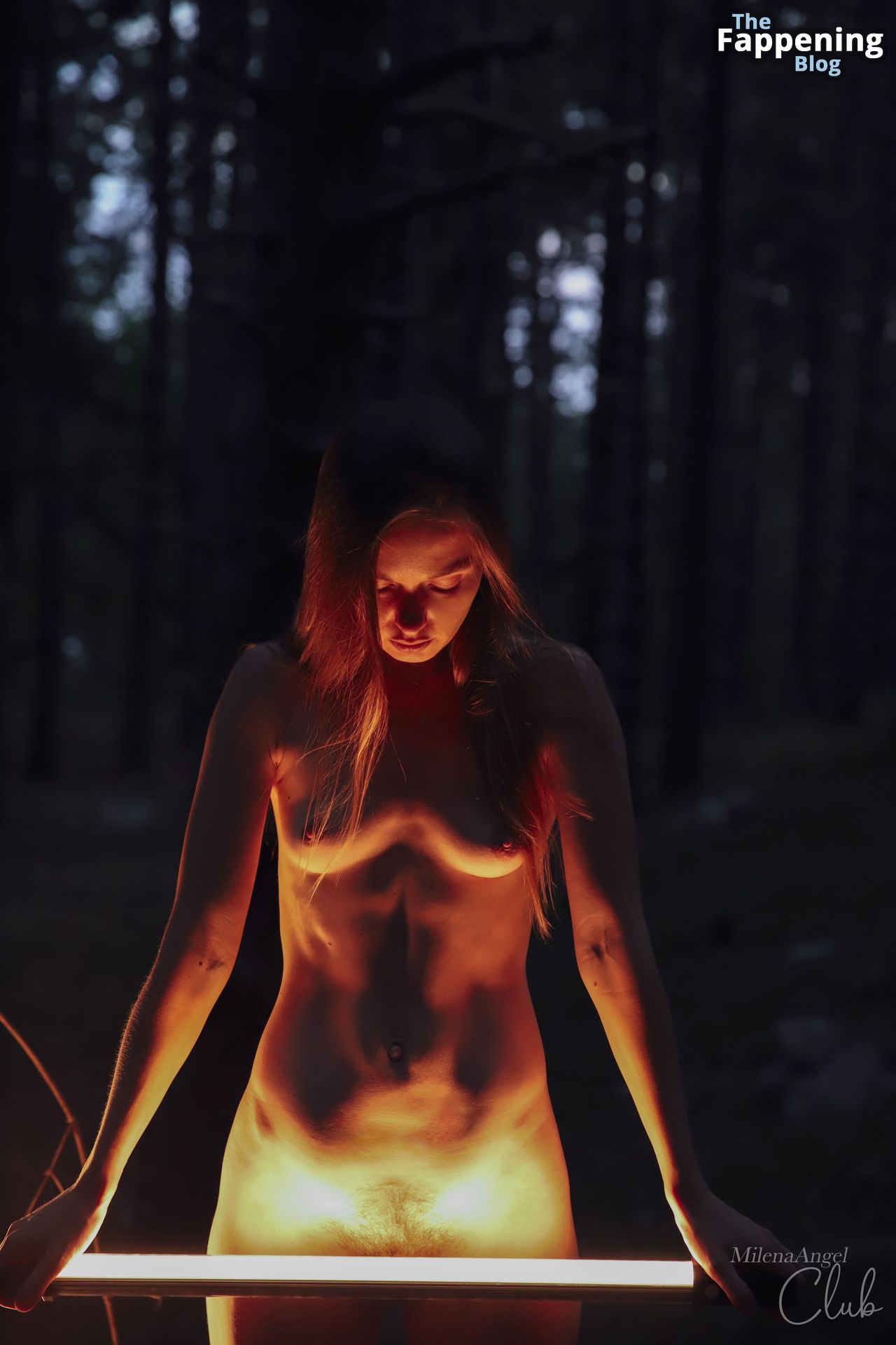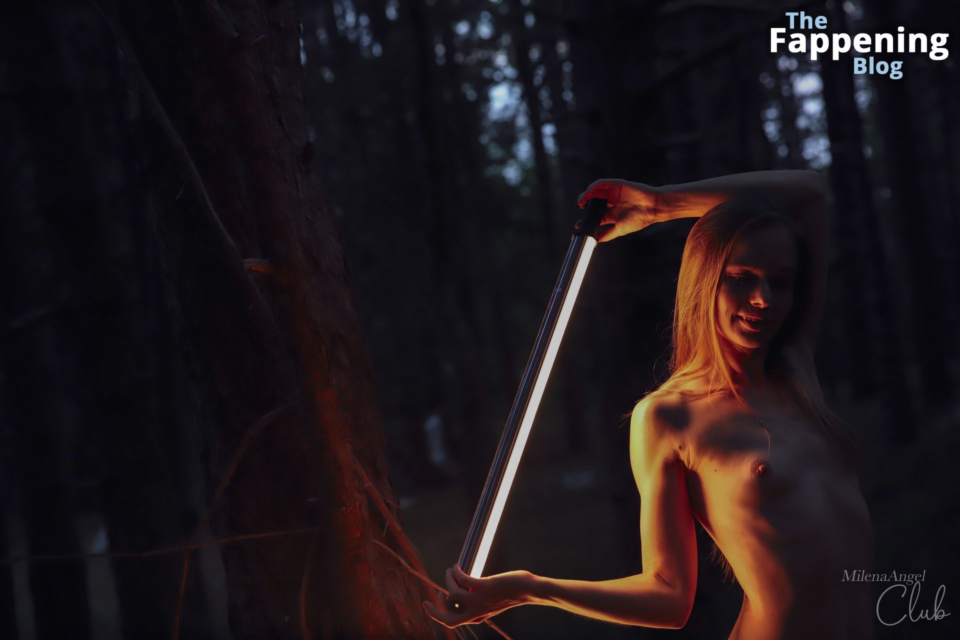 Посмотрите эти крутые фото знаменитой взрослой модели Milena Angel, которая устроила дикий ню-фотосет в лесу! Эти снимки просто огонь, освещение создает атмосферу костра в ночном лесу.