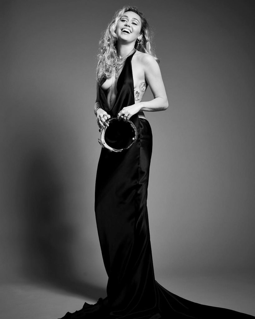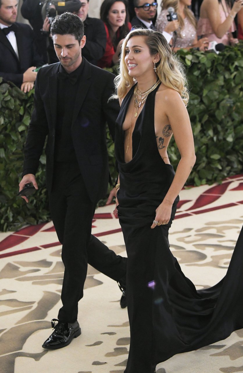 Mайли Сайрус посещает гала-вечер MET Costume Institute в Нью-Йорке, 07.05.2018. 25-летняя певица была в потрясающем черном платье без бюстгальтера.