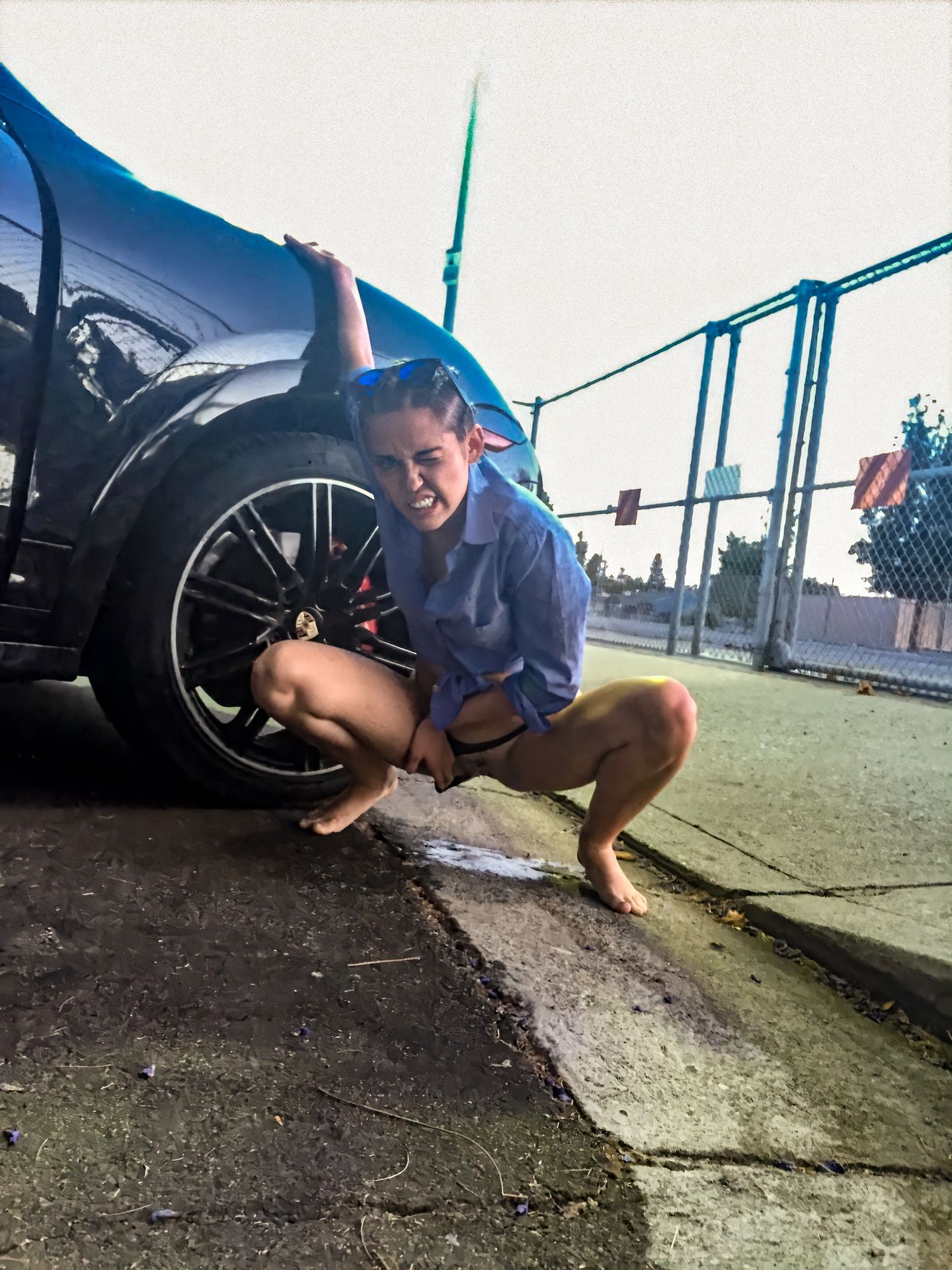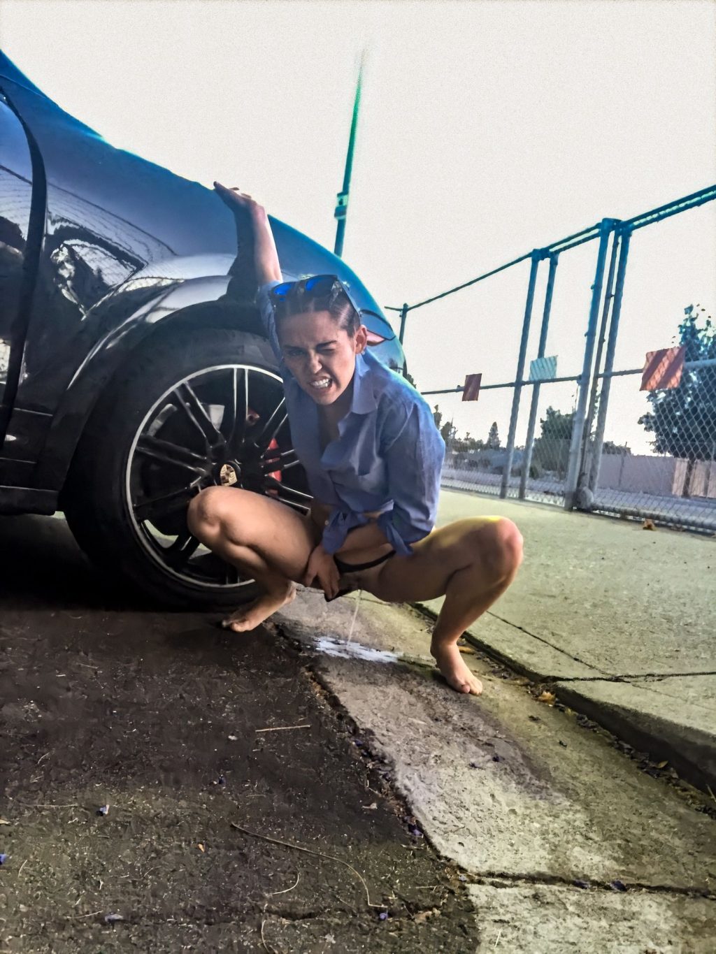 Она такая стильная и утончённая, чтобы пописать рядом с ЕЁ Porsche.