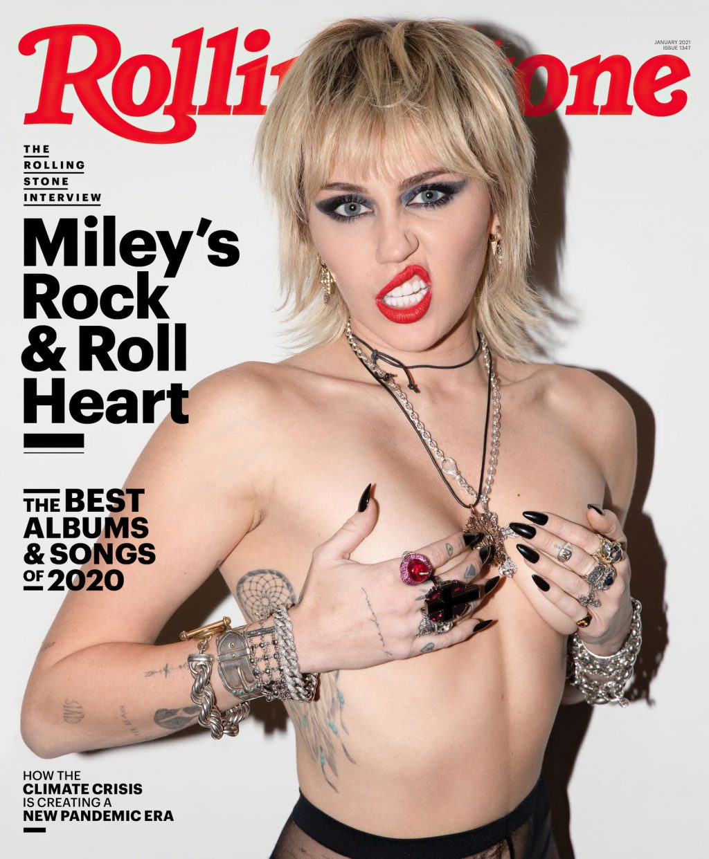 Звезда Fappening и певица Майли Сайрус показывает свои голые груди в фотосессии Брэдом Элтерманом для нового январского выпуска журнала Rolling Stone 2021 года. Она не забыла о фанатах!