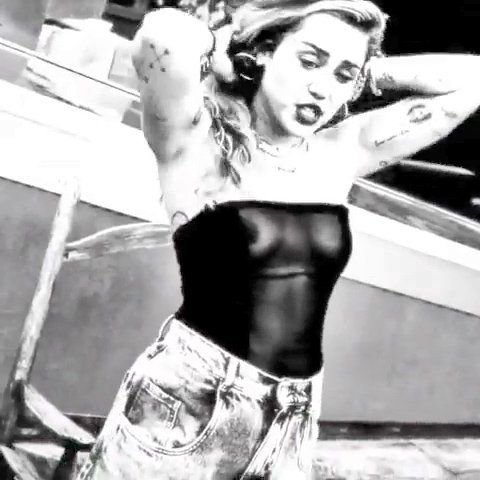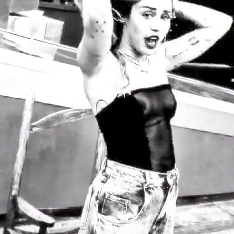 Певица и звезда The Fappening Майли Сайрус показывает свои сиськи в черно-белом видео #WhyAreYouGagging от Эллен фон Унверт из Instagram, 28.02.2019.