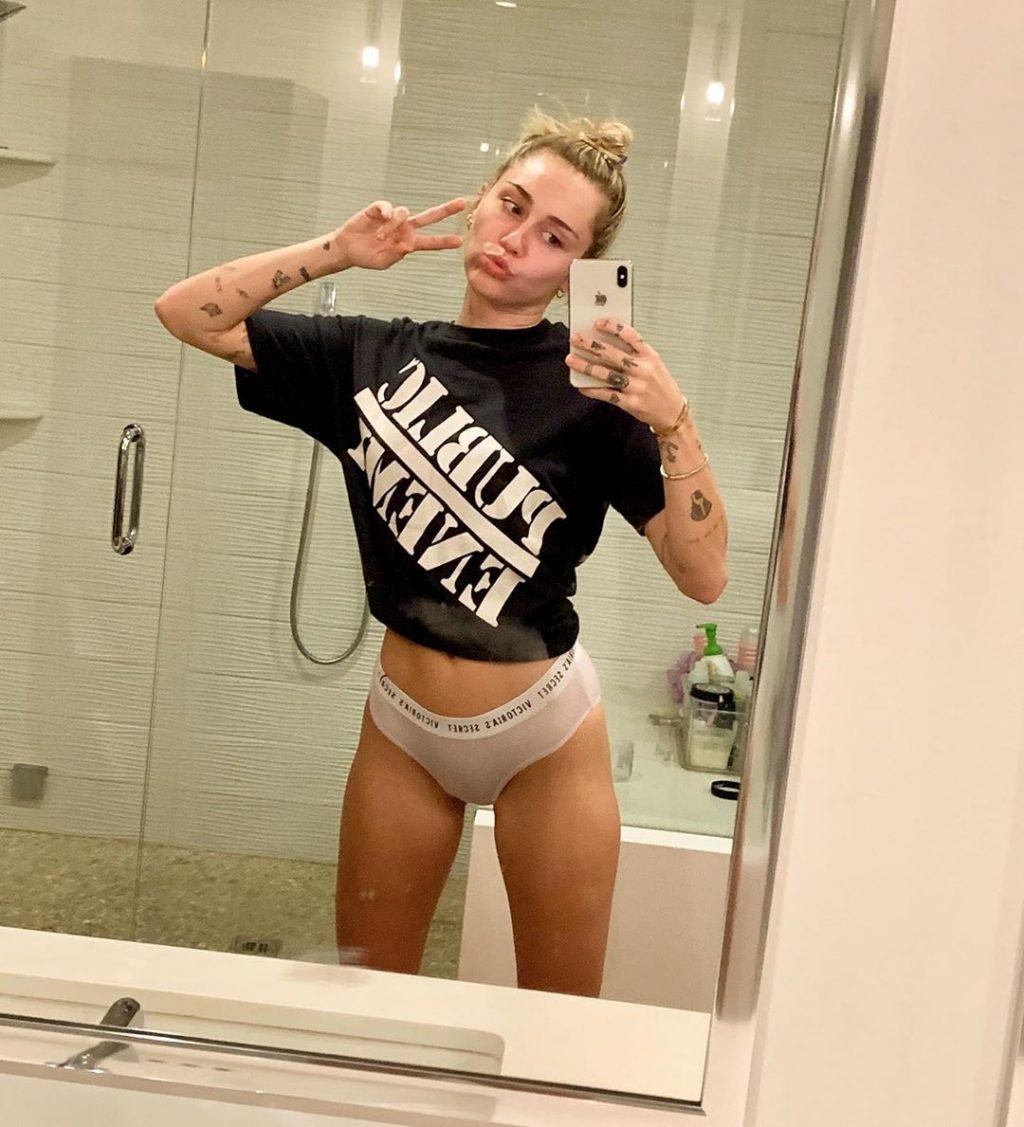 Посмотрите последние слегка обнажённые и сексуальные фотографии Майли Сайрус из Instagram (октябрь 2019). Известная певица и звезда Fappening продемонстрировала свои груди, позируя в прозрачном белом топе. Также она сделала несколько снимков в нижнем белье и с гитарой.