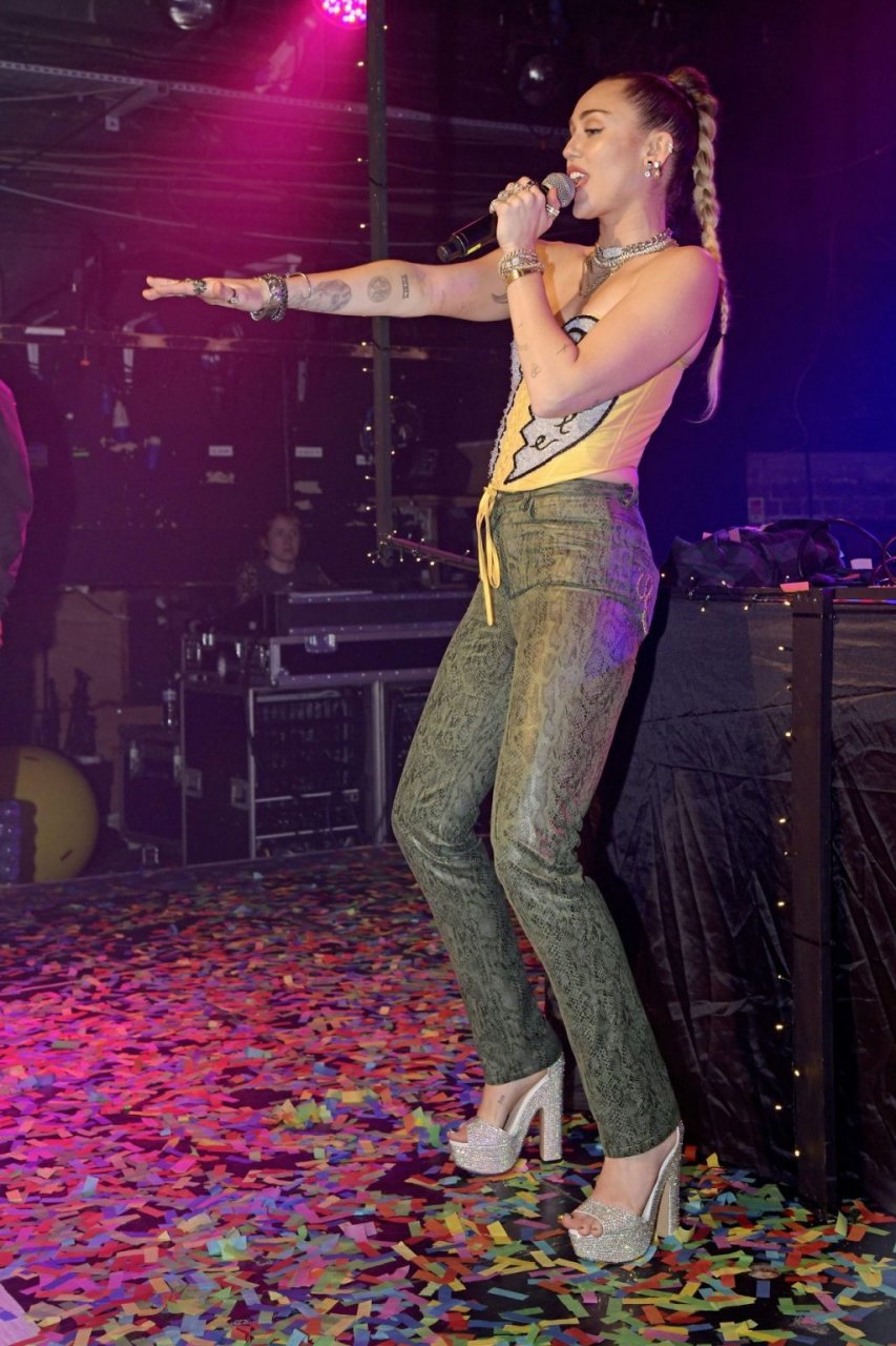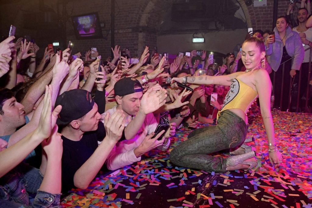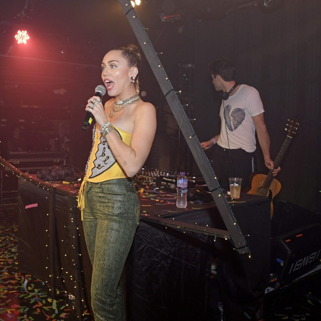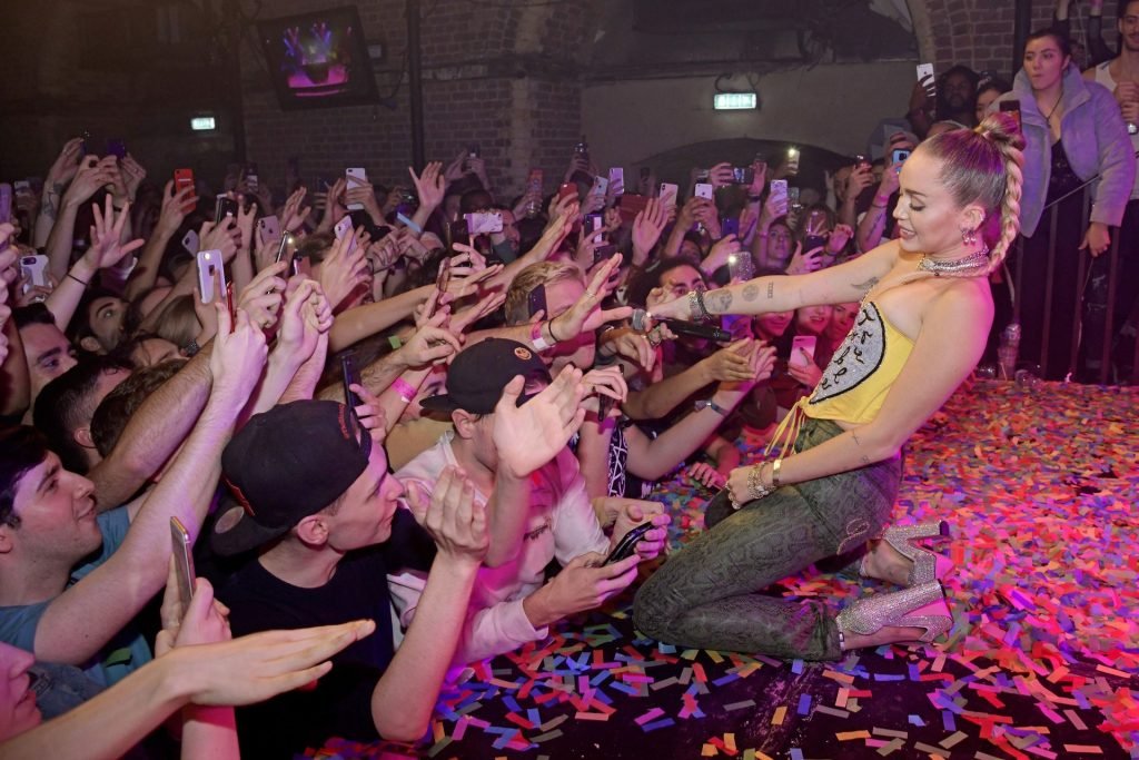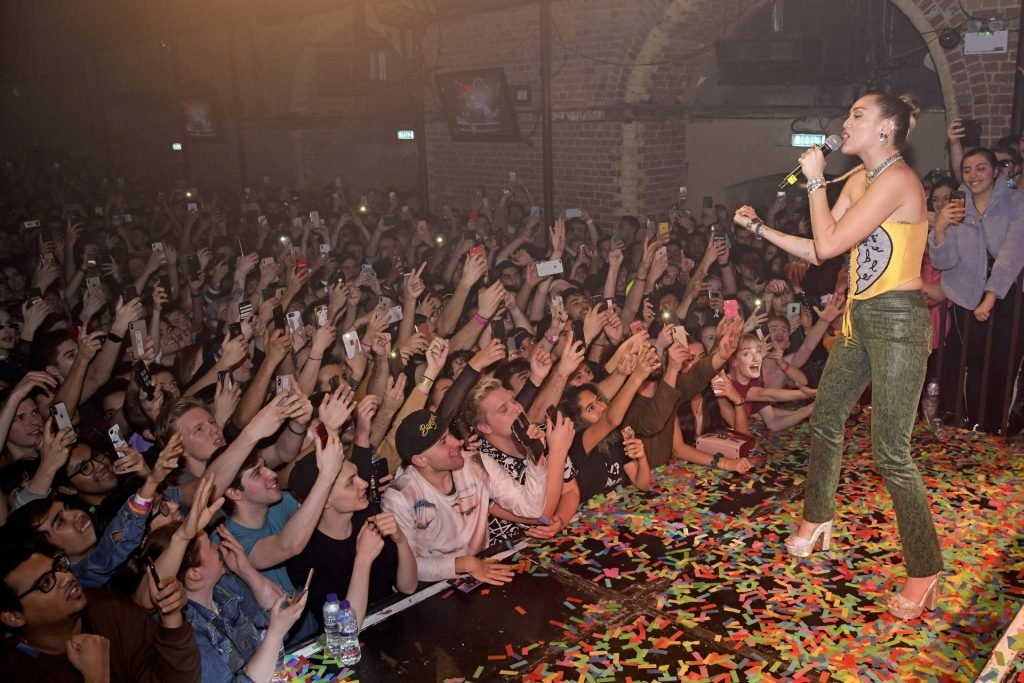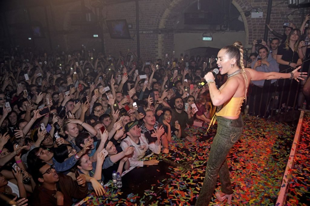Певица Майли Сайрус (26) выступает вживую с новым синглом «Nothing Breaks Like a Heart» в ночном клубе G-A-Y в Лондоне, 12/07/2018.