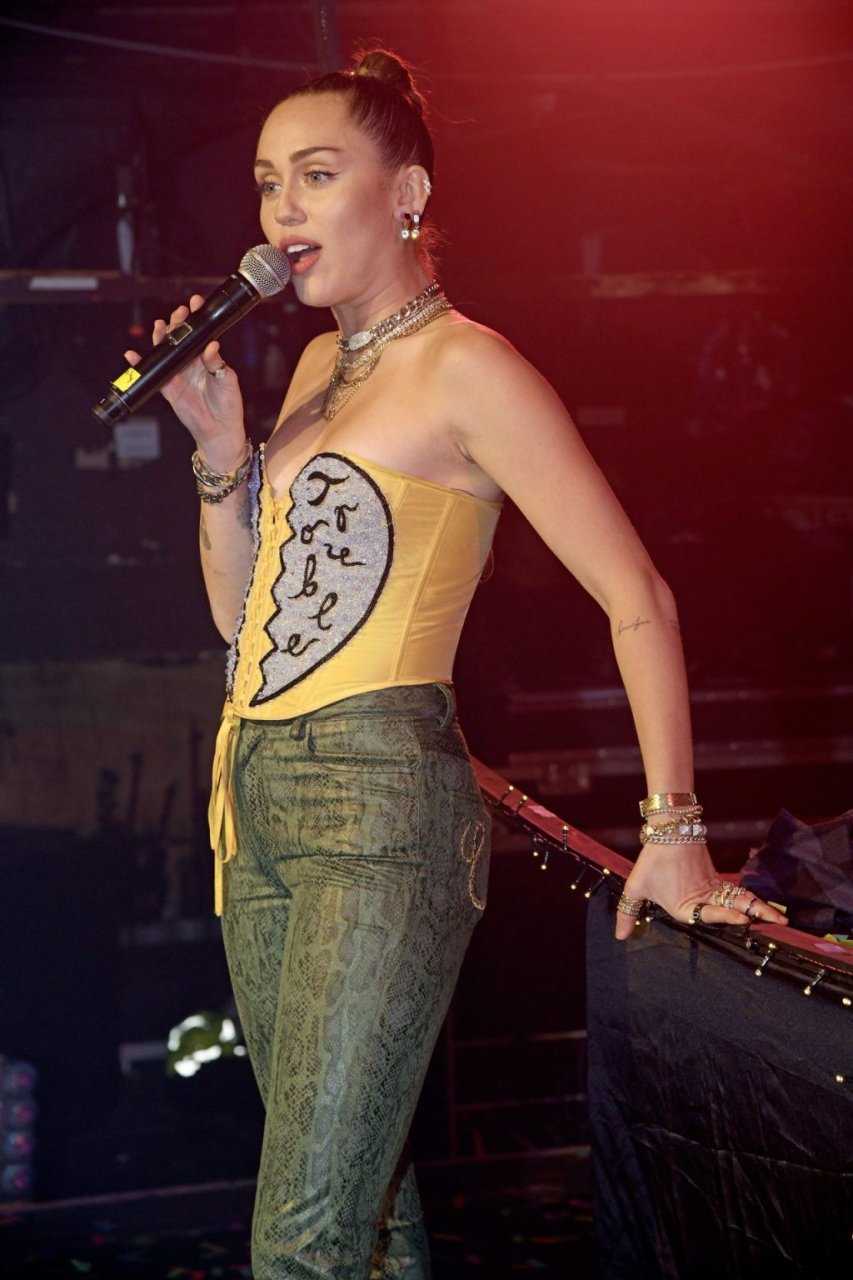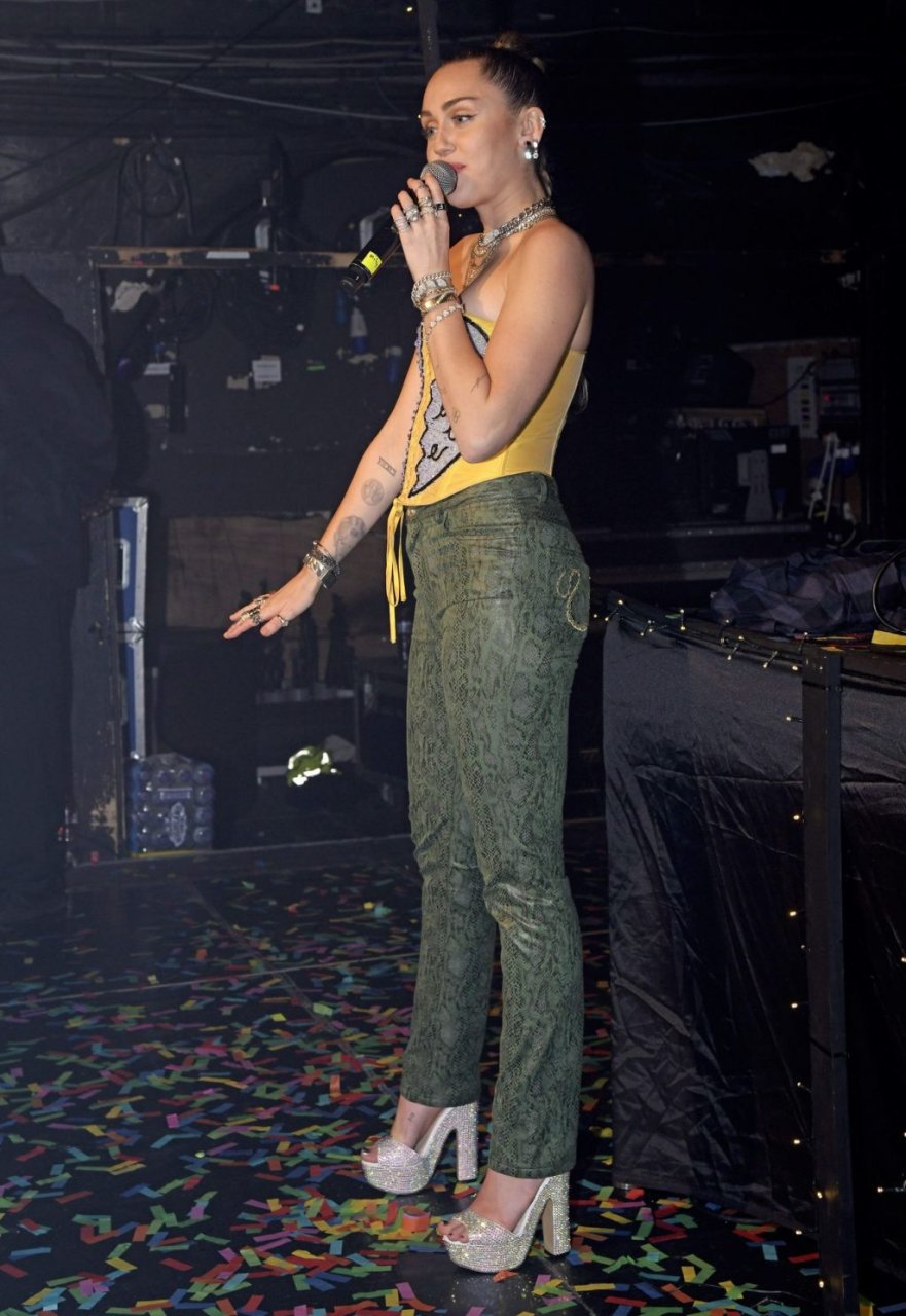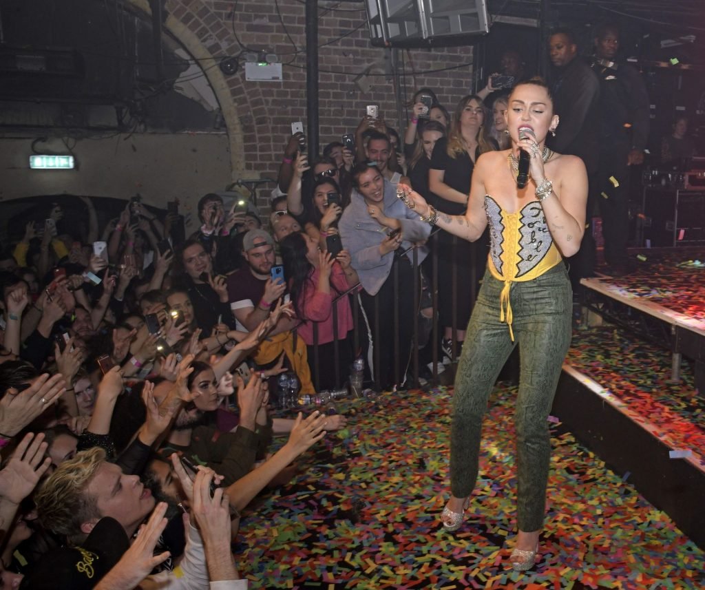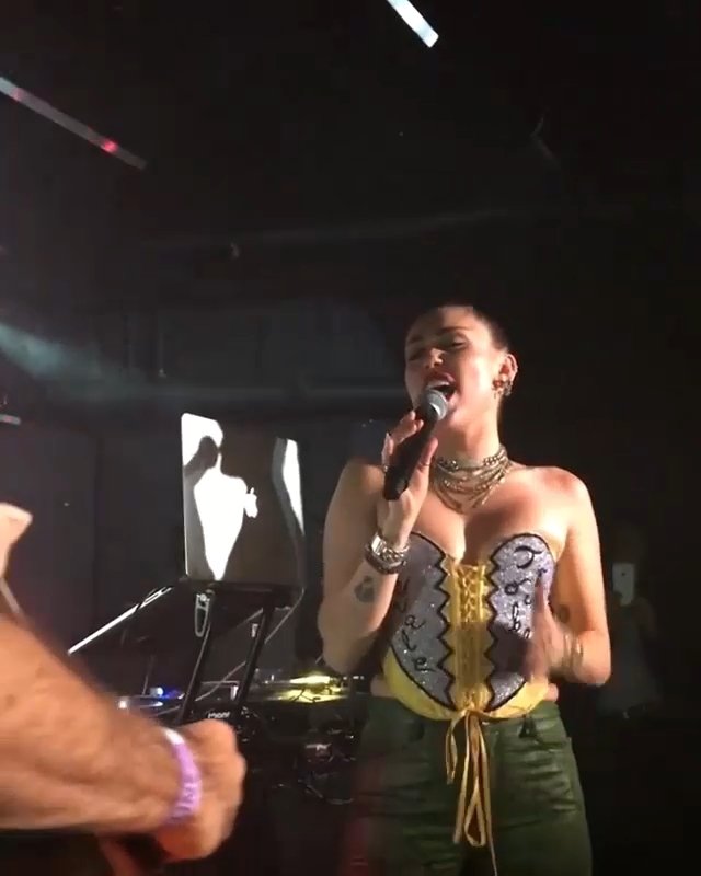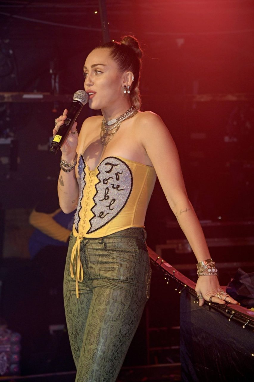Певица Майли Сайрус (26) выступает вживую с новым синглом «Nothing Breaks Like a Heart» в ночном клубе G-A-Y в Лондоне, 12/07/2018.