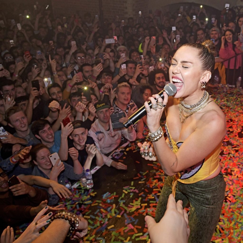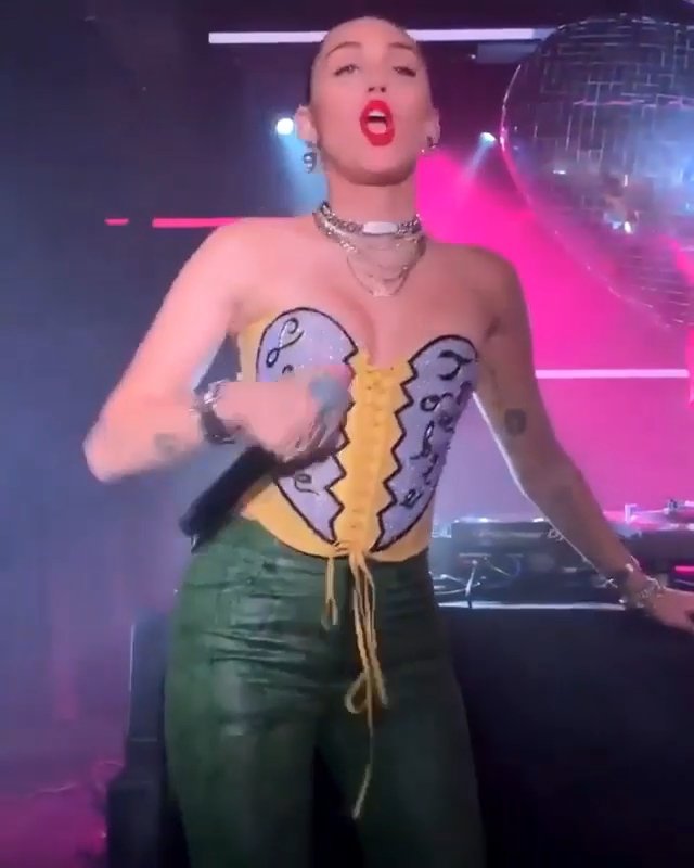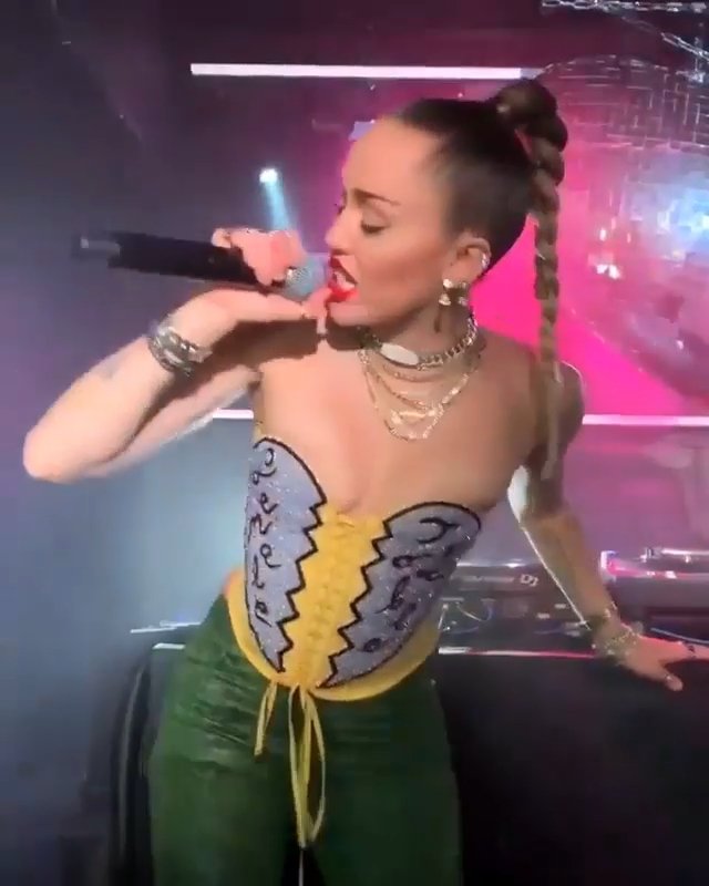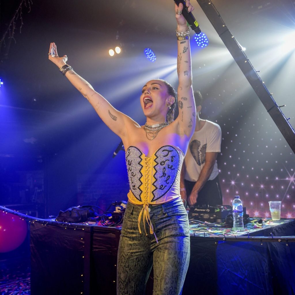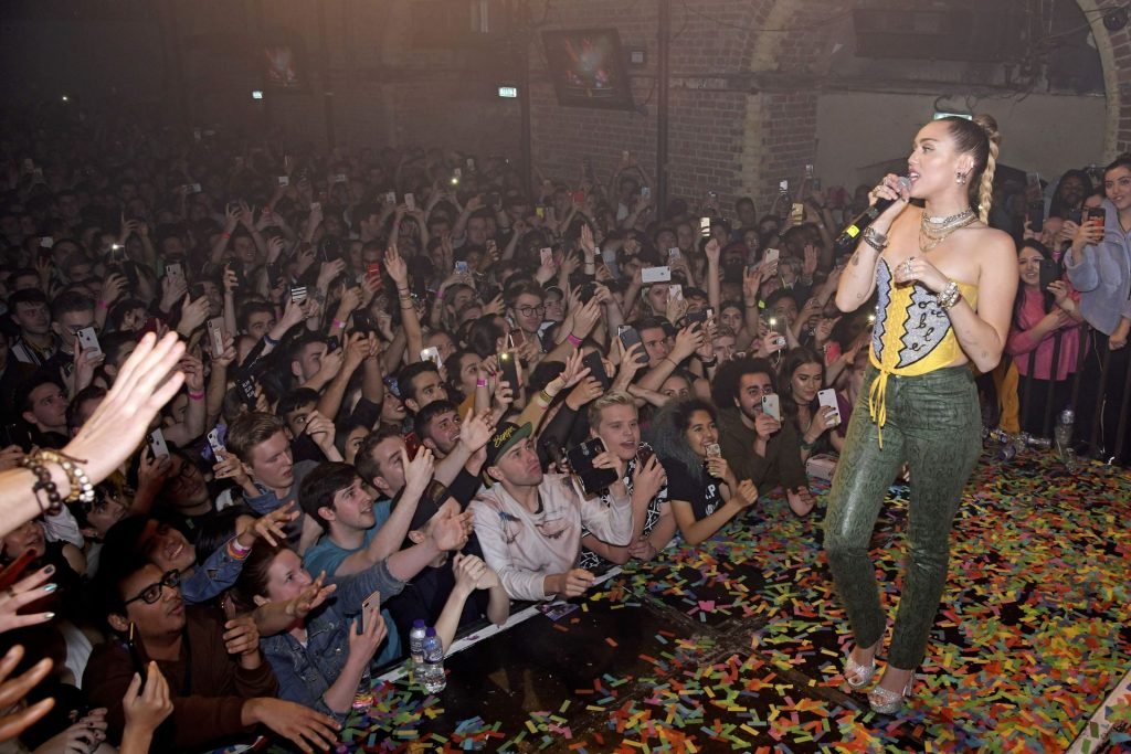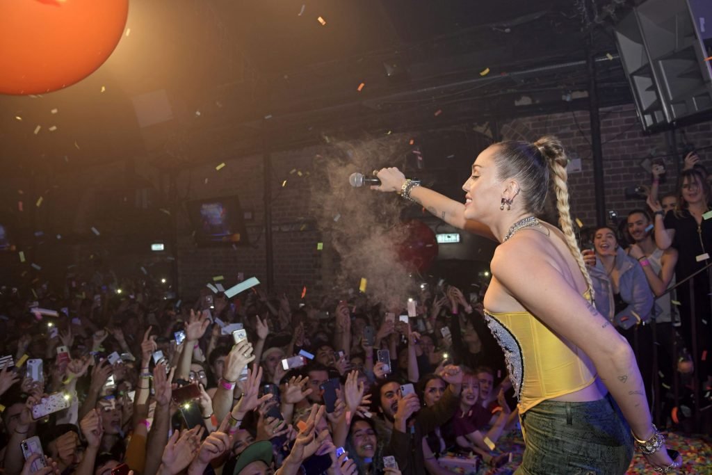 Певица Майли Сайрус (26) выступает вживую с новым синглом «Nothing Breaks Like a Heart» в ночном клубе G-A-Y в Лондоне, 12/07/2018.