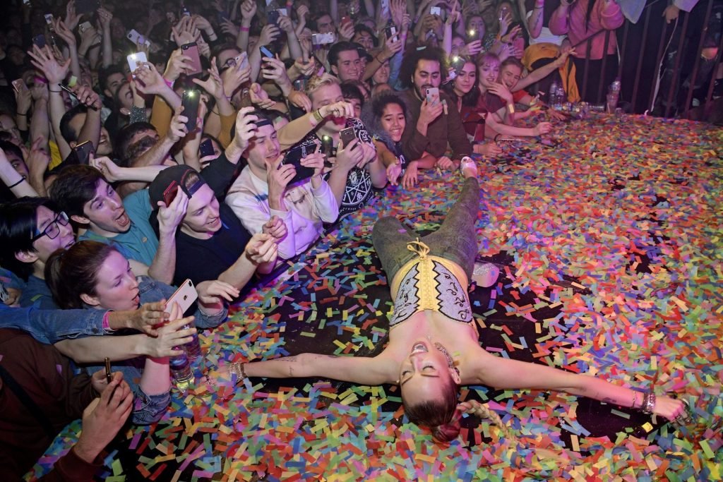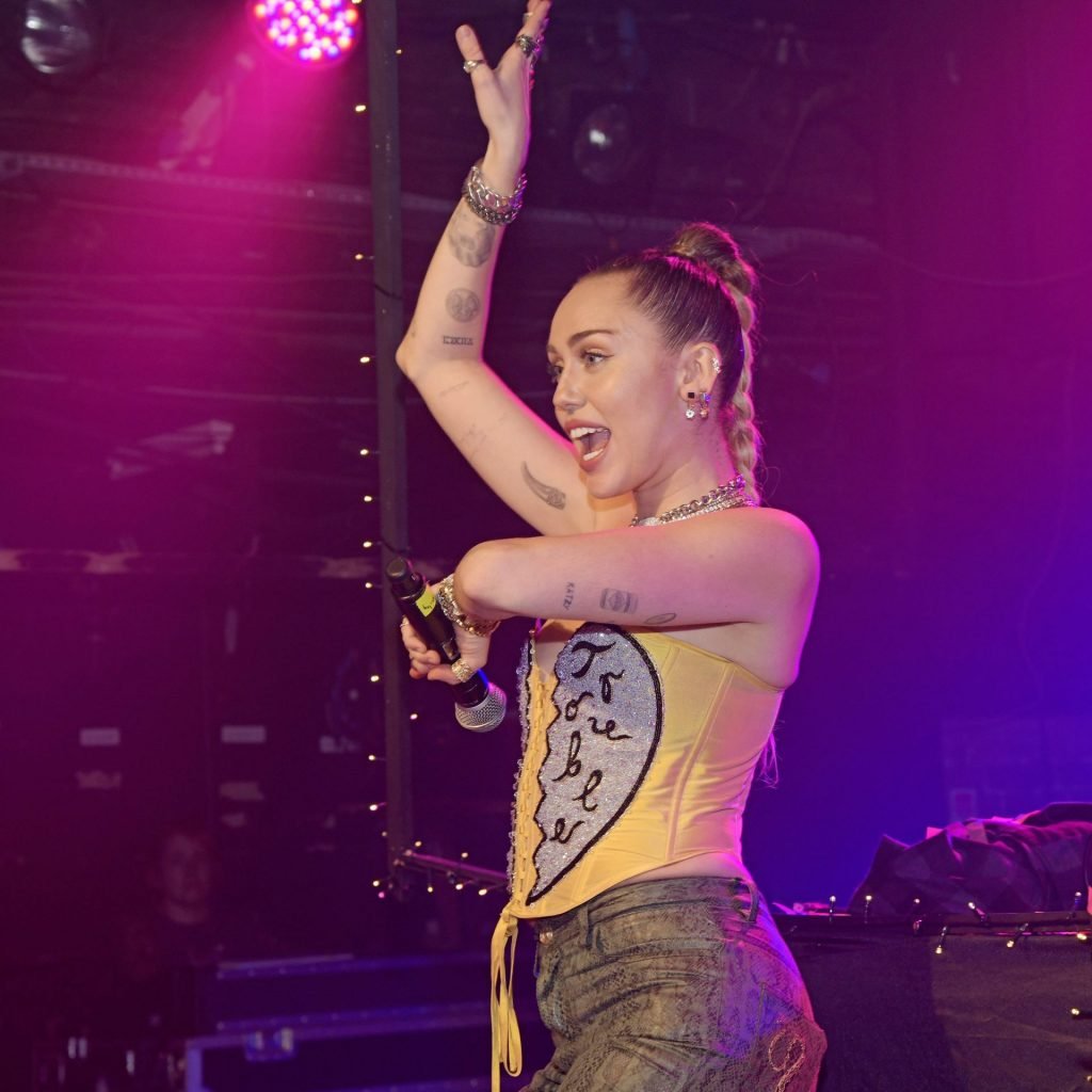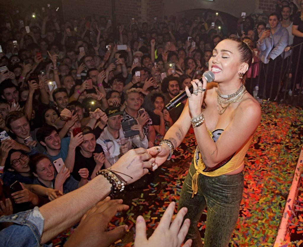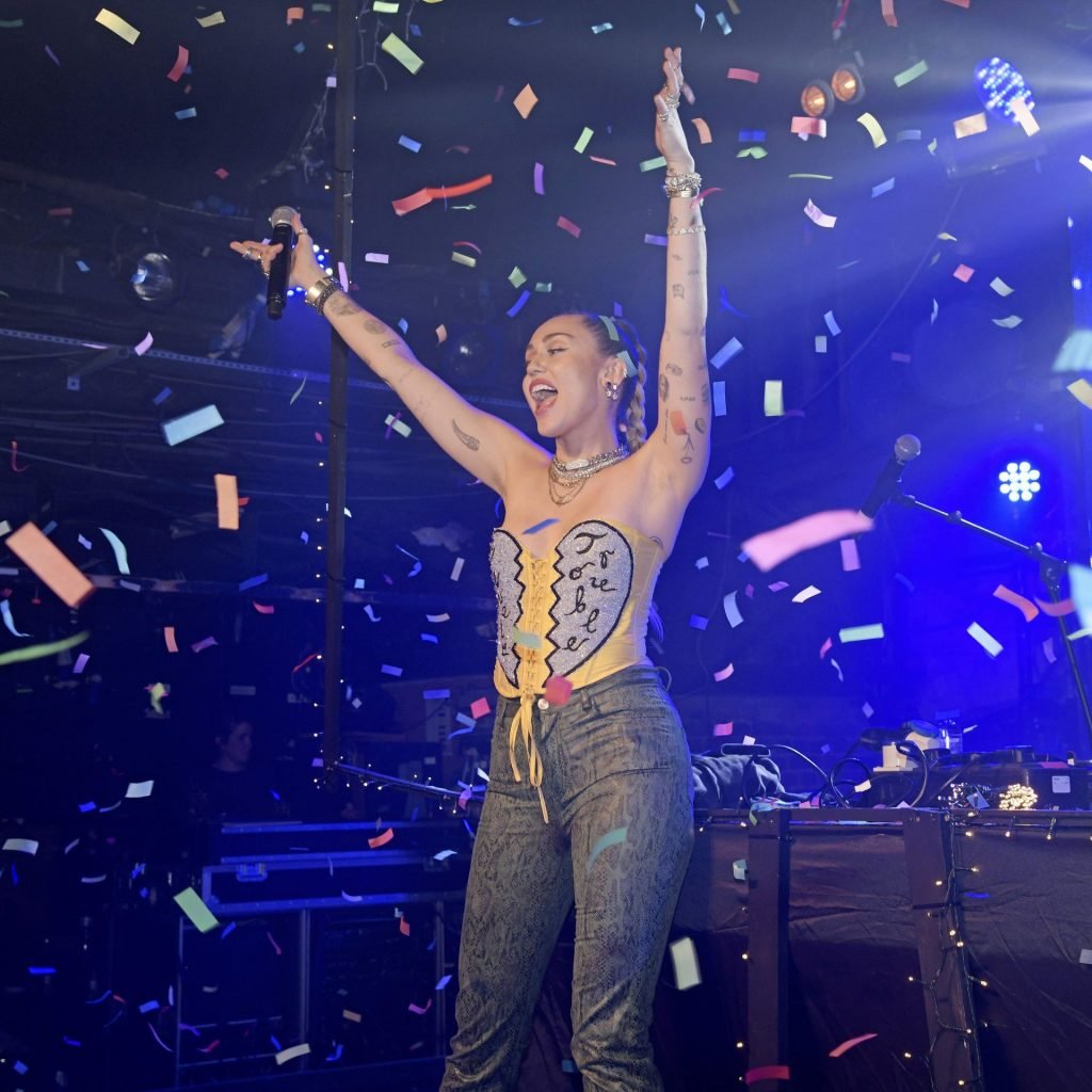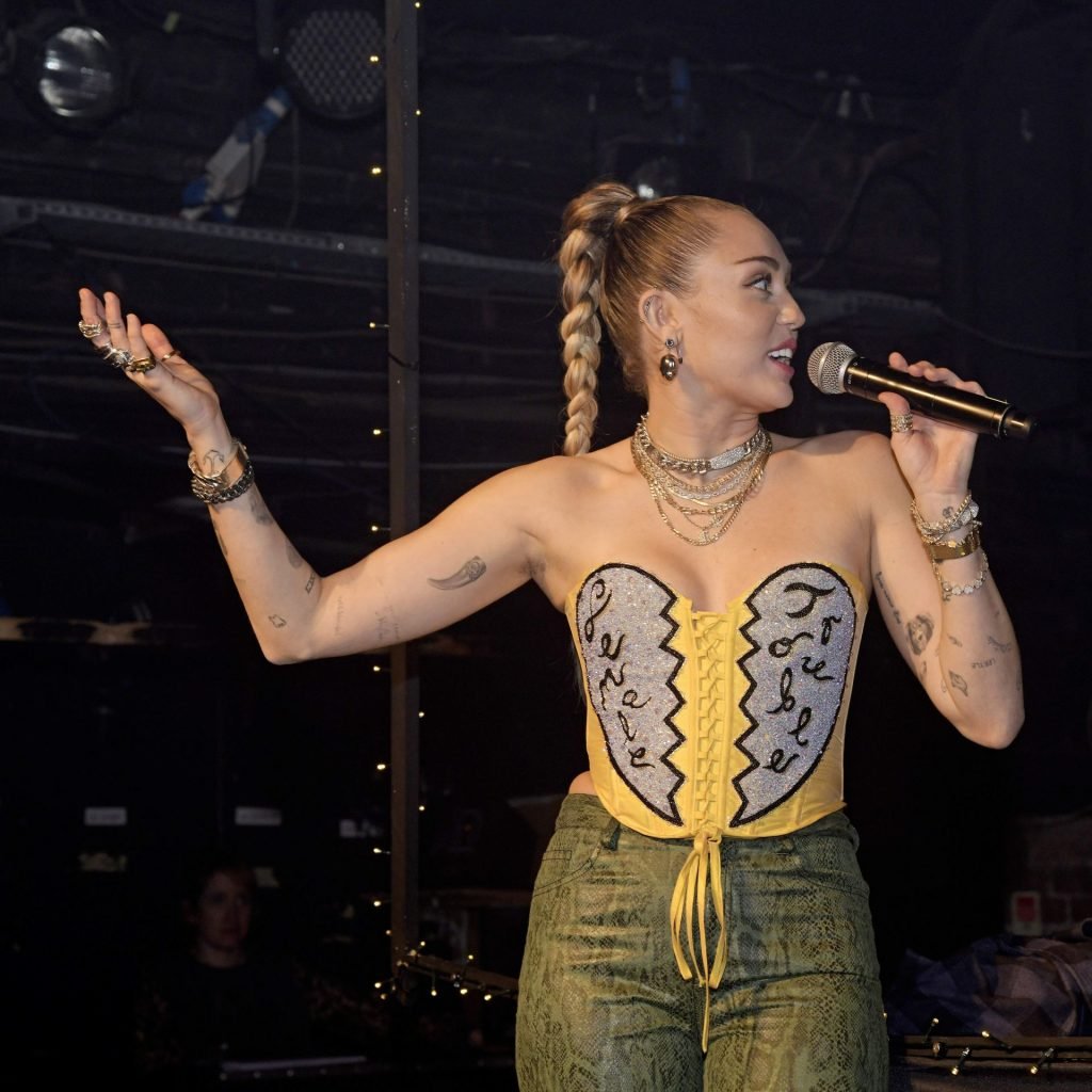 Певица Майли Сайрус (26) выступает вживую с новым синглом «Nothing Breaks Like a Heart» в ночном клубе G-A-Y в Лондоне, 12/07/2018.