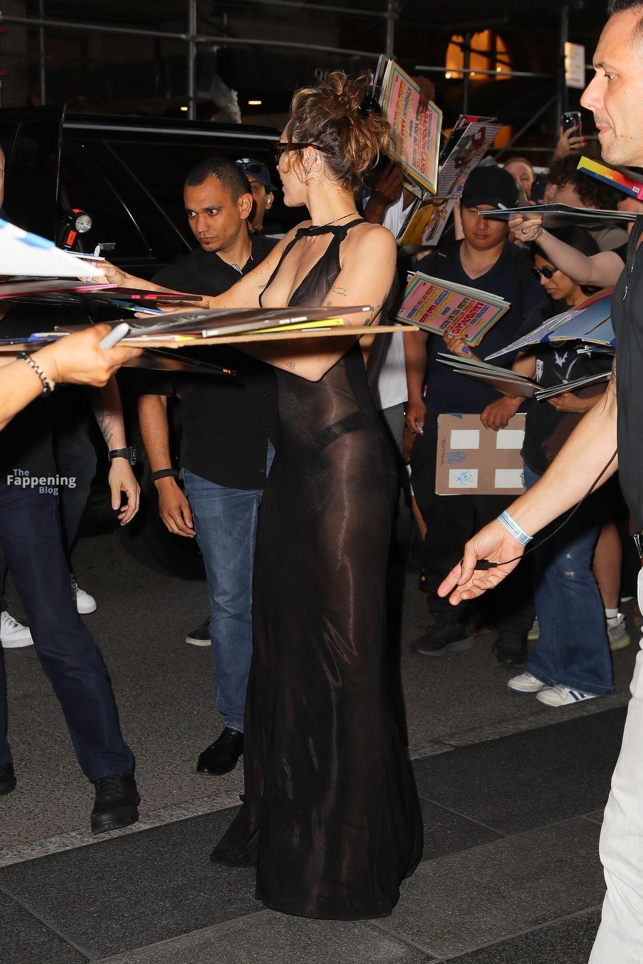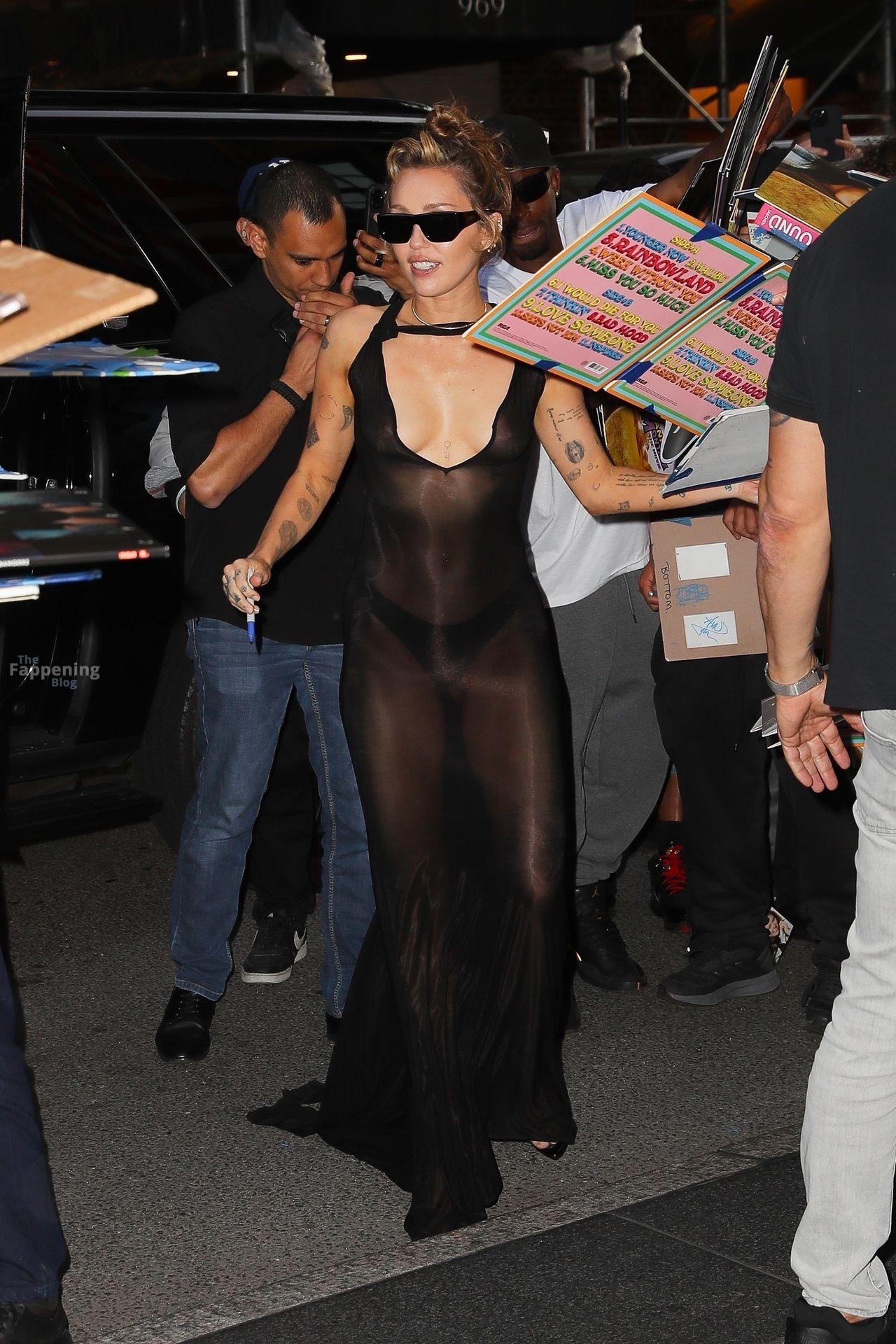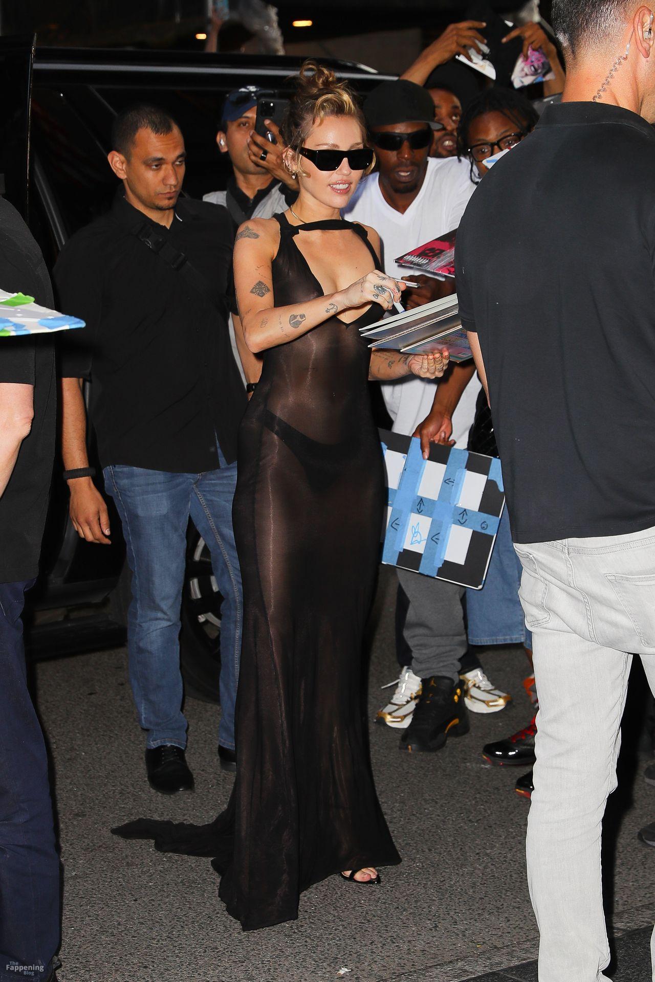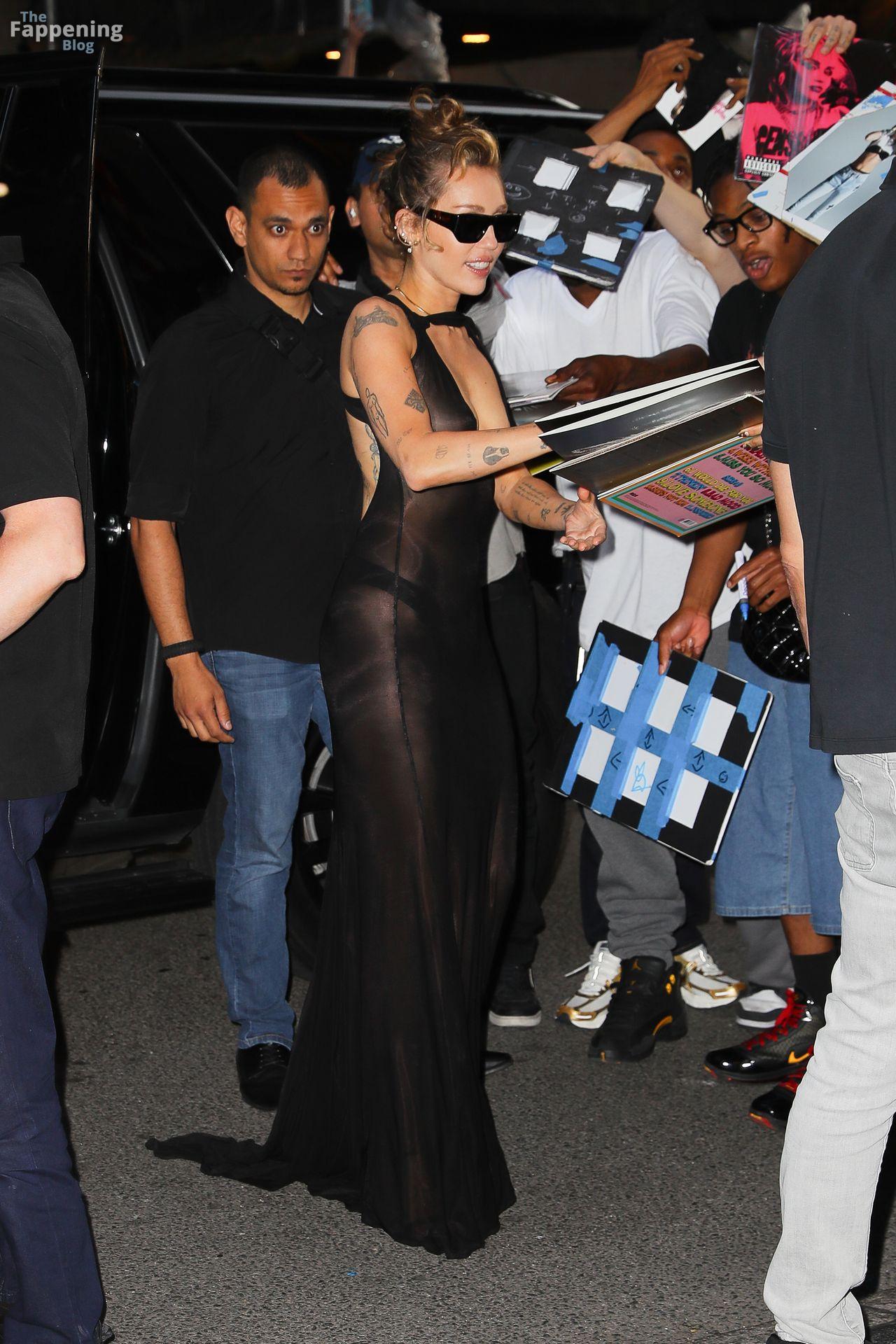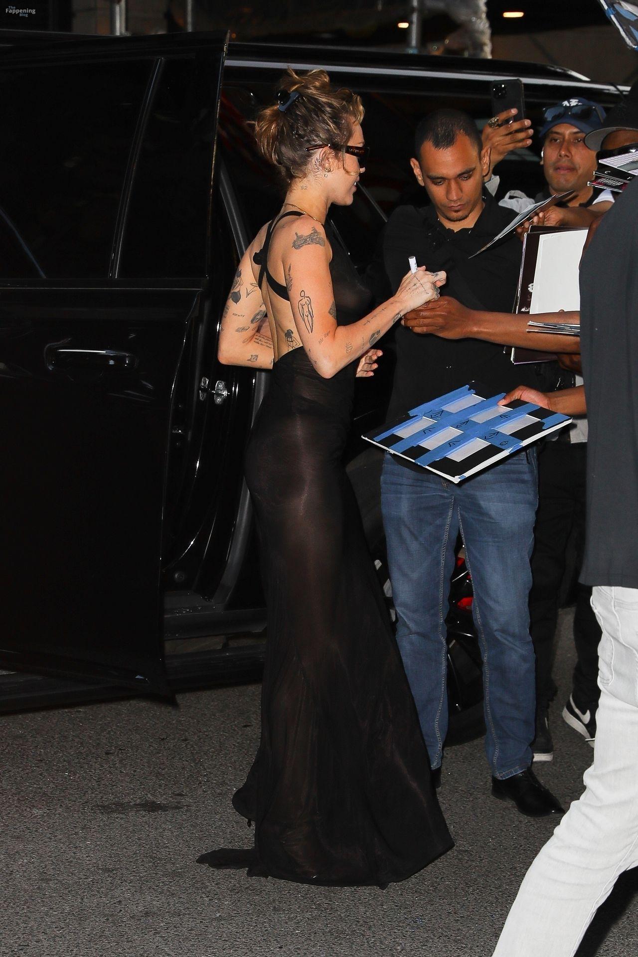 Майли Сайрус замечена возвращающейся в свой отель в смелом прозрачном чёрном платье после её захватывающего выступления в Rough Trade Below в Нью-Йорке.