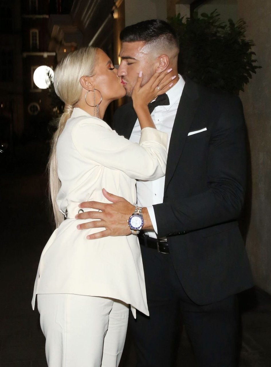 Molly-Mae Hague и Tommy Fury здесь демонстрируют очень нежные чувства после вечеринки Love Island aftersun, возвращаясь в свой лондонский отель, целуясь и любовно держась за руки, 08/04/2019.