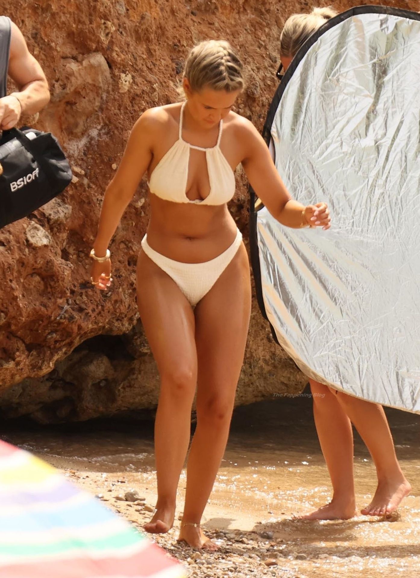 Английская модель источала сексуальную привлекательность, надев скудный белый купальник и показывая все свои сексуальные и соблазнительные изгибы во время съемки.