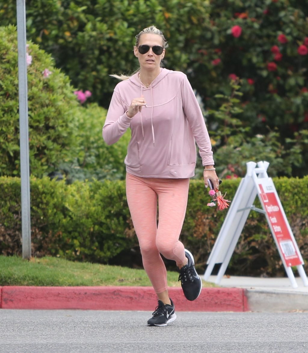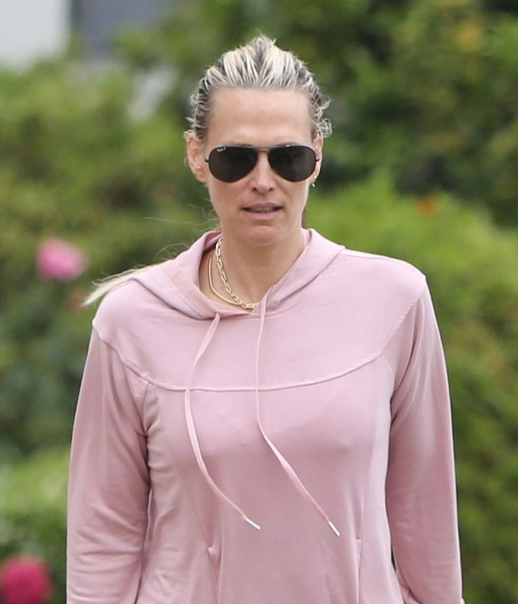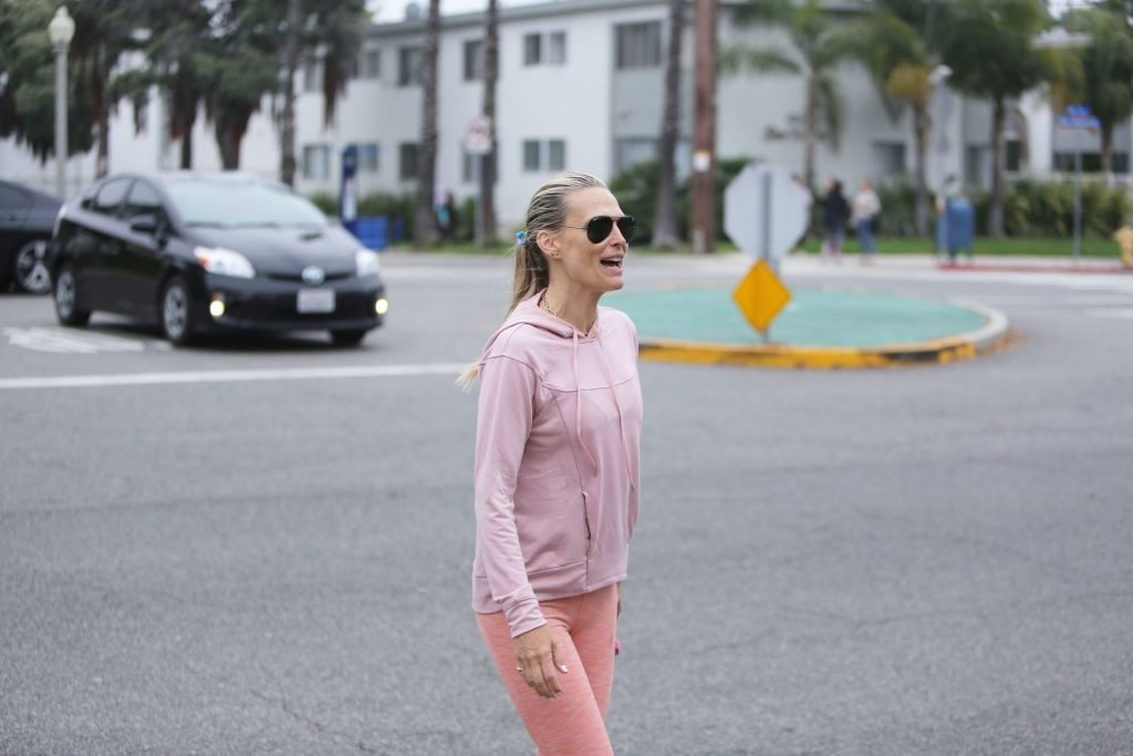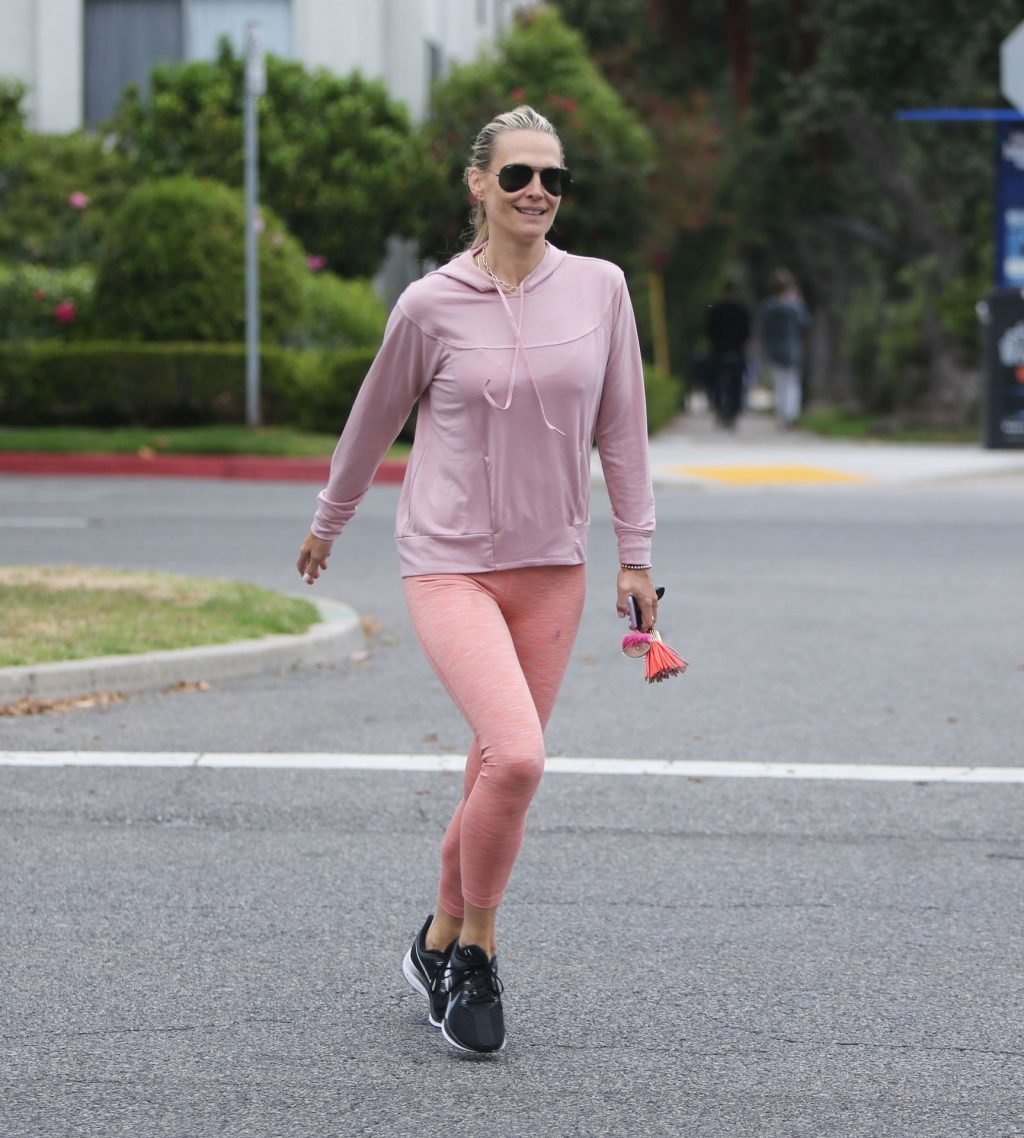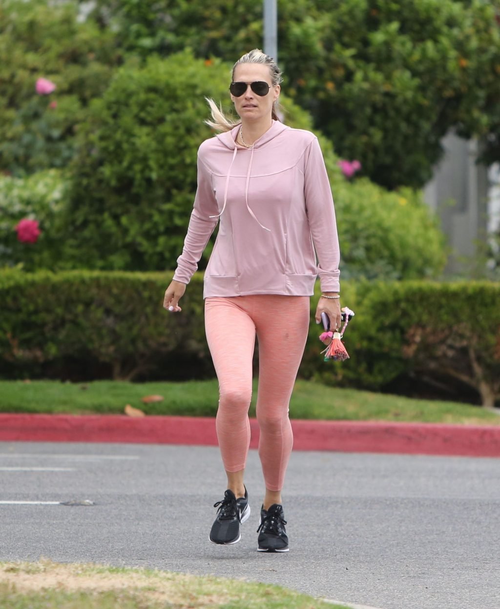 Molly Sims чувствует прохладный бриз Брентвуда, когда сексуальная 45-летняя супермодель выходит после утренней тренировки, покрытая потом, 14.05.2019. Блондинка выглядит очень мило с хвостиком и в розовом спортивном костюме в тон.