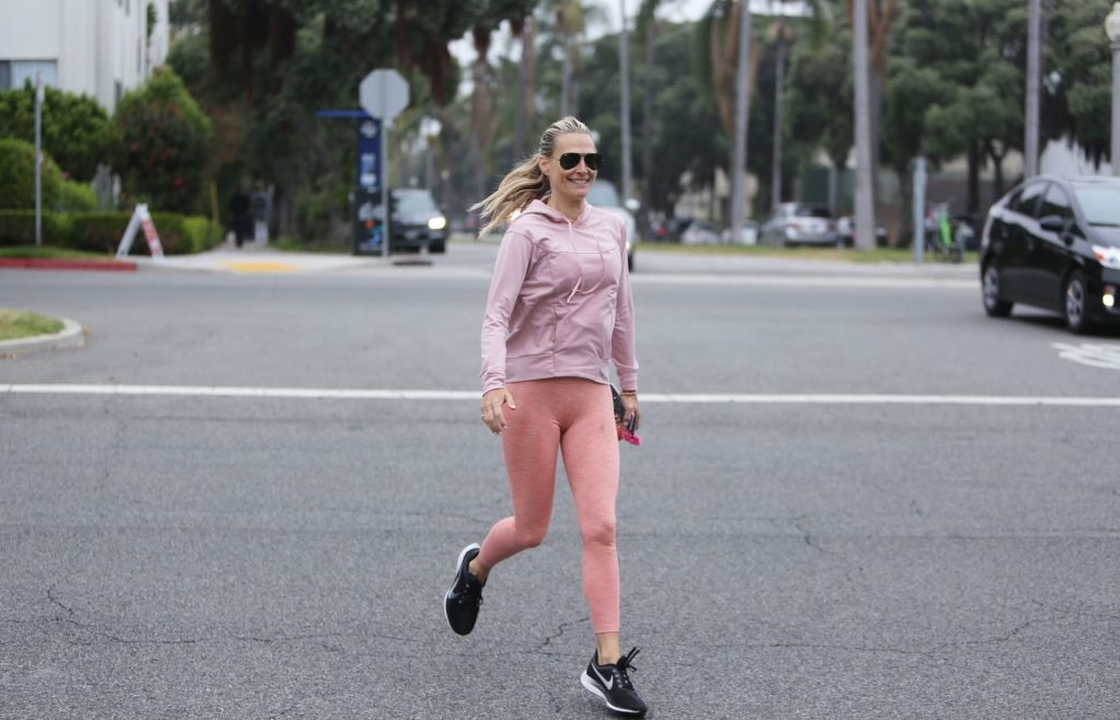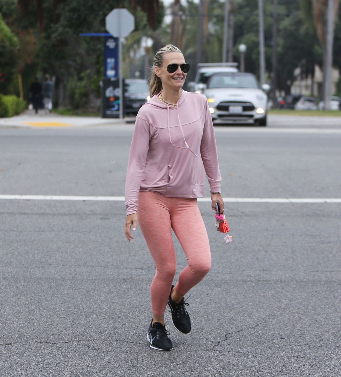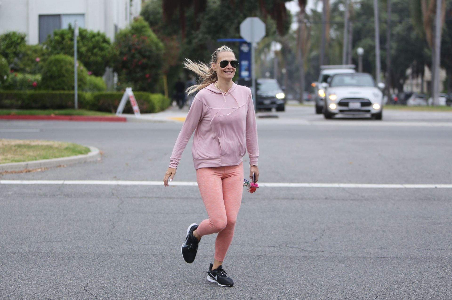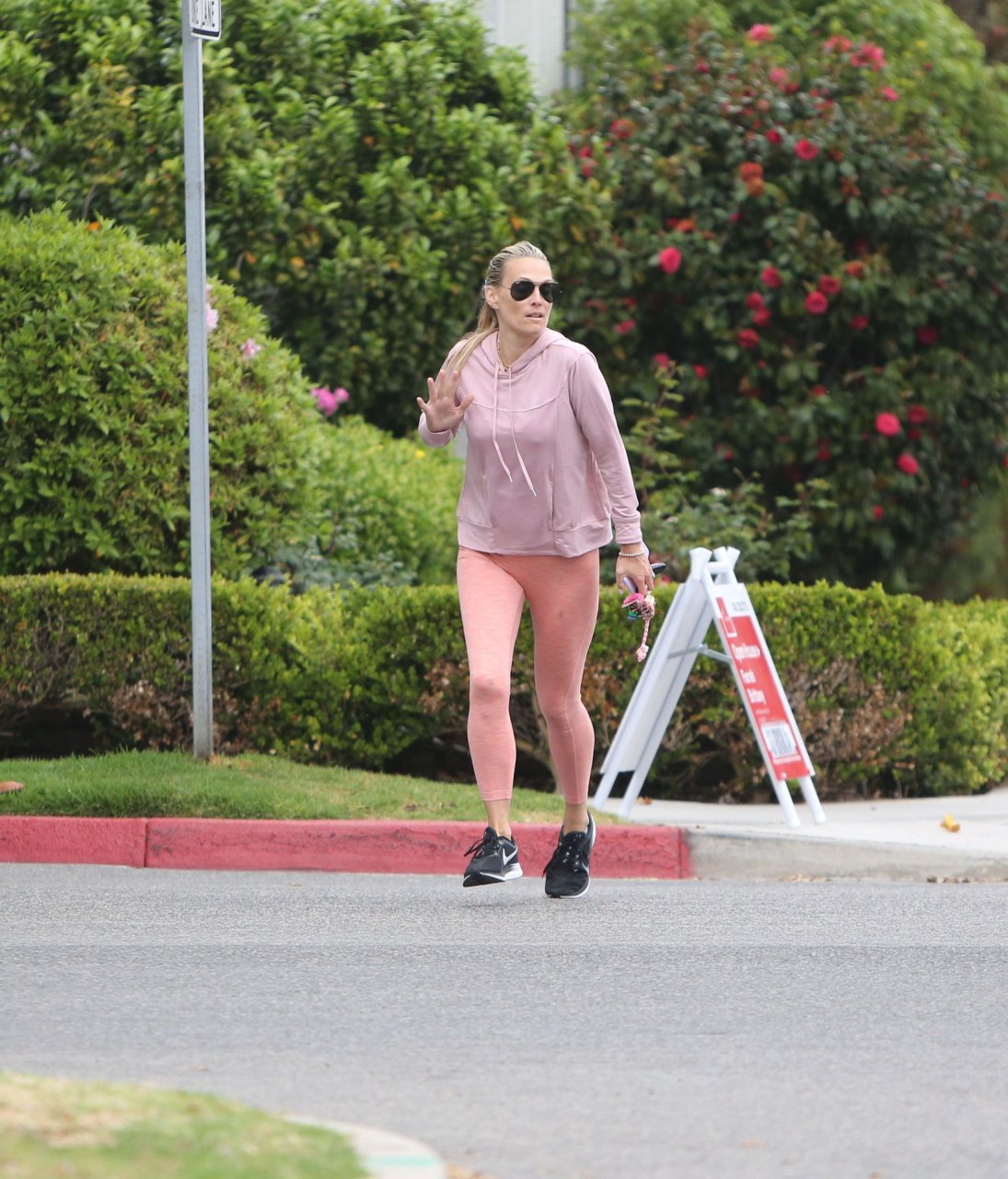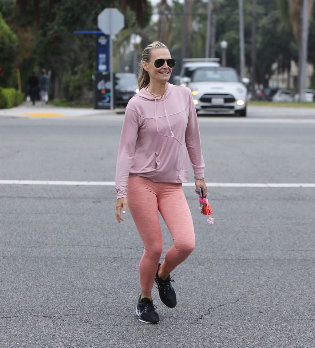 Molly Sims чувствует прохладный бриз Брентвуда, когда сексуальная 45-летняя супермодель выходит после утренней тренировки, покрытая потом, 14.05.2019. Блондинка выглядит очень мило с хвостиком и в розовом спортивном костюме в тон.