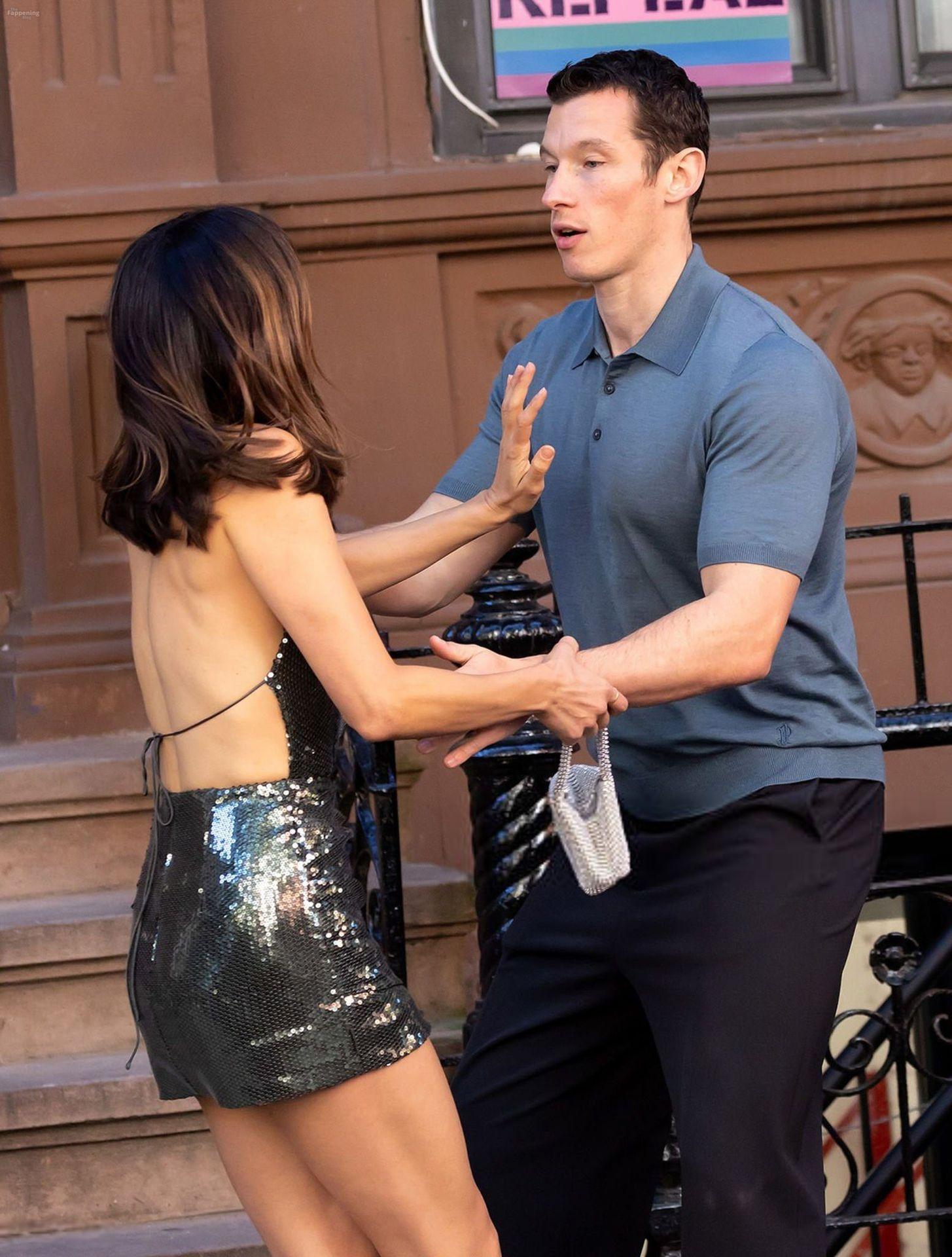 Моника Барбаро продемонстрировала своё сексуальное тело в мини-платье во время съёмок “One Night Only” на съёмочной площадке в Даунтауне Манхэттена.