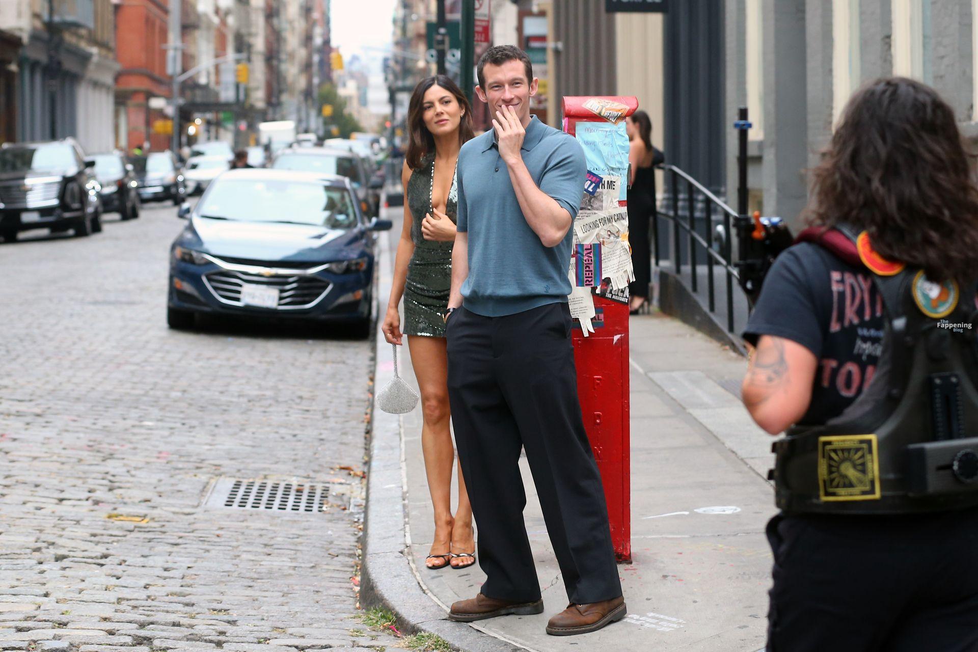 Моника Барбаро без бюстгальтера поражает в зеленом платье с пайетками и туфлях на шпильках во время съемок “Только одна ночь” в Нью-Йорке.